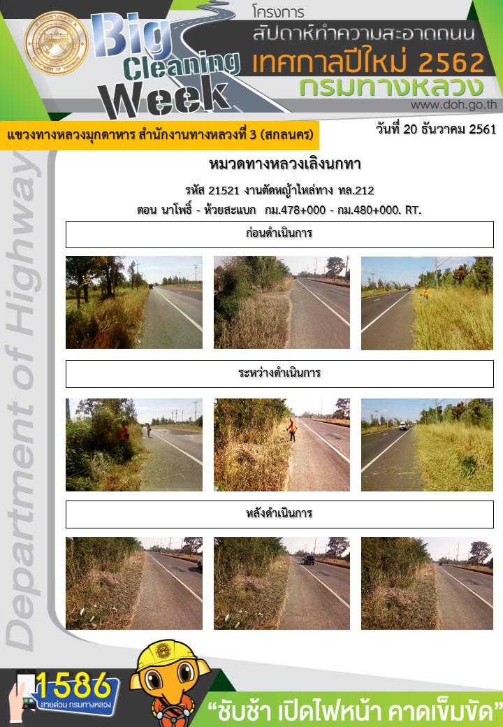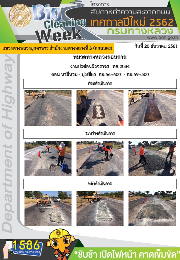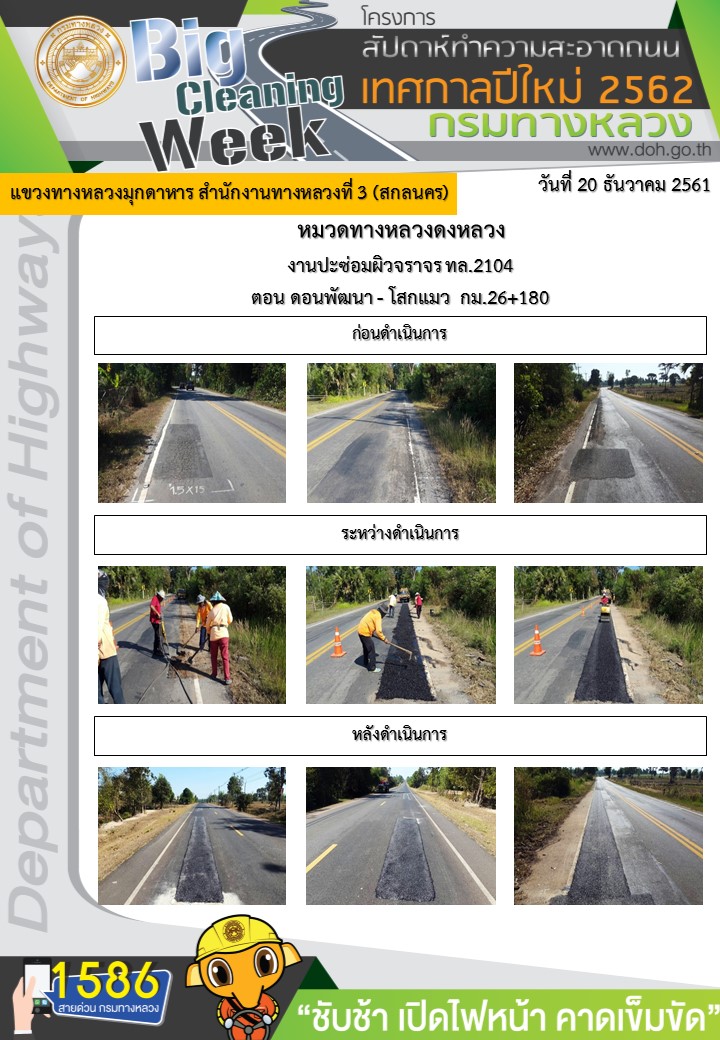 โครงการทางหลวงปลอดภัย ขับขี่สบายตา หน่วยงานในสังกัดแขวง ช่วงเทศกาลปีใหม่ ธันวาคม 20