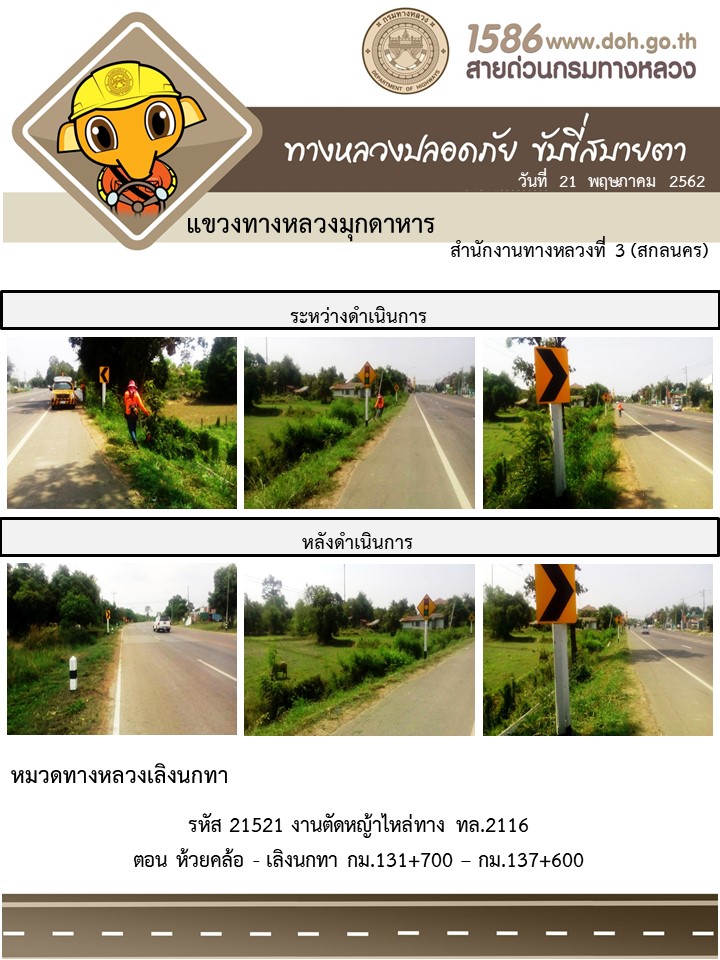 โครงการทางหลวงปลอดภัย ขับขี่สบายตา หน่วยงานในสังกัดแขวง พฤษภาคม 21