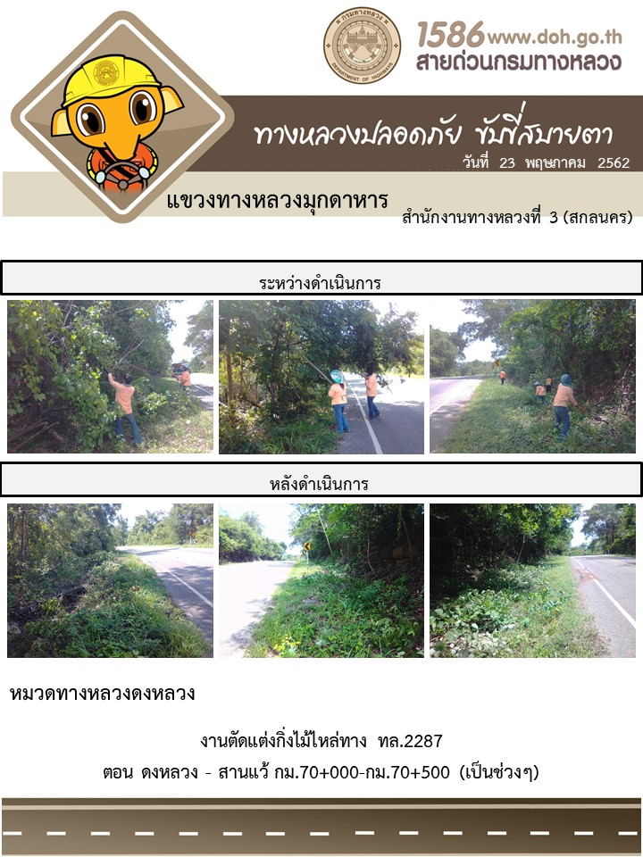 โครงการทางหลวงปลอดภัย ขับขี่สบายตา หน่วยงานในสังกัดแขวง 23 พ.ค. 62