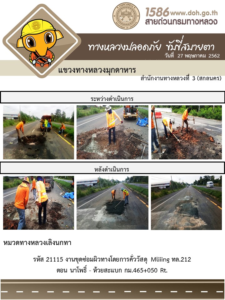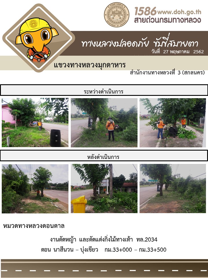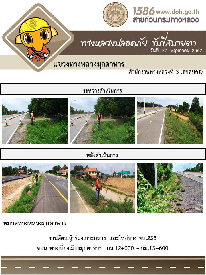 โครงการทางหลวงปลอดภัย ขับขี่สบายตา หน่วยงานในสังกัดแขวง 27 พ.ค. 62