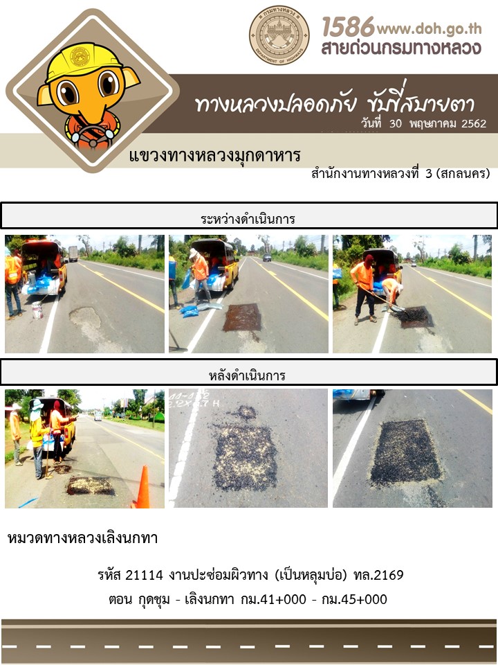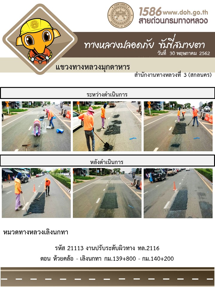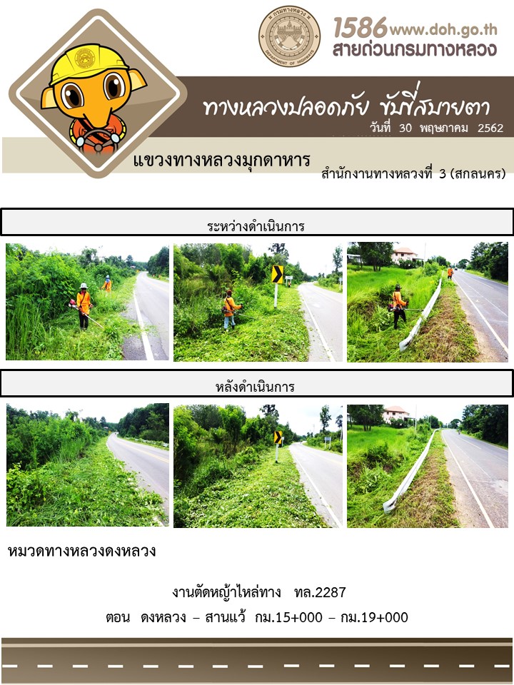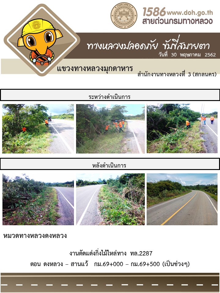โครงการทางหลวงปลอดภัย ขับขี่สบายตา หน่วยงานในสังกัดแขวง 30 พ.ค. 62