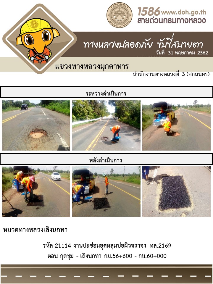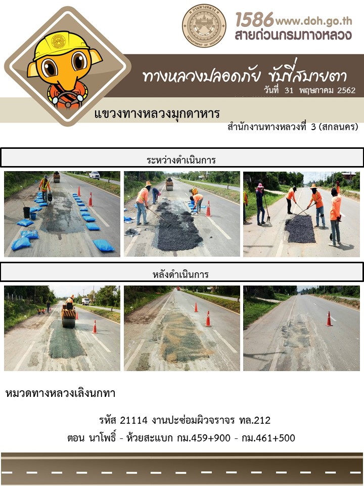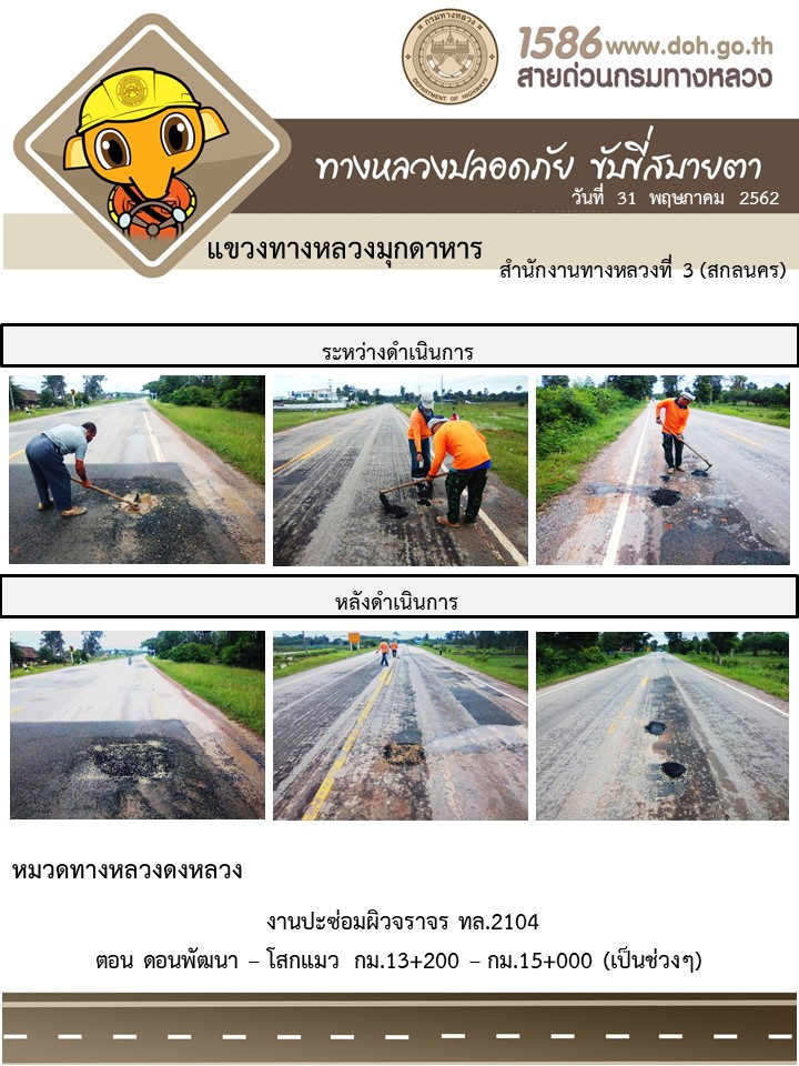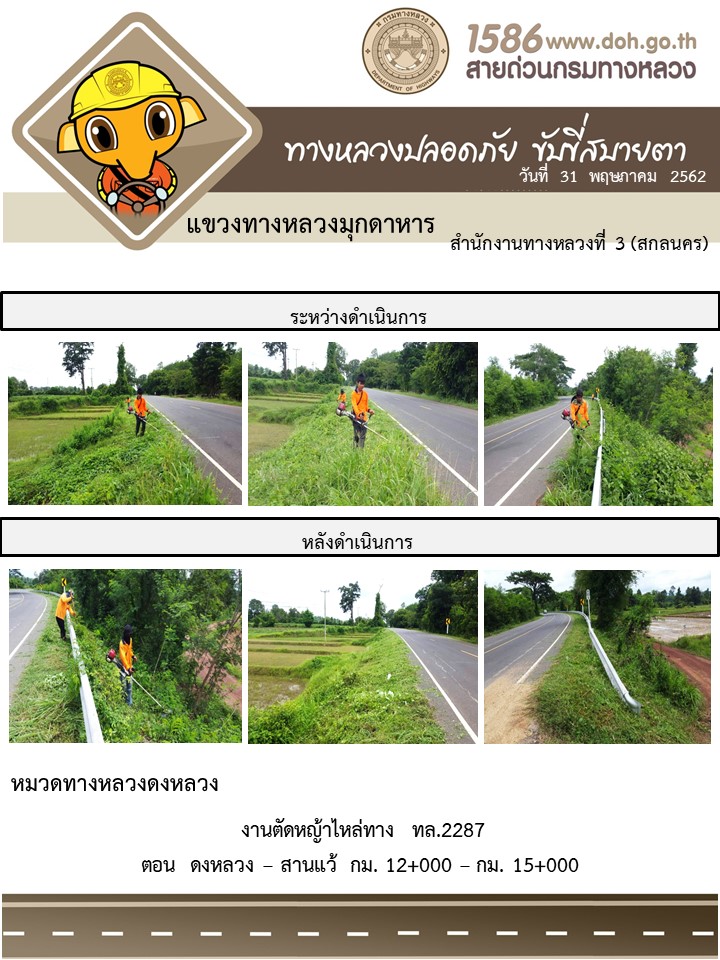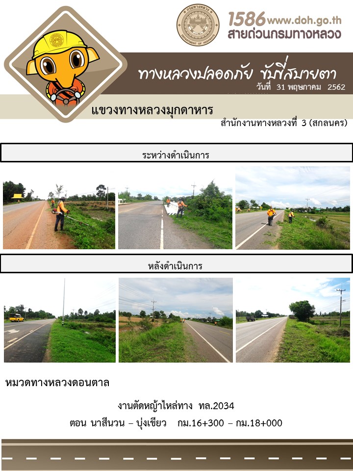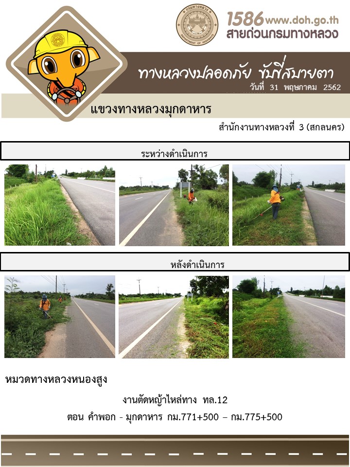โครงการทางหลวงปลอดภัย ขับขี่สบายตา หน่วยงานได้ในสังกัดแขวง 31 พ.ค. 62