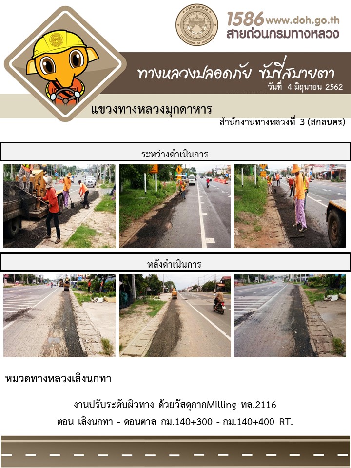โครงการทางหลวงปลอดภัย ขับขี่สบายตา หน่วยงานในสังกัดแขวง 4 มิ.ย.62