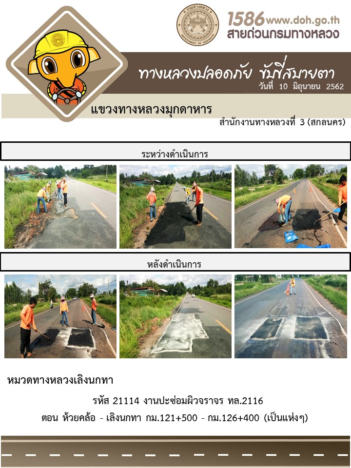 โครงการทางหลวงปลอดภัย ขับขี่สบายตา หน่วยงานในสังกัดแขวง 10 มิ.ย. 62