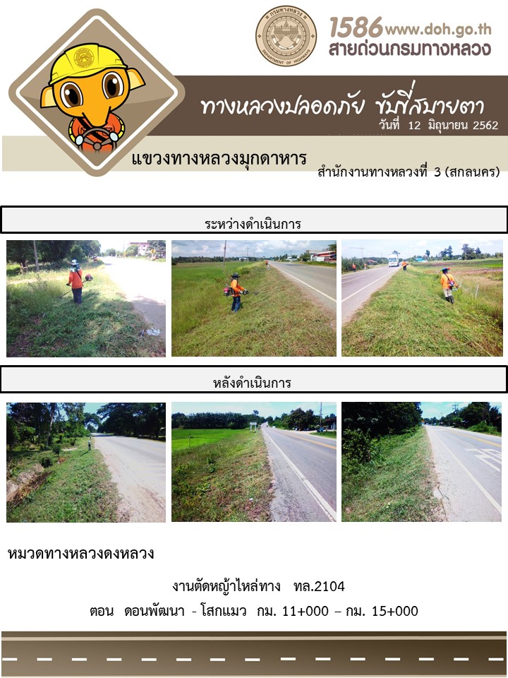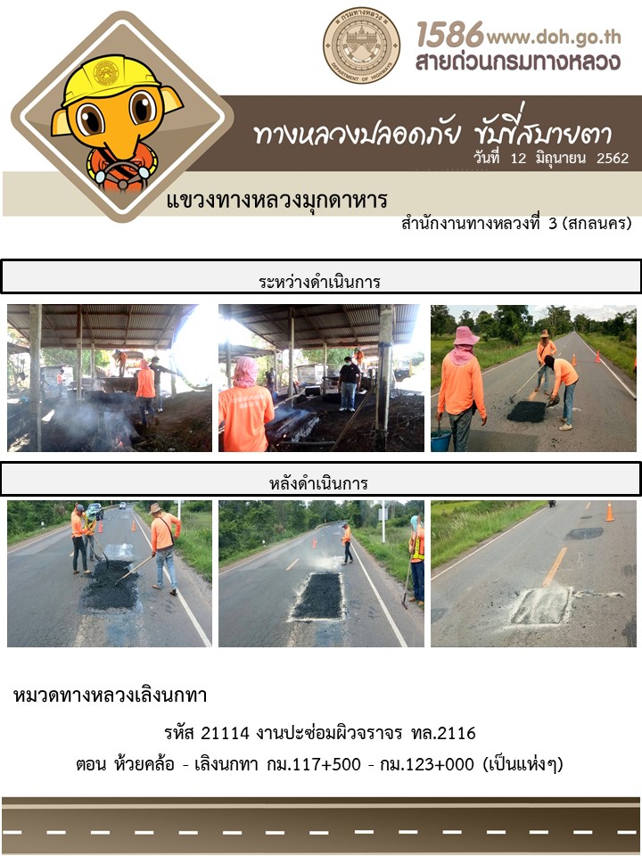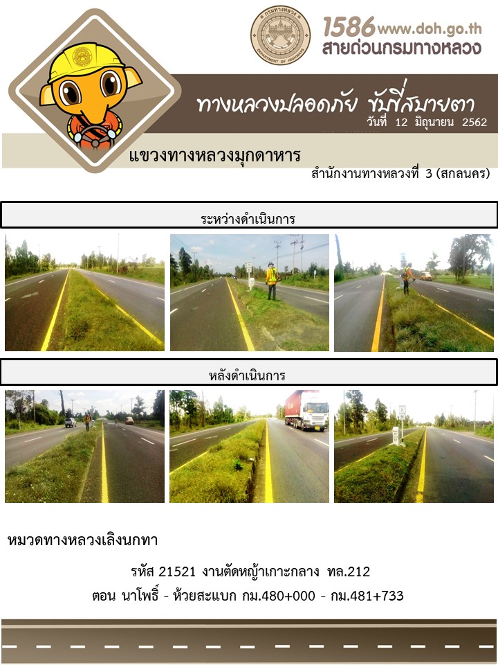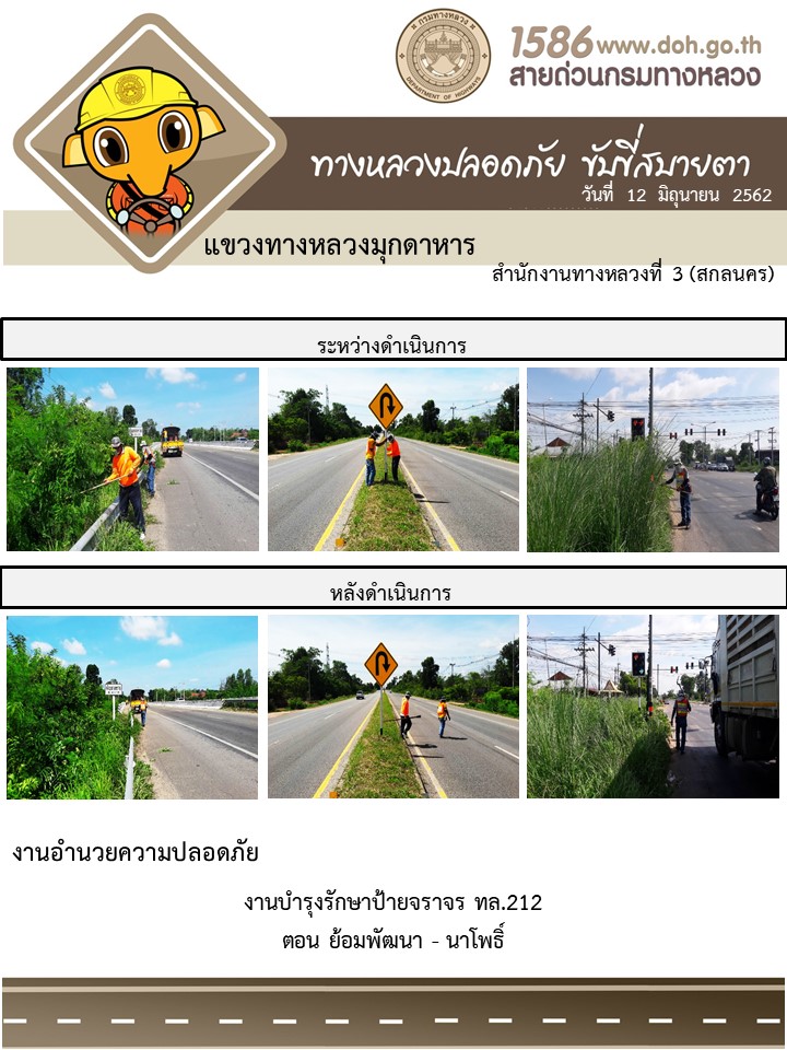 โครงการทางหลวงปลอดภัย ขับขี่สบายตา หน่วยงานในสังกัดแขวง 12 มิ.ย. 62