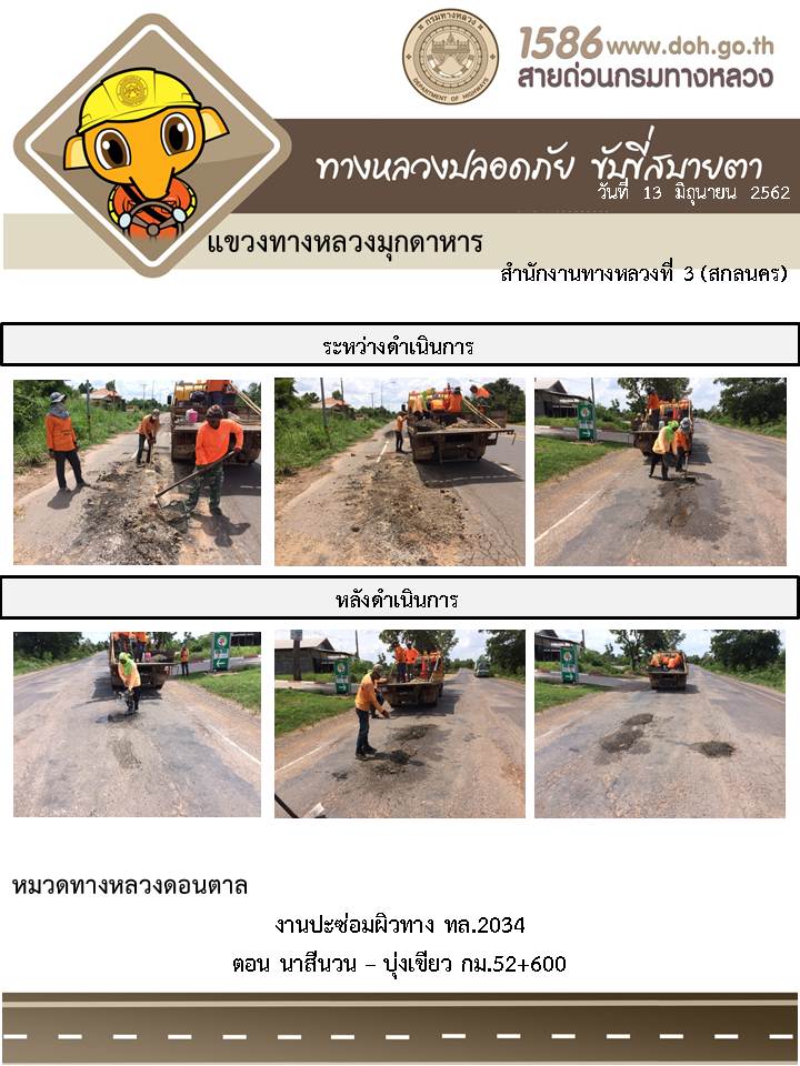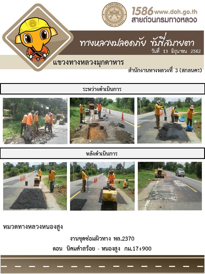โครงการทางหลวงปลอดภัย ขับขี่สบายตา หน่วยงานในสังกัดแขวง 13 มิ.ย. 62