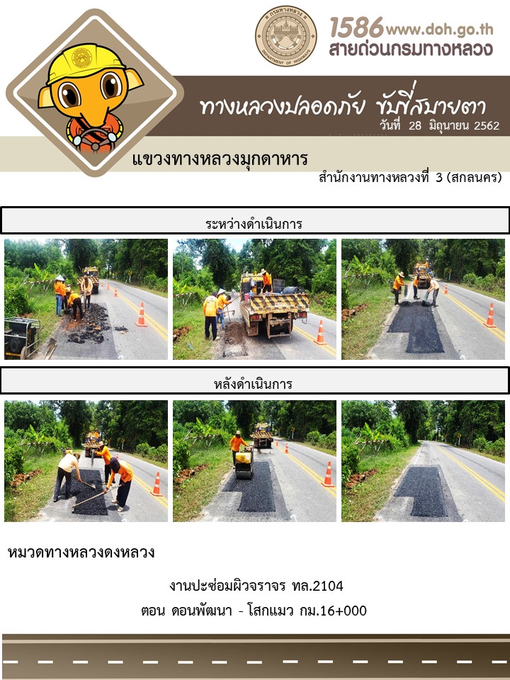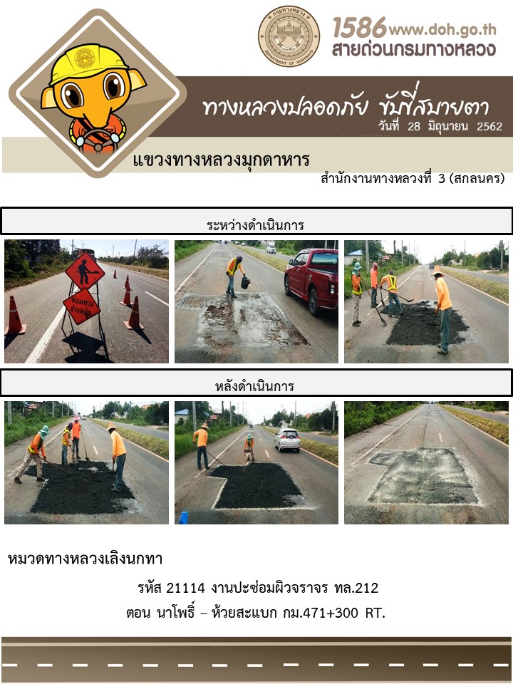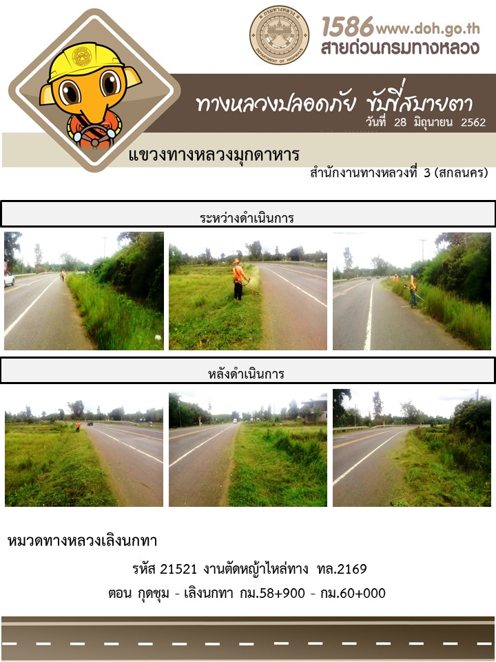 โครงการทางหลวงปลอดภัย ขับขี่สบายตา หน่วยงานในสังกัดแขวง 28 มิ.ย. 62