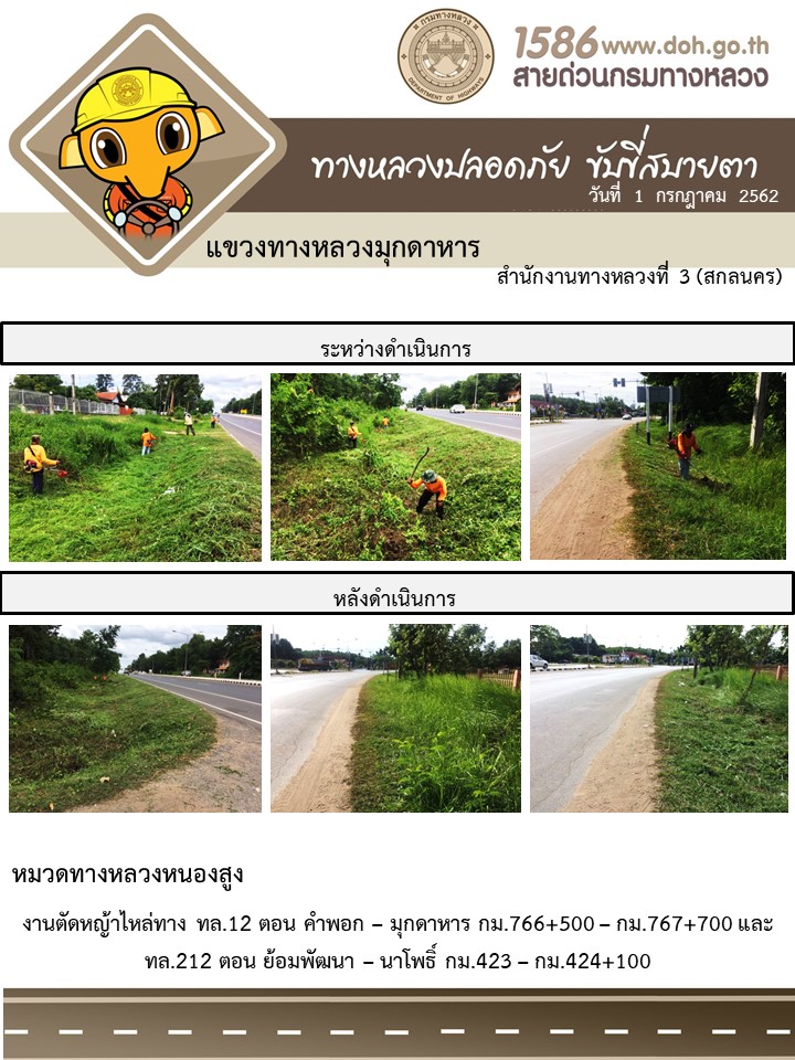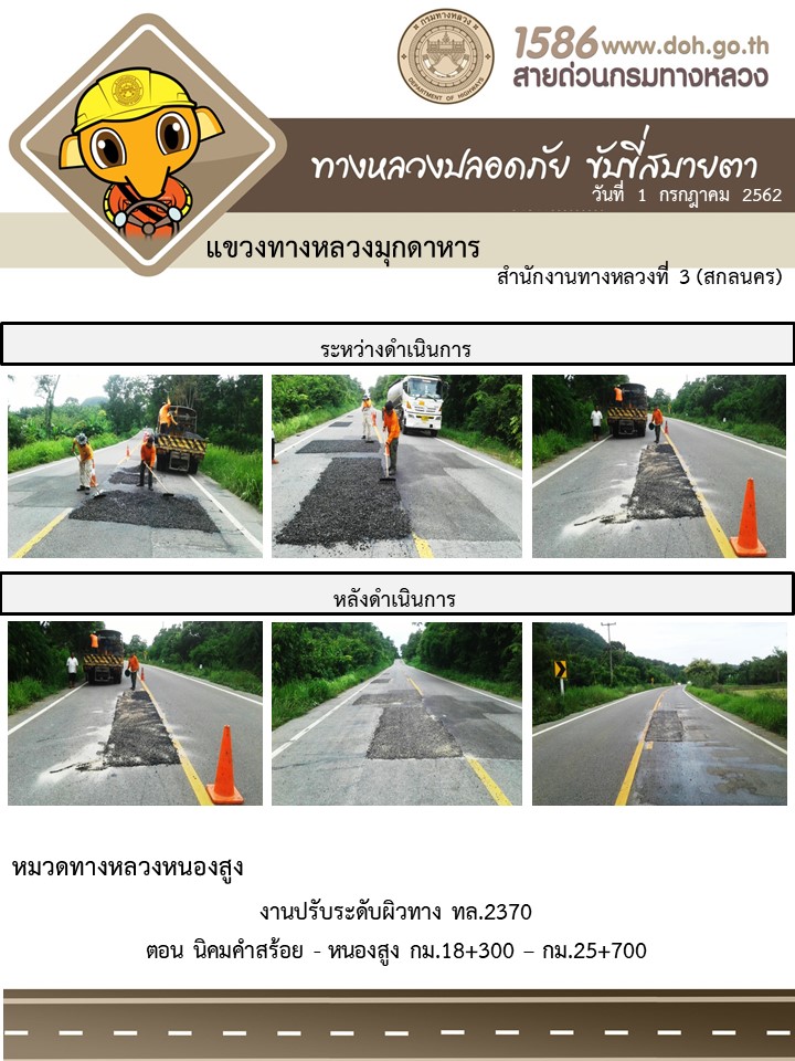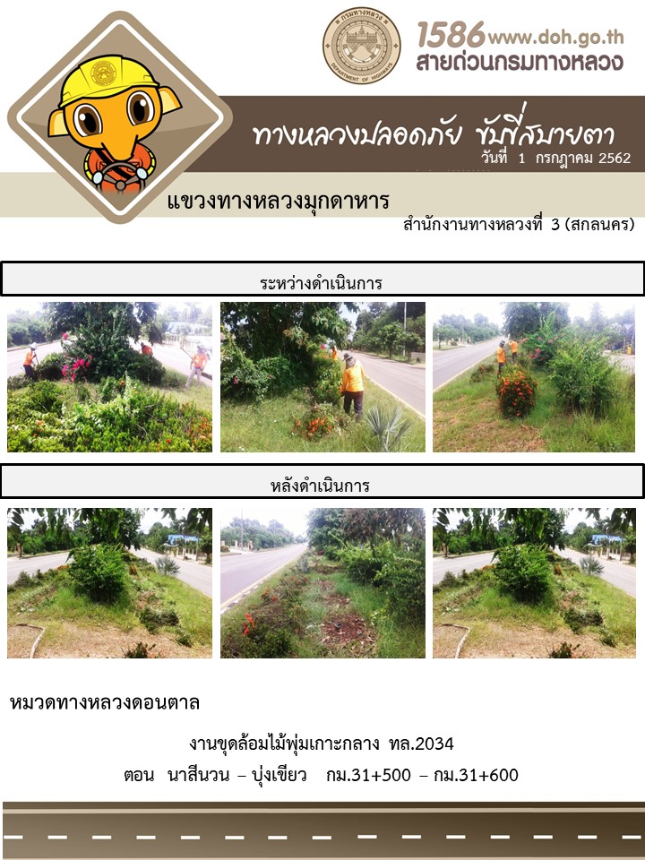 โครงการทางหลวงปลอดภัย ขับขี่สบายตา หน่วยงานในสังกัดแขวง 1 ก.ค. 62