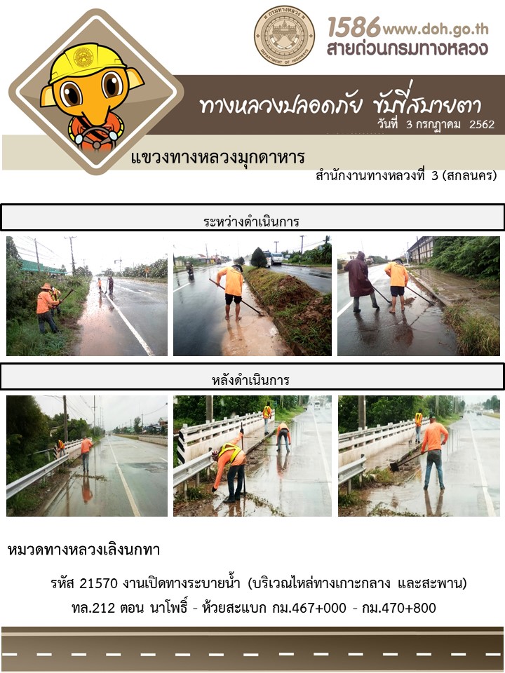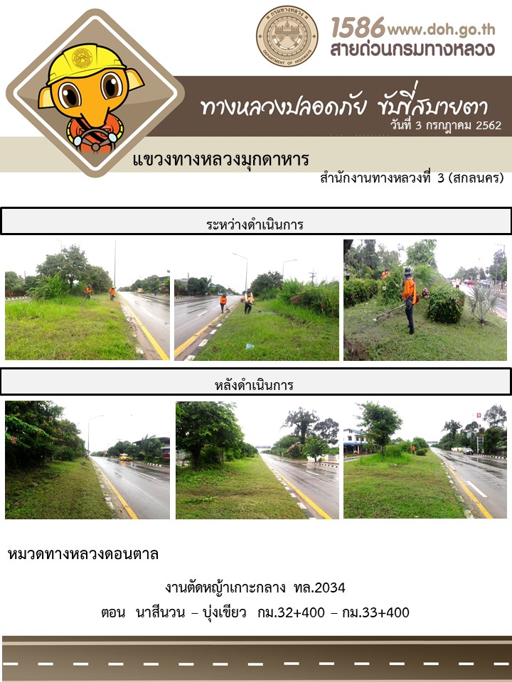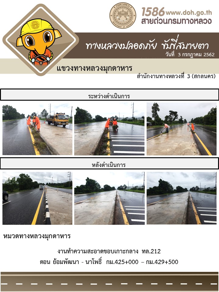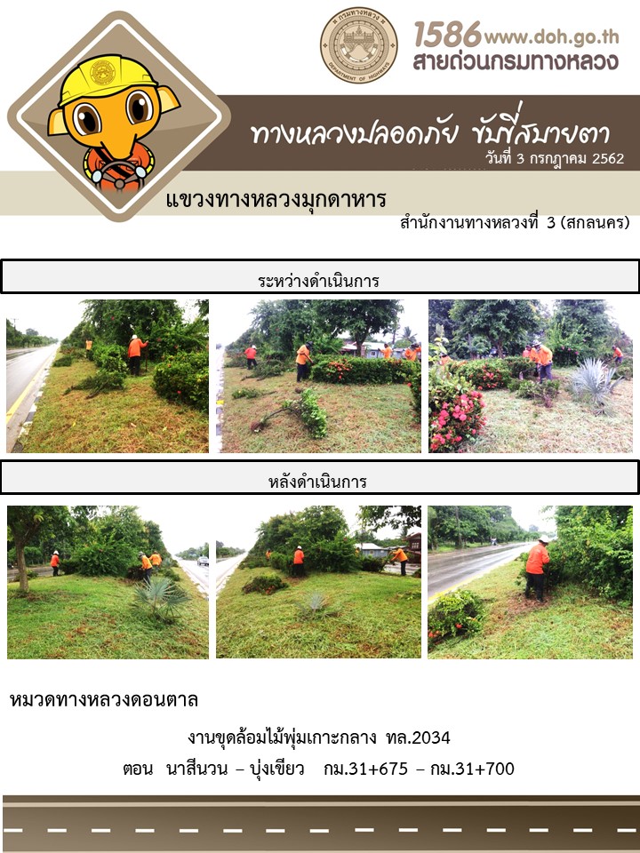 โครงการทางหลวงปลอดภัย ขับขี่สบายตา หน่วยงานในสังกัดแขวง 3 ก.ค.62