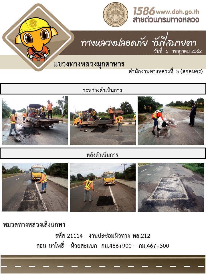 โครงการทางหลวงปลอดภัย ขับขี่สบายตา หน่วยงานในสังกัดแขวง 5 ก.ค 62