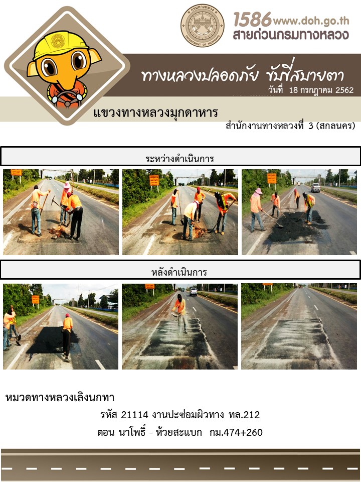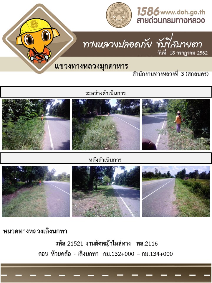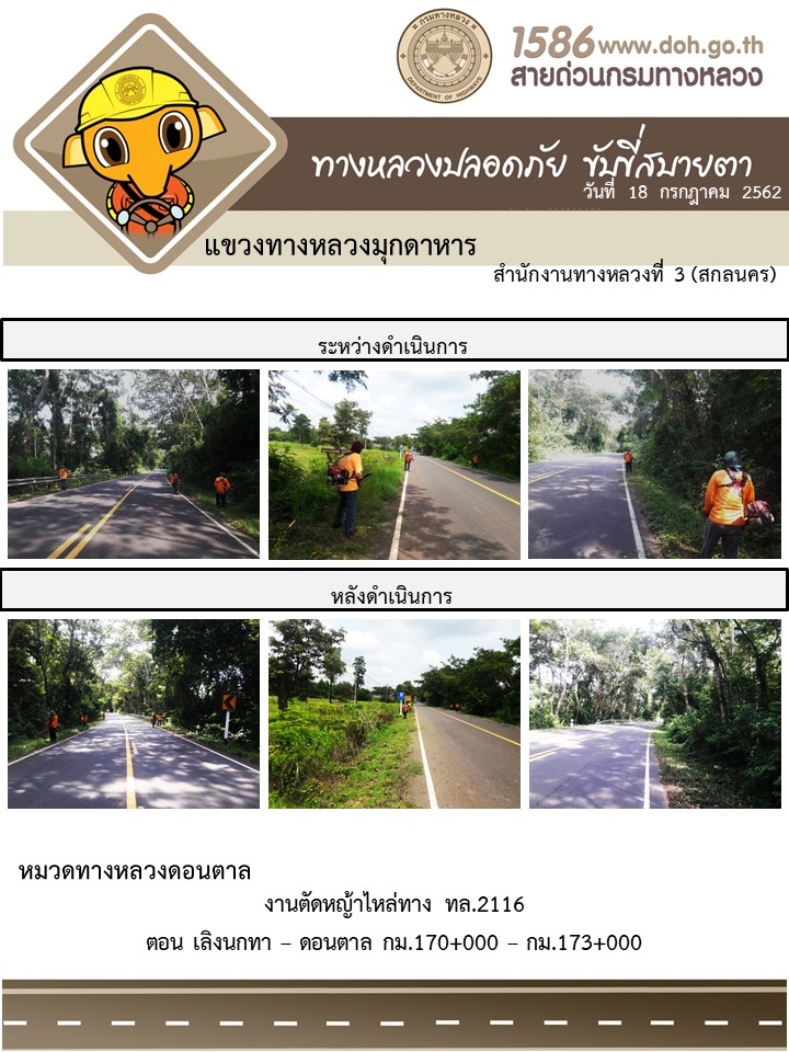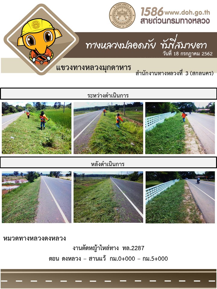 โครงการทางหลวงปลอดภัย ขับขี่สบายตา หน่วยงานในสังกัดแขวง 18 ก.ค 62