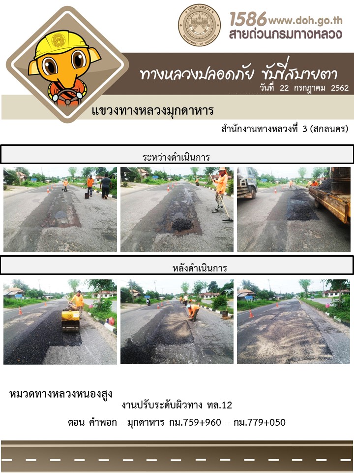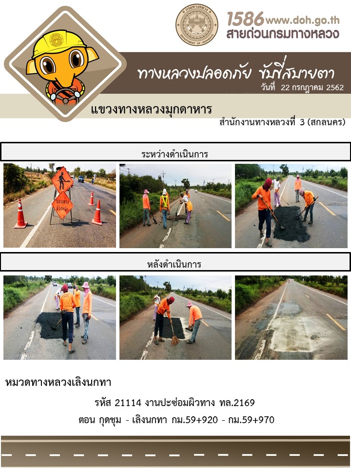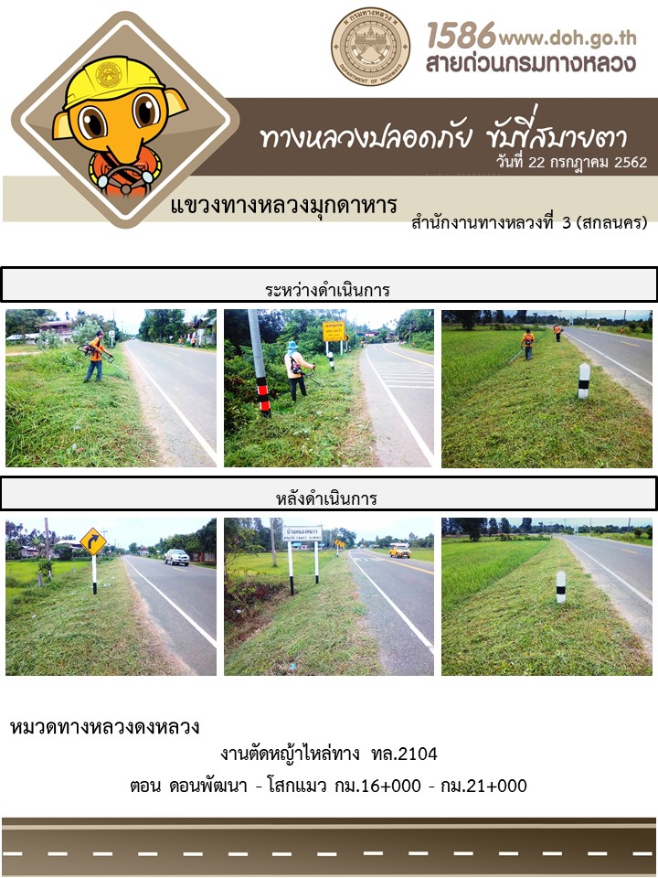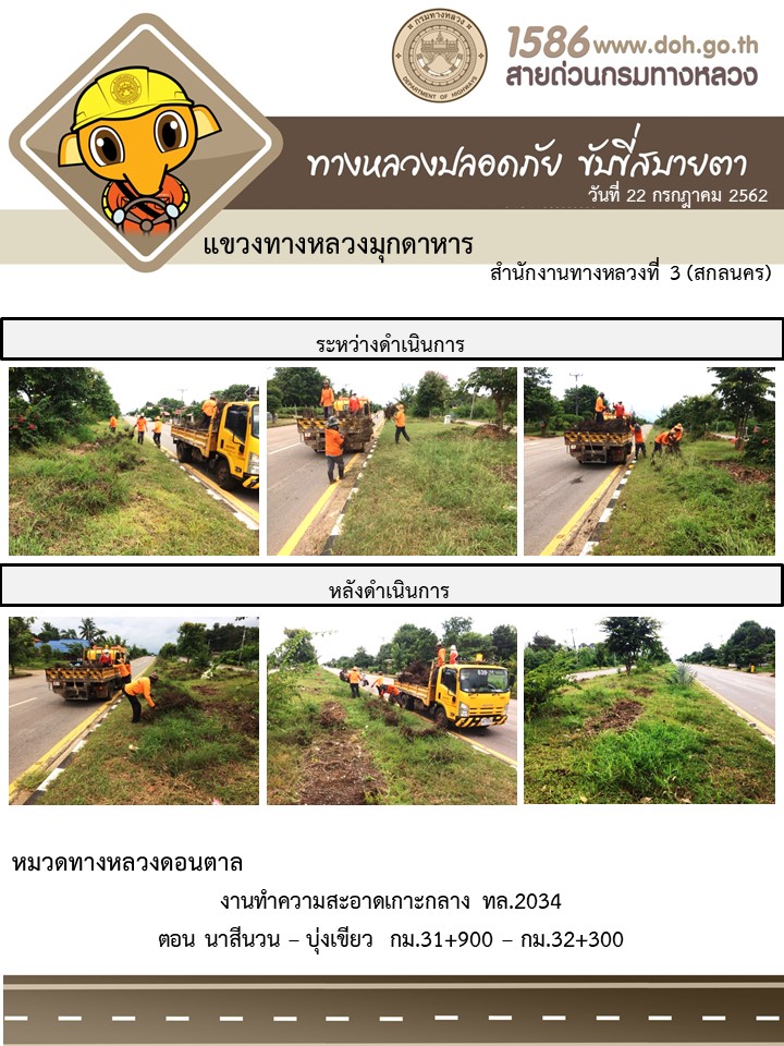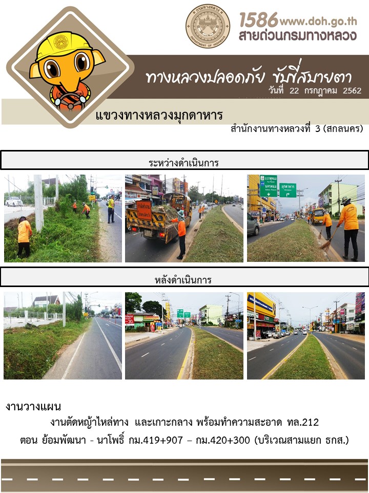 โครงการทางหลวงปลอดภัย ขับขี่สบายตา หน่วยงานในสังกัดแขวง 22 ก.ค. 62