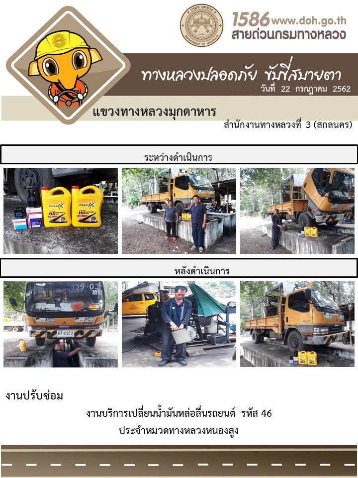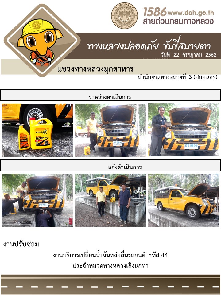 ข้อมูลภาพกิจกรรม : โครงการทางหลวงปลอดภัย ขับขี่สบายตา หน่วยงานในสังกัดแขวง 22 ก.ค. 62