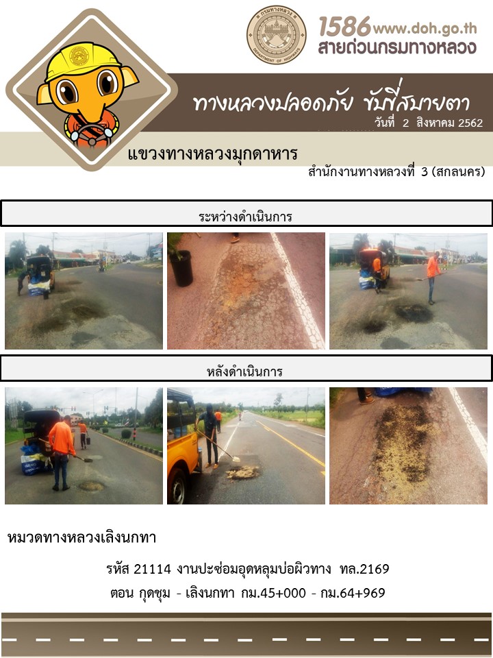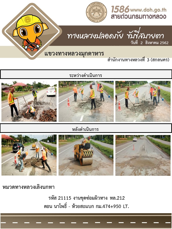 โครงการทางหลวงปลอดภัย ขับขี่สบายตา หน่วยงานในสังกัดแขวง 2 ส.ค.62