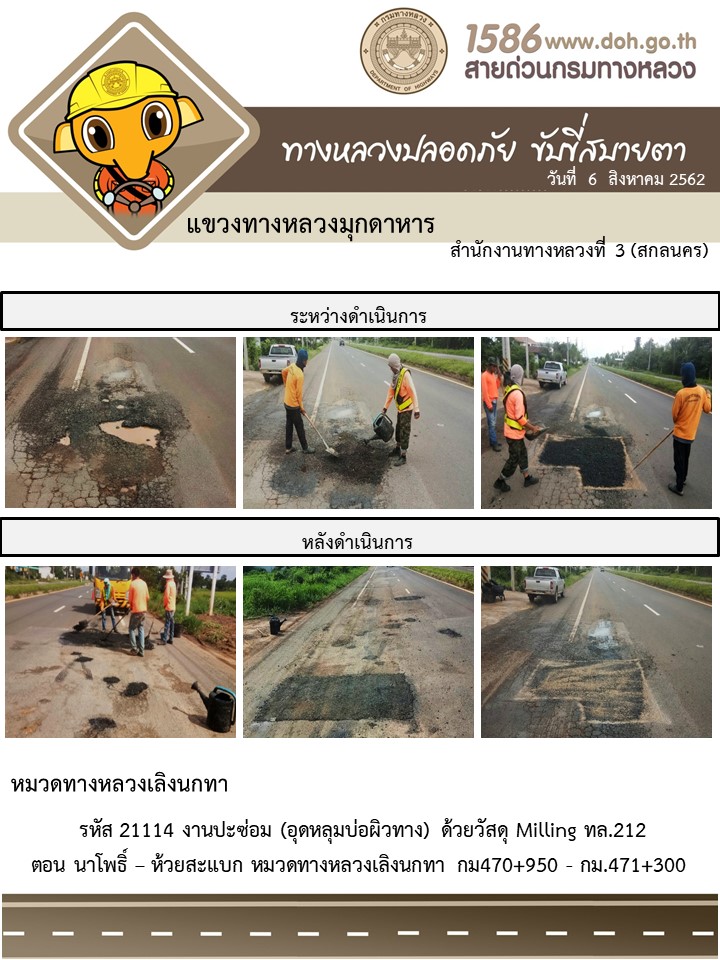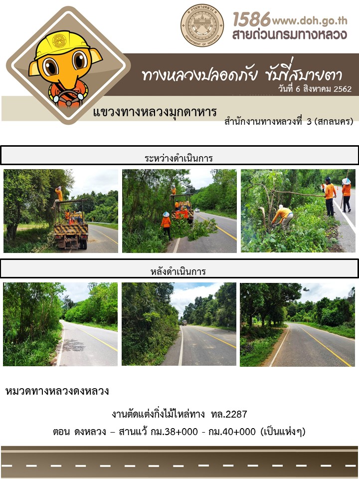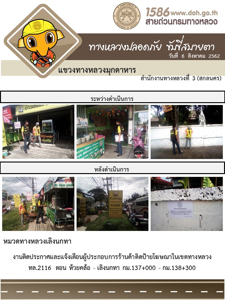 โครงการทางหลวงปลอดภัย ขับขี่สบายตา หน่วยงานในสังกัดแขวง 6 ส.ค. 62
