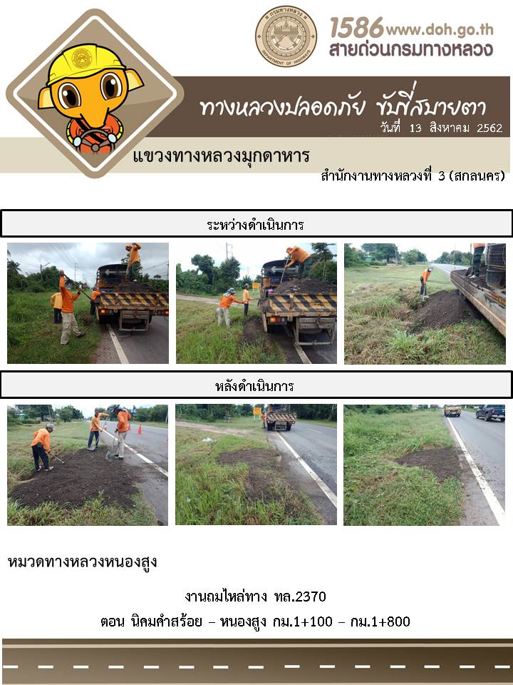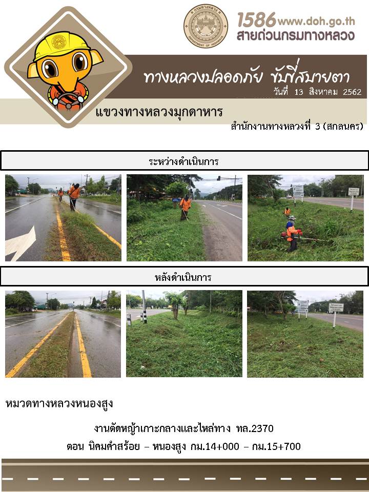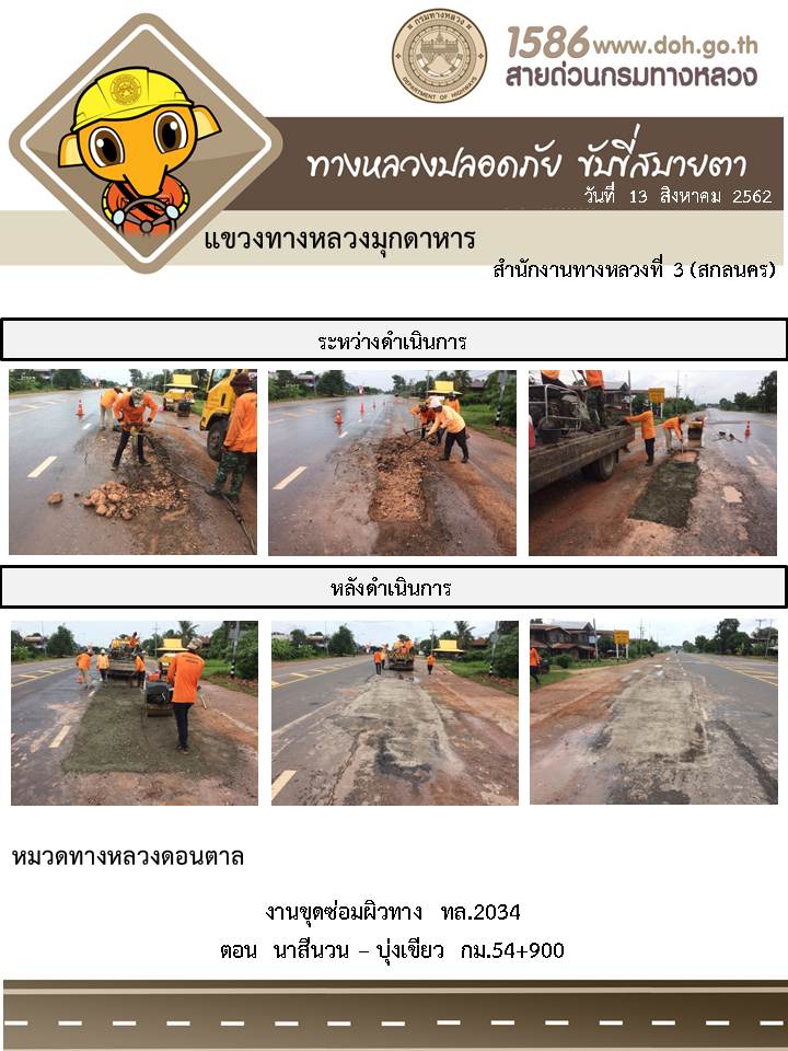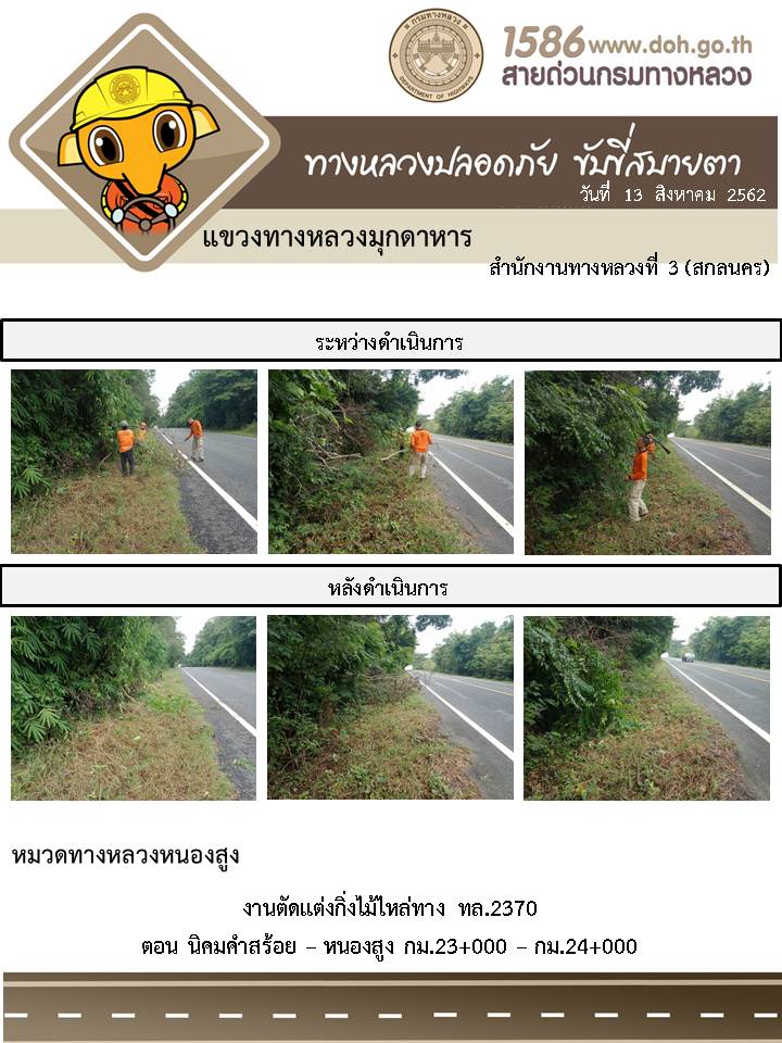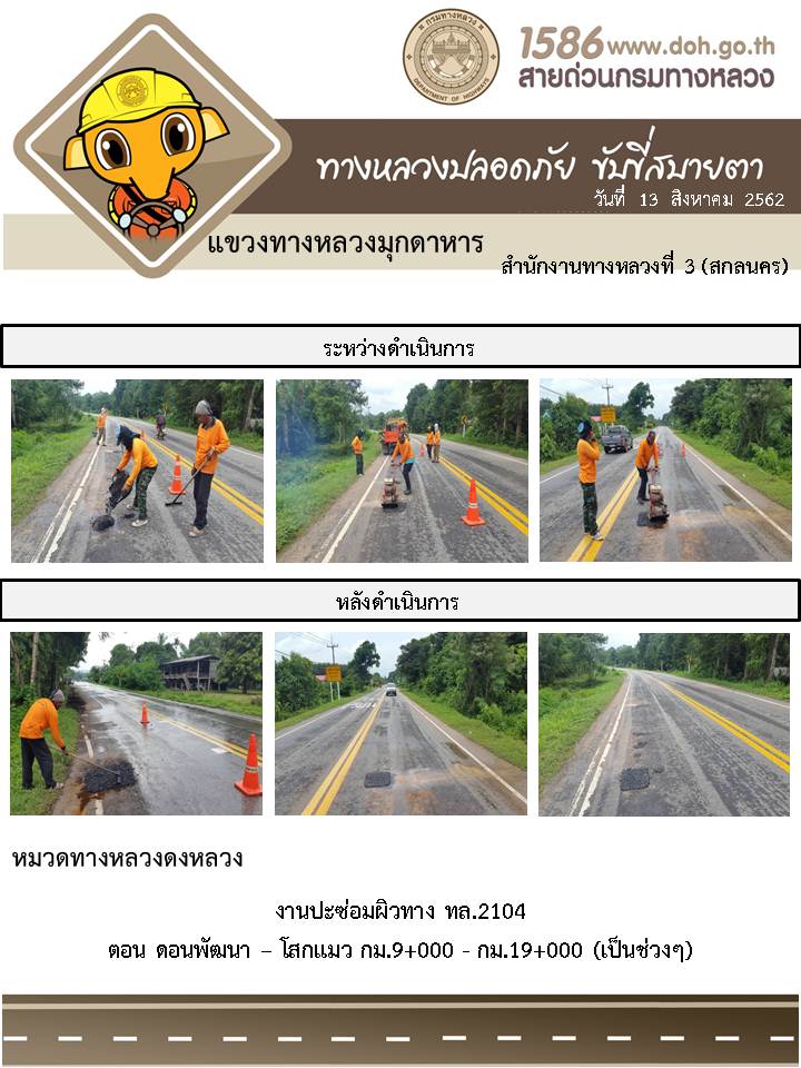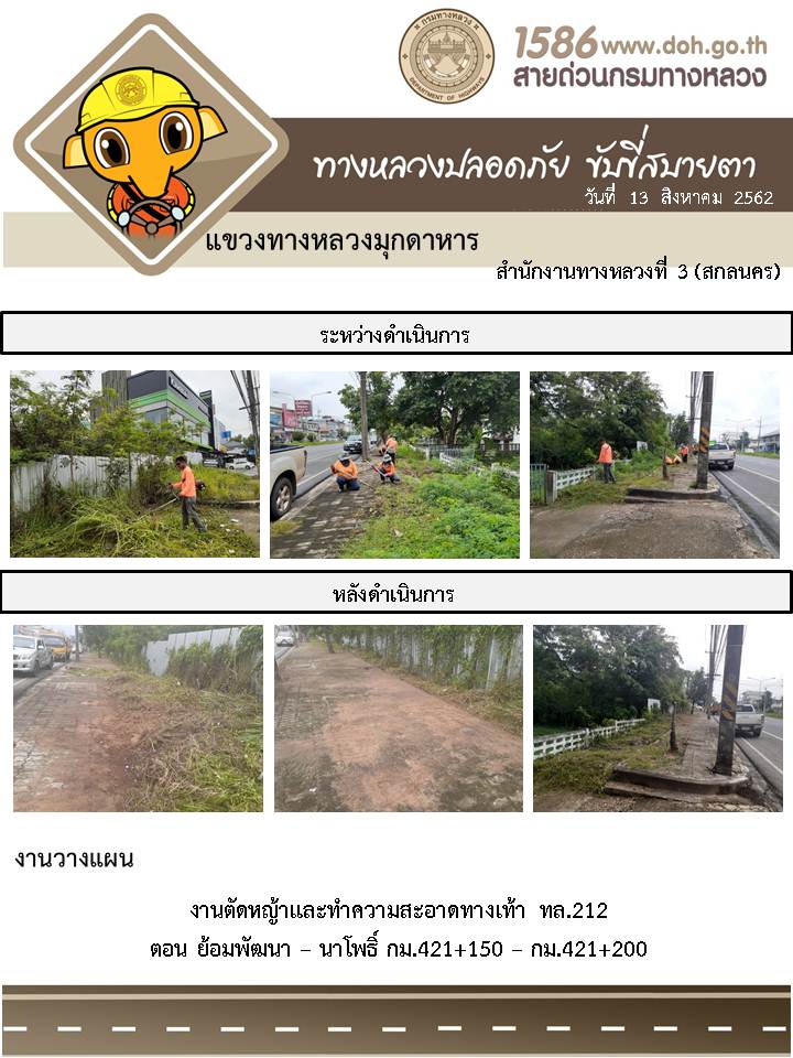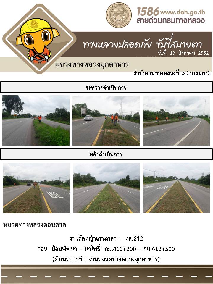 โครงการทางหลวงปลอดภัย ขับขี่สบายตา หน่วยงานในสังกัดแขวง 13 ส.ค. 62