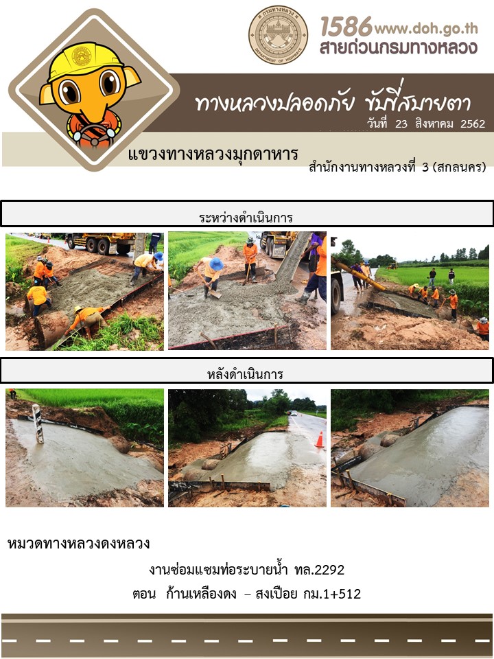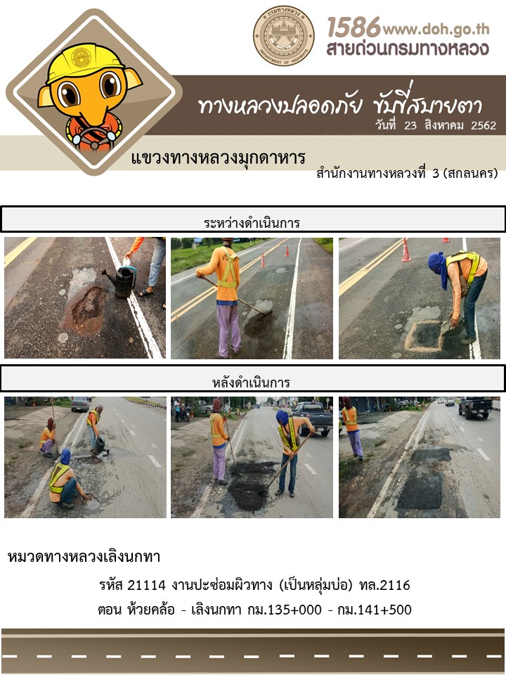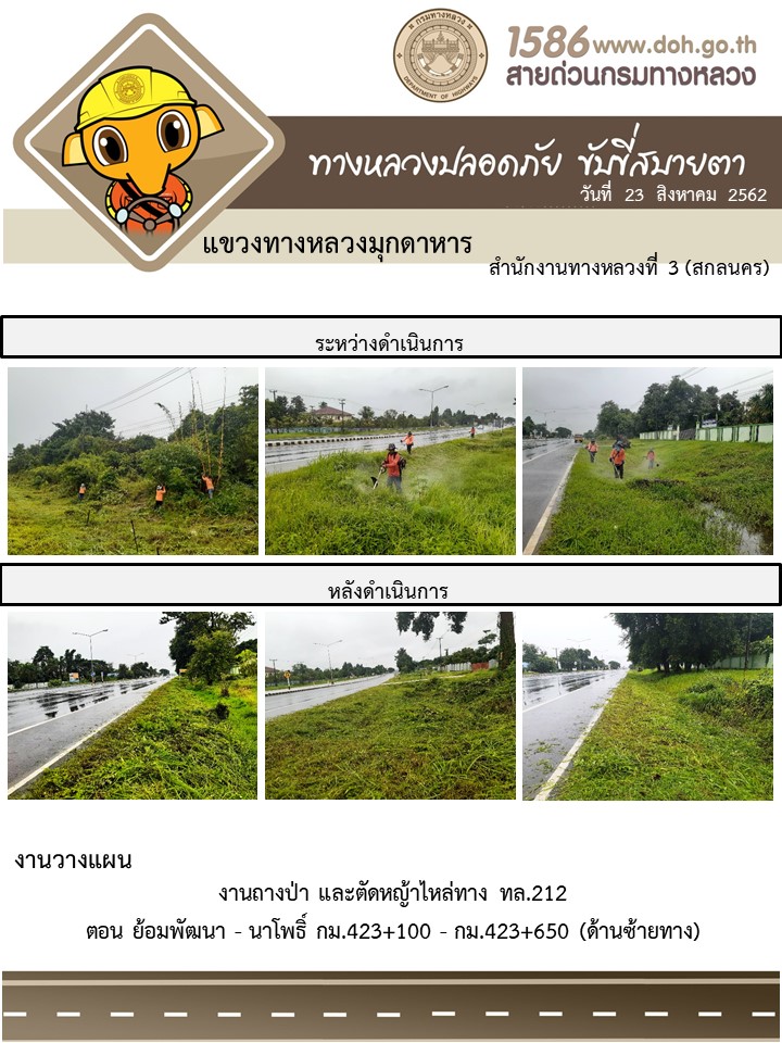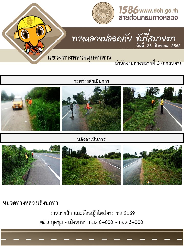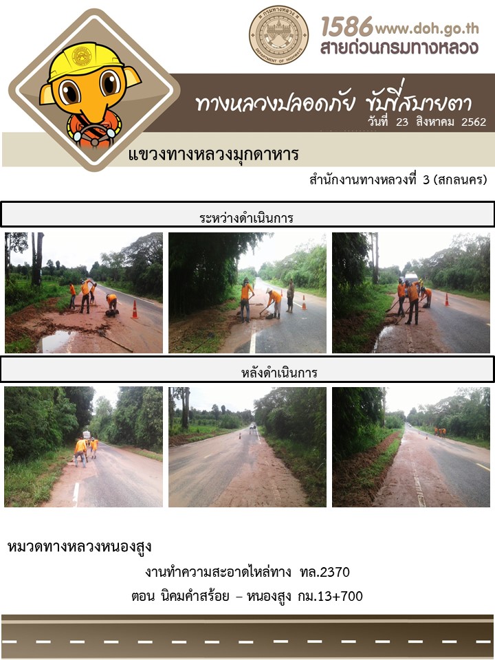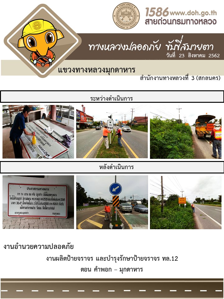 โครงการทางหลวงปลอดภัย ขับขี่สบายตา หน่วยงานในสังกัดแขวง 23 ส.ค. 62