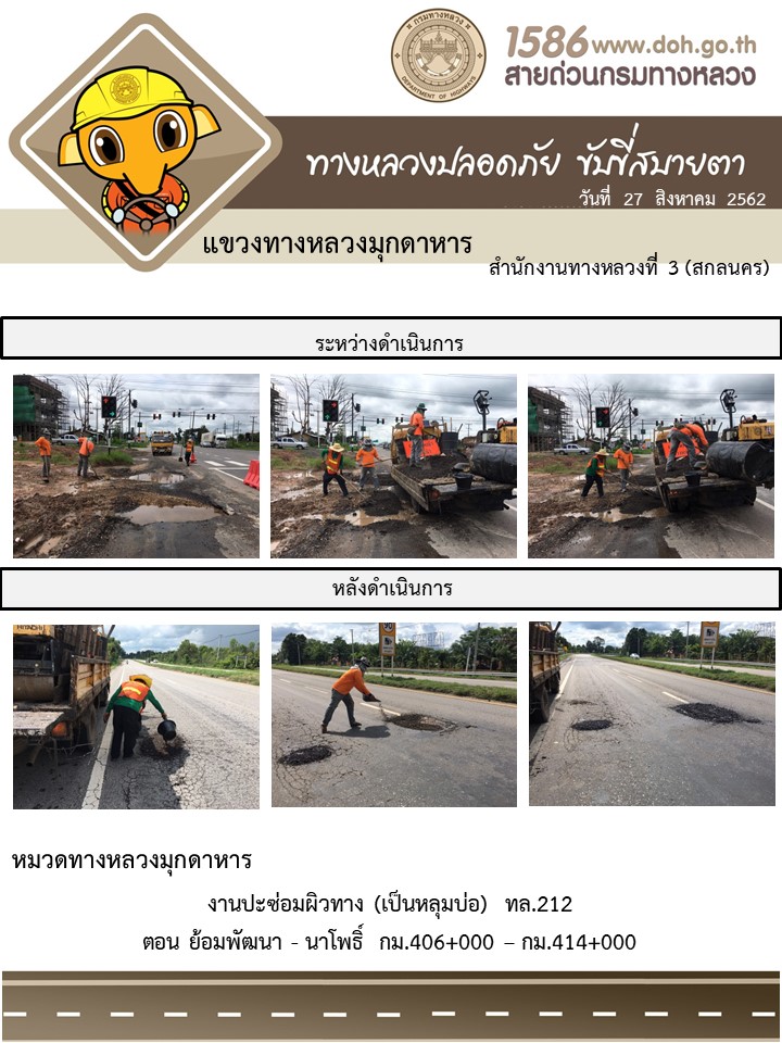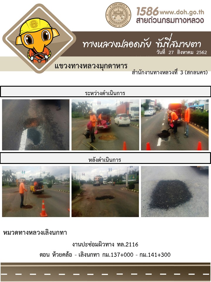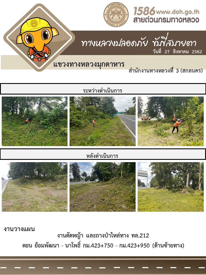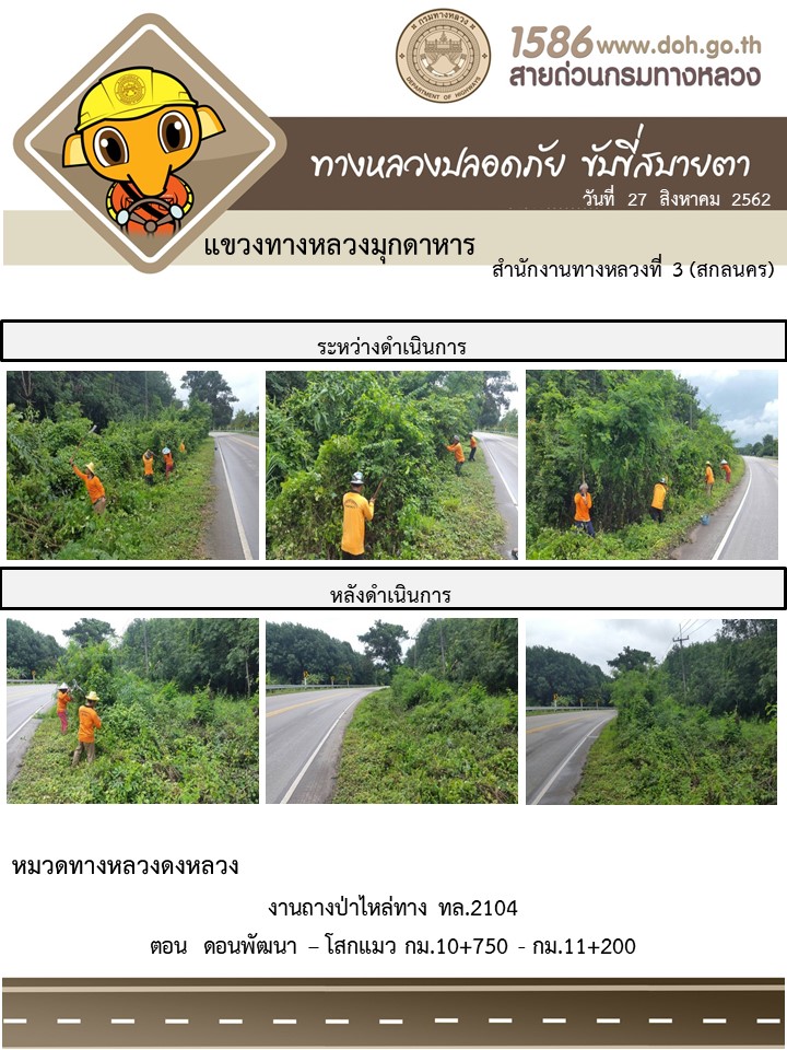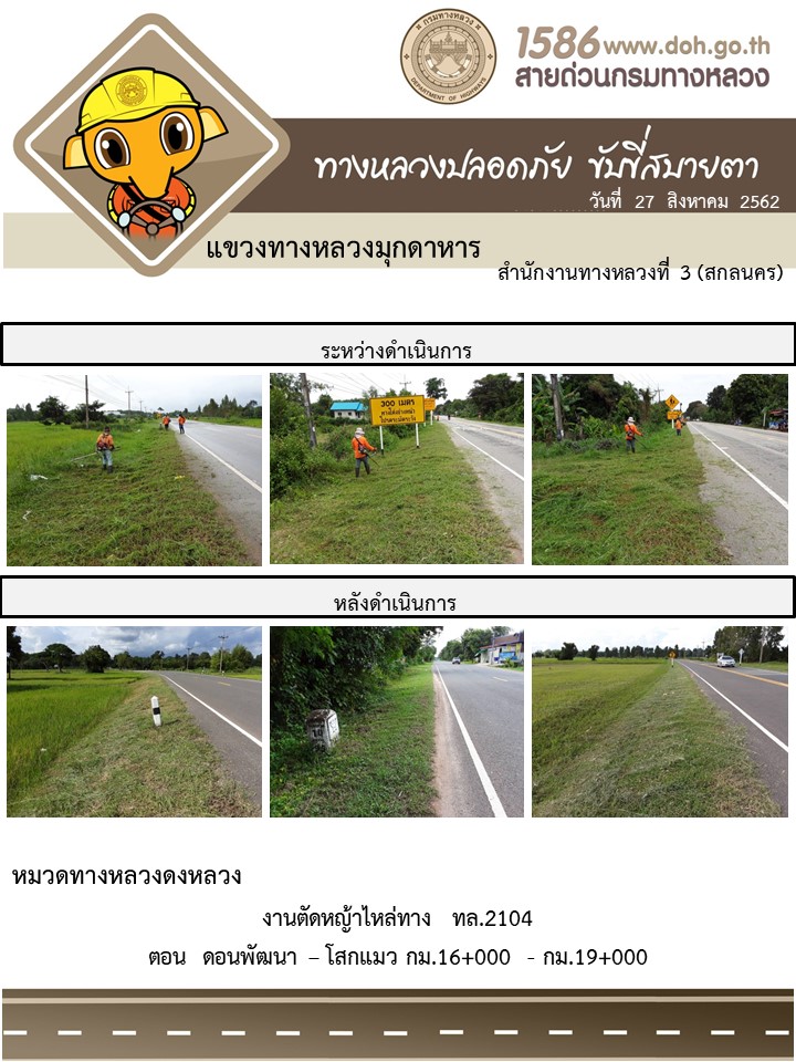 โครงการทางหลวงปลอดภัย ขับขี่สบายตา หน่วยงานในสังกัดแขวง 27 ส.ค. 62