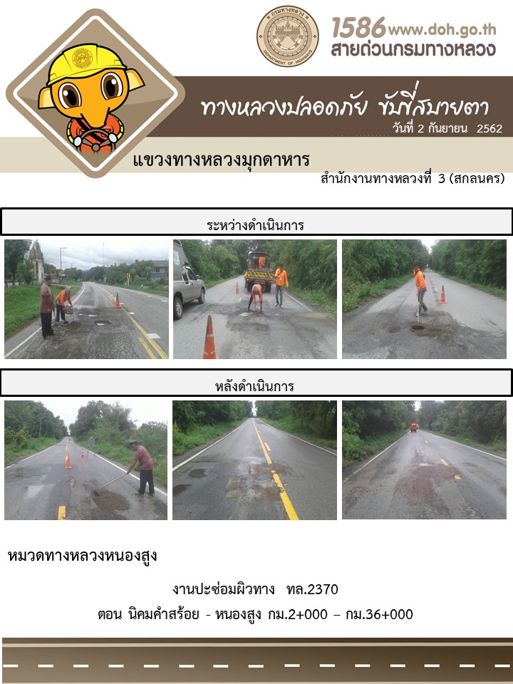 โครงการทางหลวงปลอดภัย ขับขี่สบายตา หน่วยงานในสังกัดแขวง 2 ก.ย.62