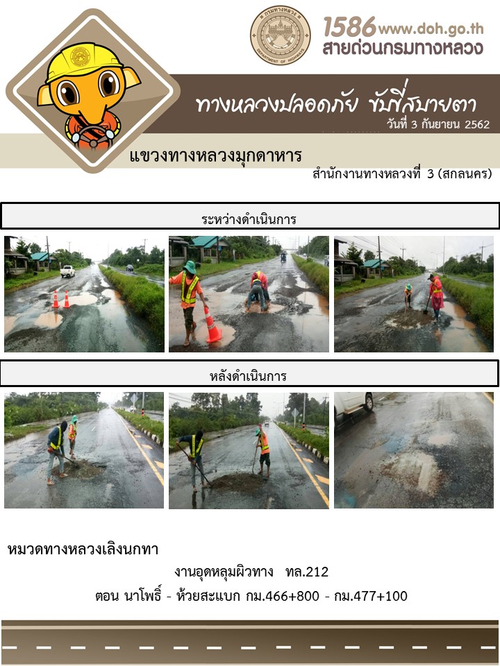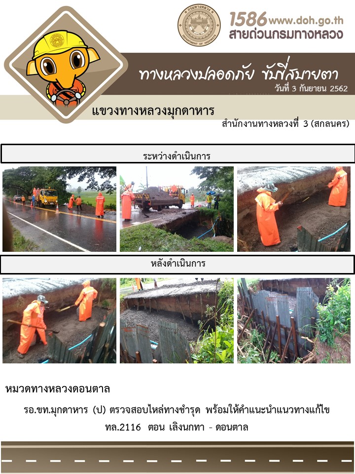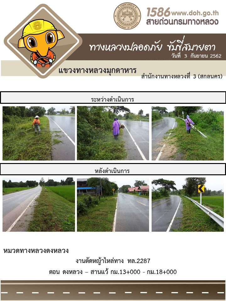 โครงการทางหลวงปลอดภัย ขับขี่สบายตา หน่วยงานในสังกัดแขวง 3 ก.ย.62