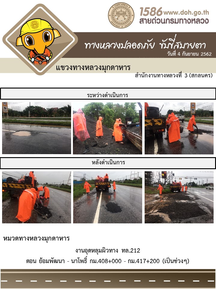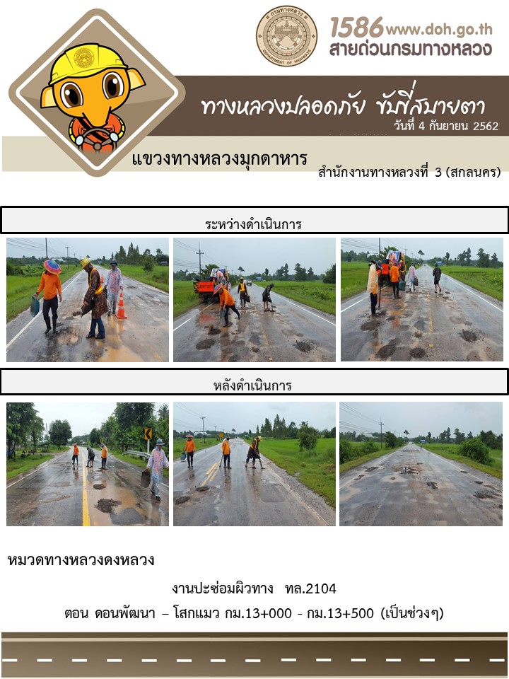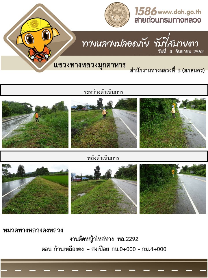 โครงการทางหลวงปลอดภัย ขับขี่สบายตา หน่วยงานในสังกัดแขวง 4 ก.ย.62