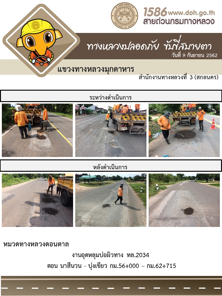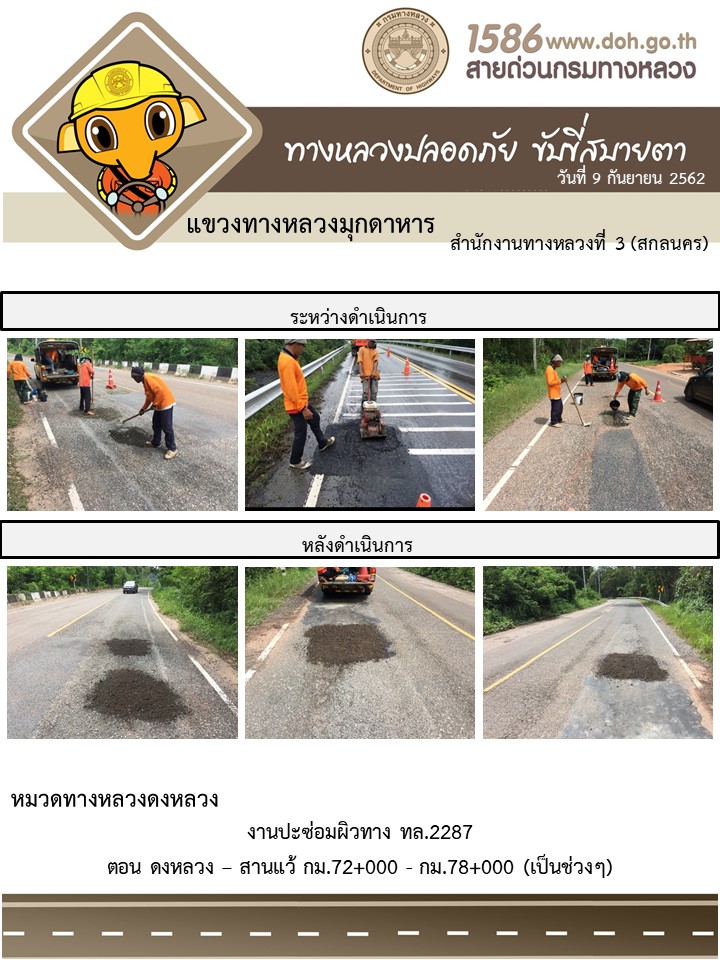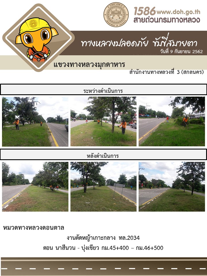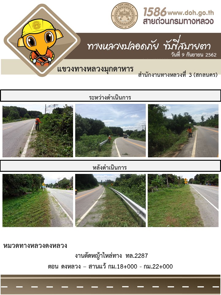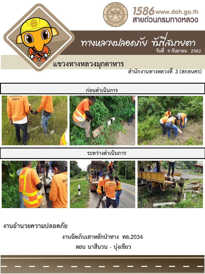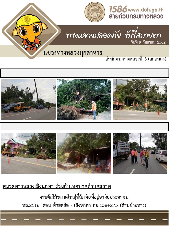 โตรงการทางหลวงปลอดภัย ขับขี่สบายตา หน่วยงานในสังกัดแขวง 9 ก.ย.62