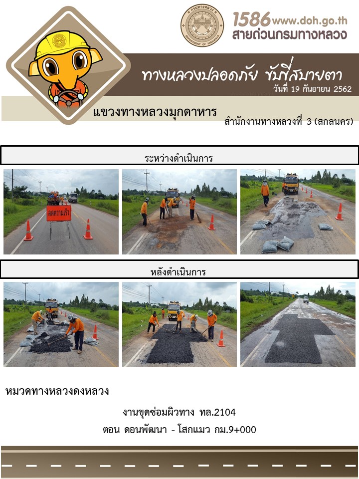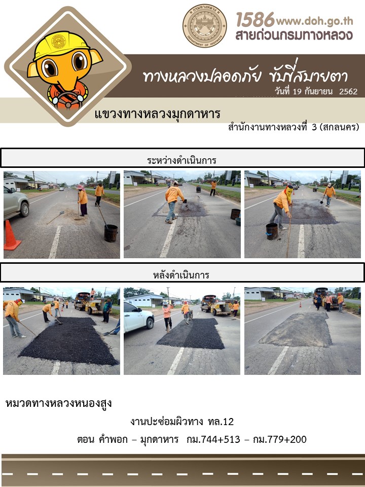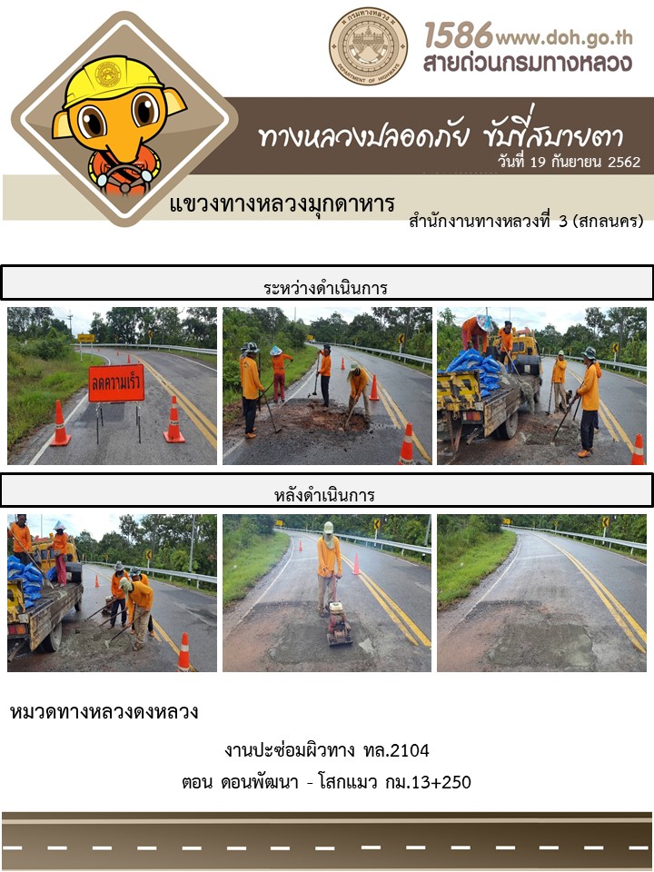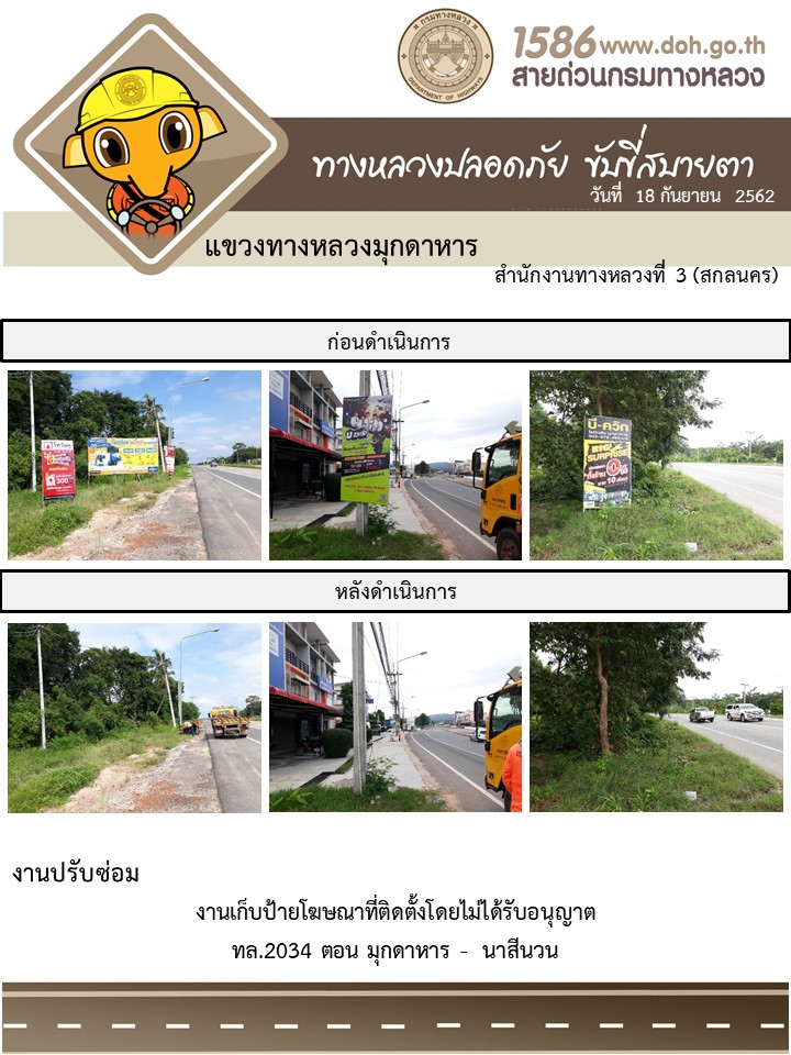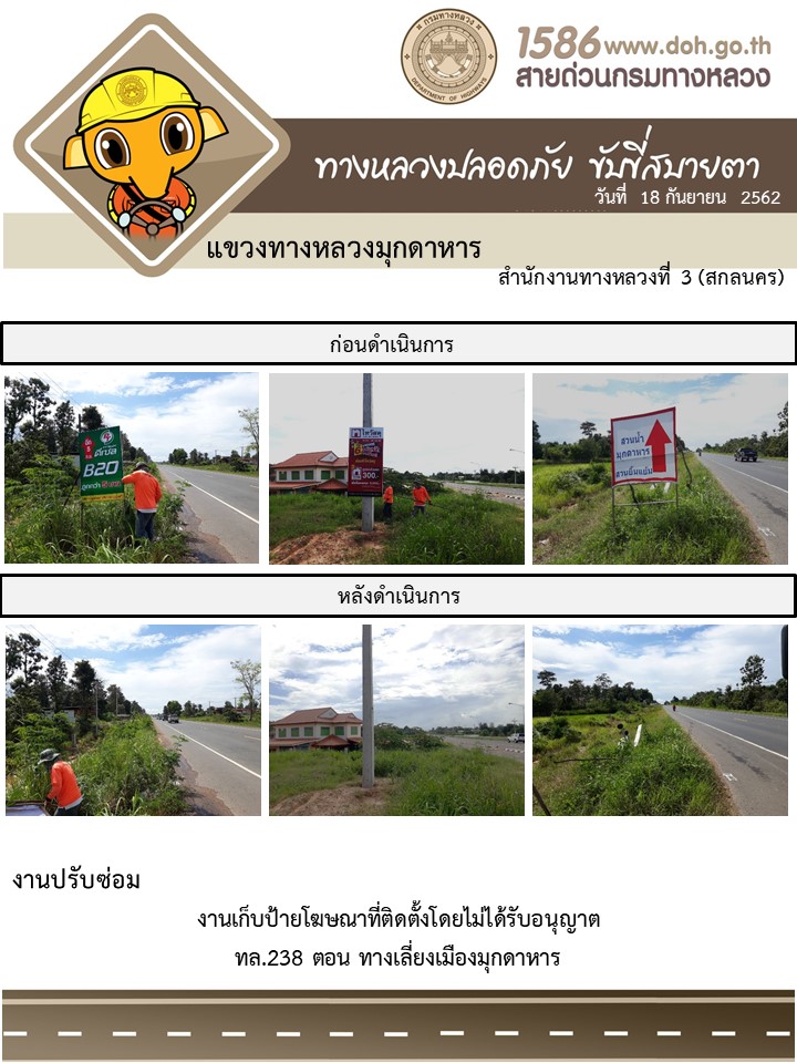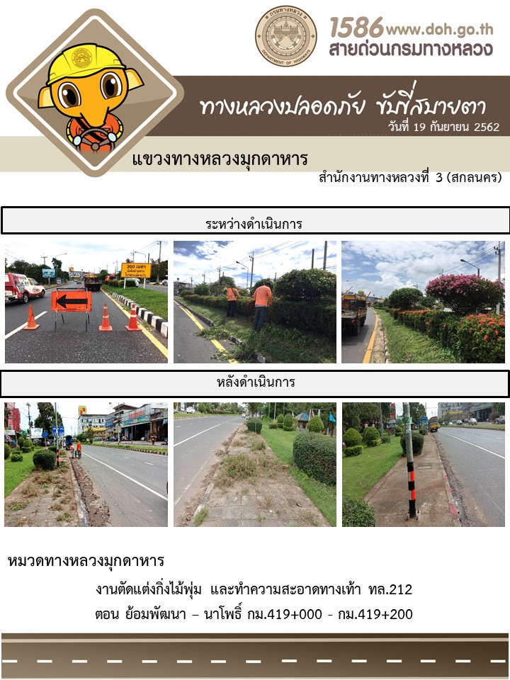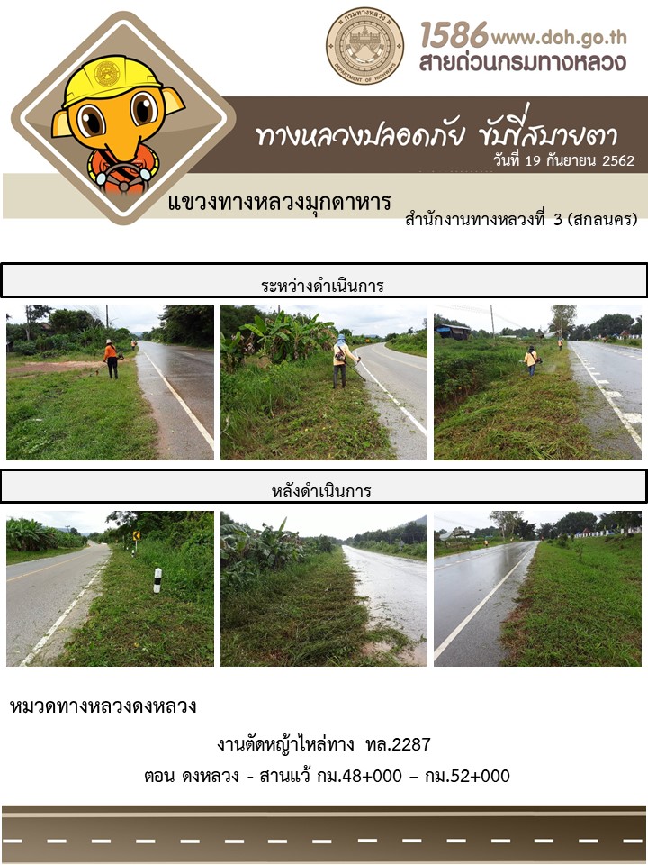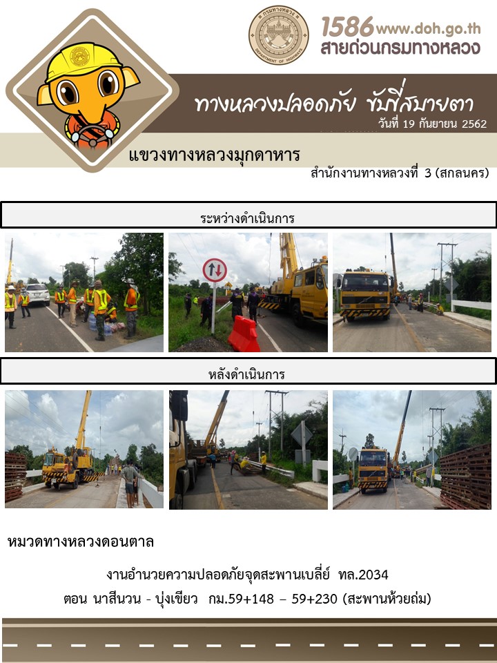 โครงการทางหลวงปลอดภัย ขับขี่สบายตา หน่วยงานในสังกัดแขวง 19 ก.ย.62
