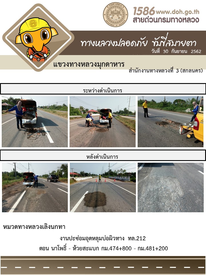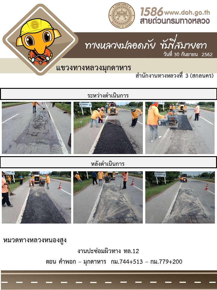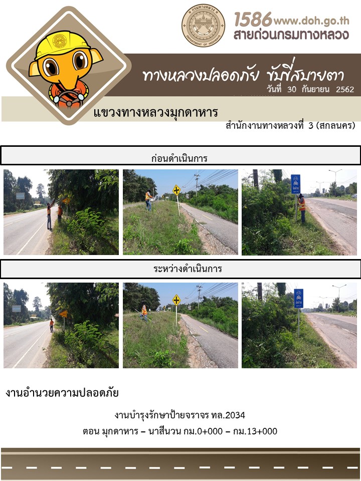 โครงการทางหลวงปลอดภัย ขับขี่สบายตา หน่วยงานในสังกัดแขวง 30 ก.ย.62