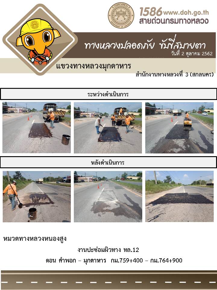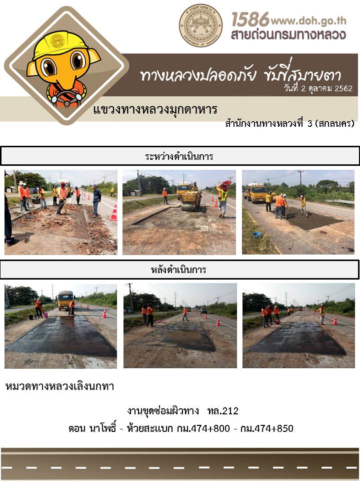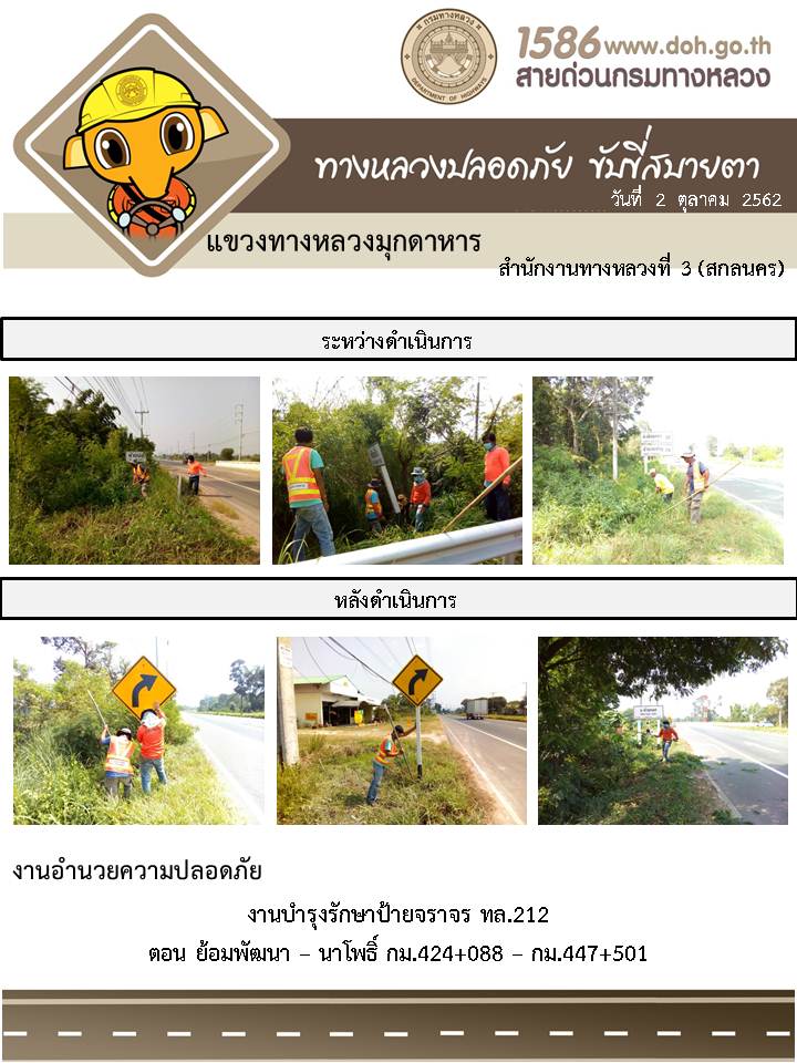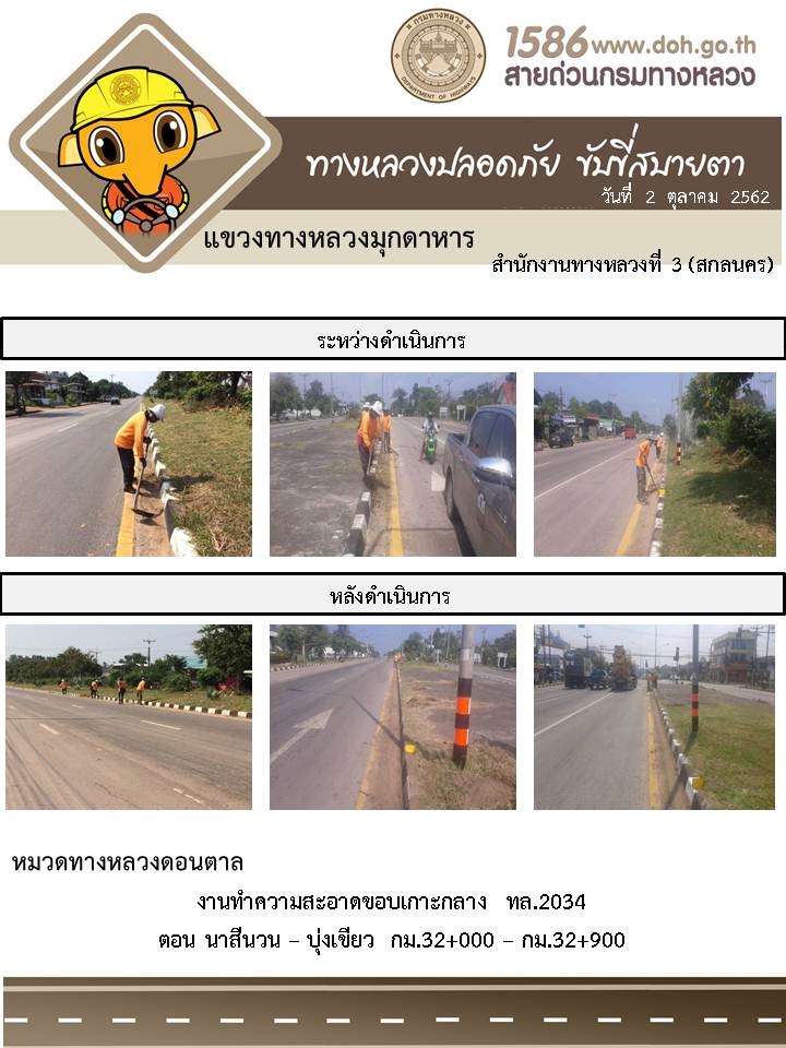 โครงการทางหลวงปลอดภัย ขับขี่สบายตา หน่วยงานในสังกัดแขวง 2 ต.ค.62