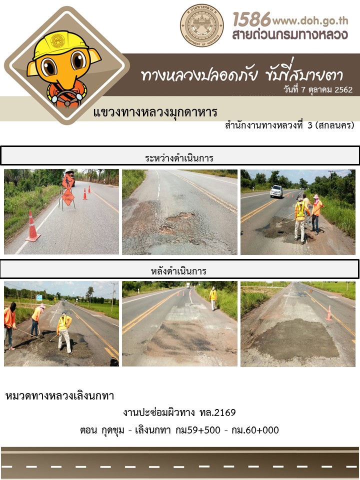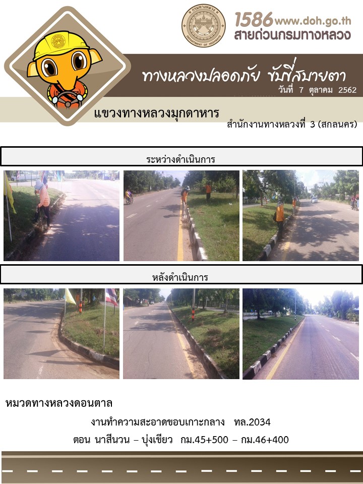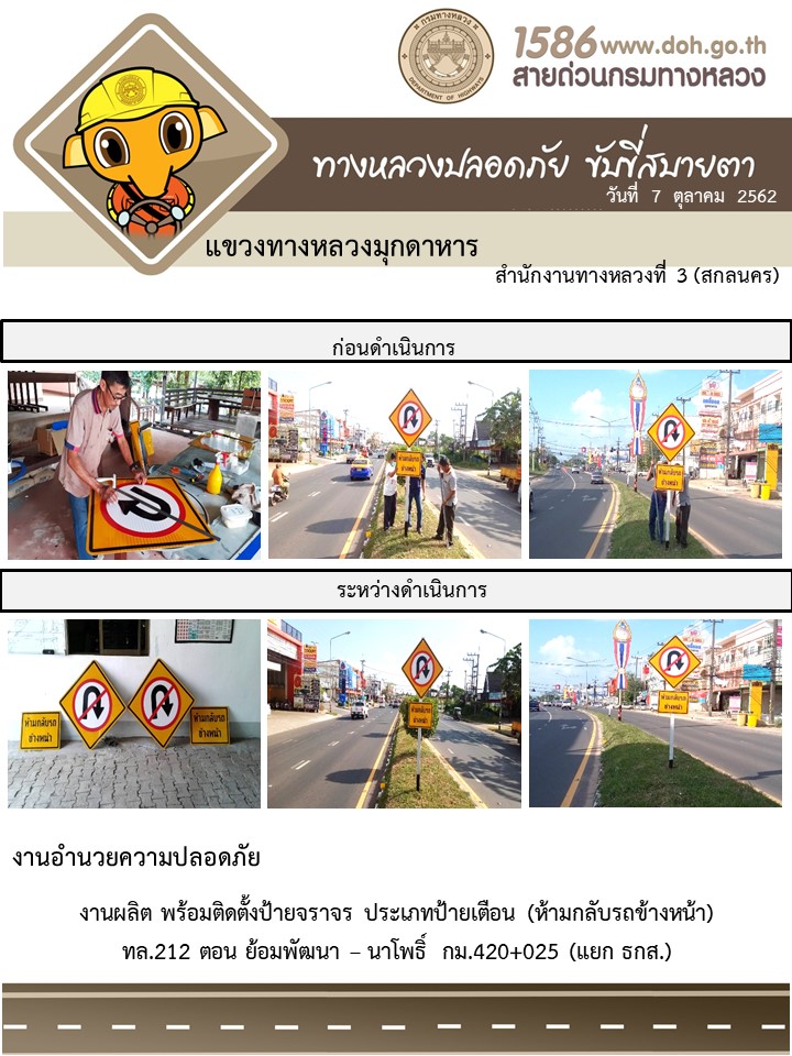 โครงการทางหลวงปลอดภัย ขับขี่สบายตา หน่วยงานในสังกัดแขวง 7 ต.ค. 62