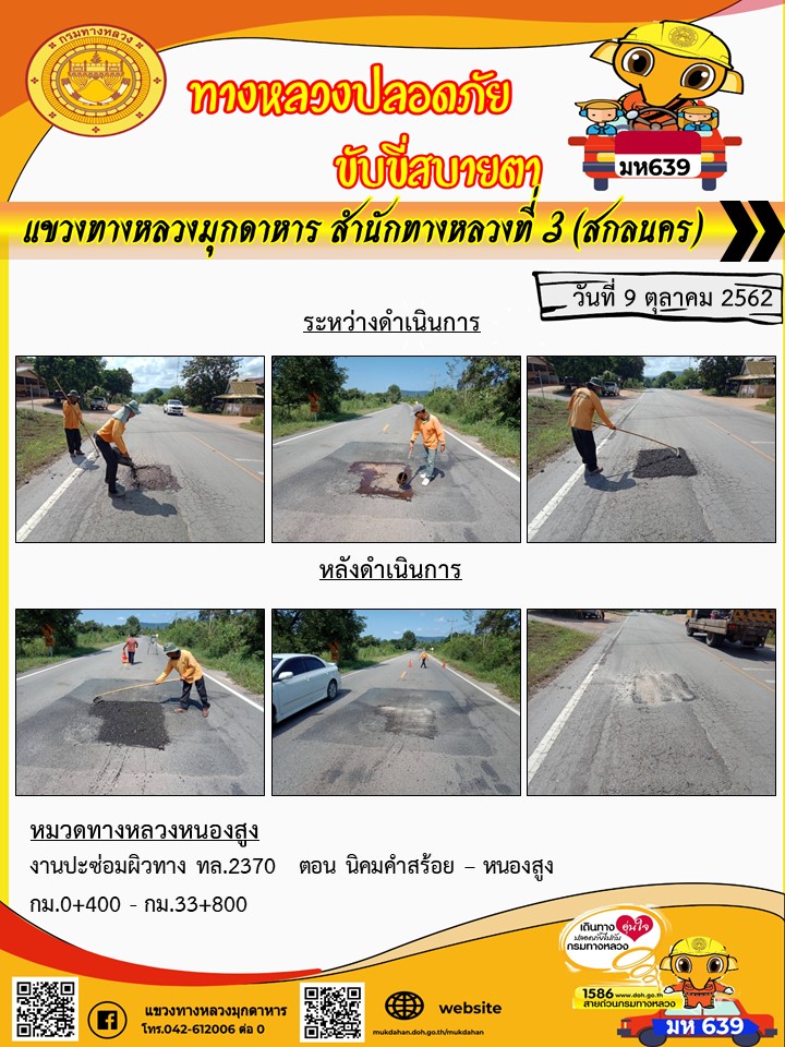 ข้อมูลภาพกิจกรรม : โครงการทางหลวงปลอดภัย ขับขี่สบายตา หน่วยงานในสังกัดแขวง 9 ต.ค. 62