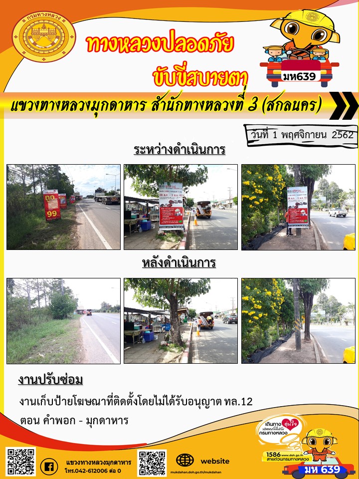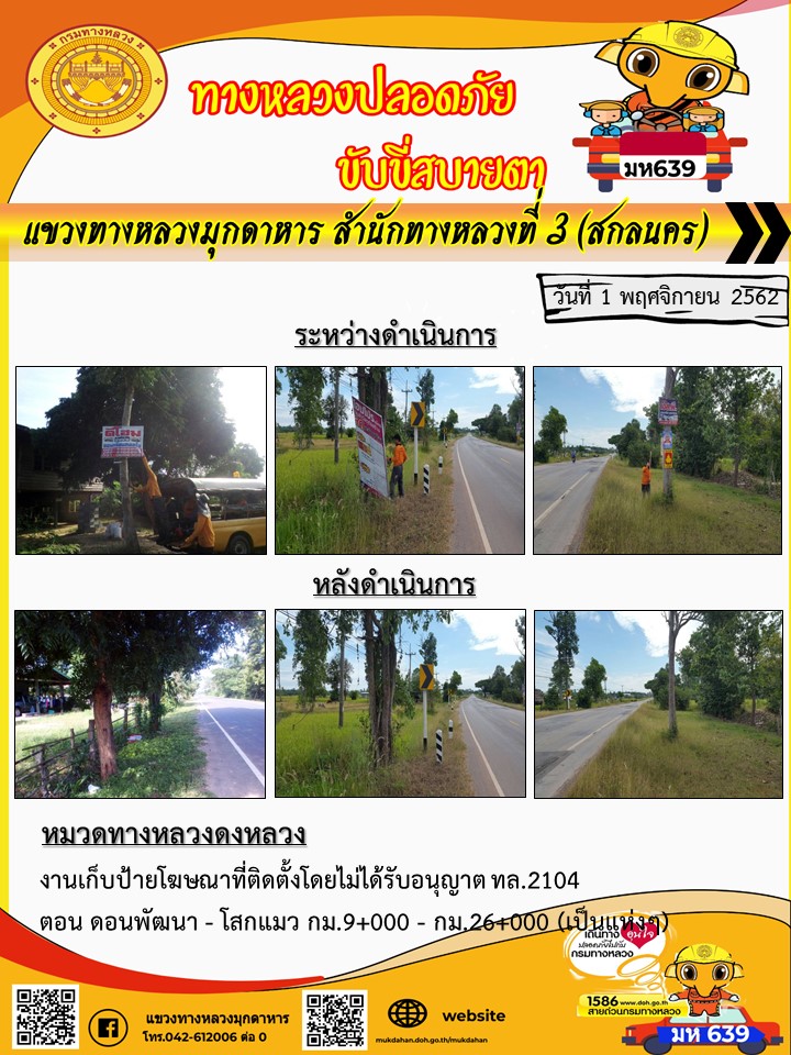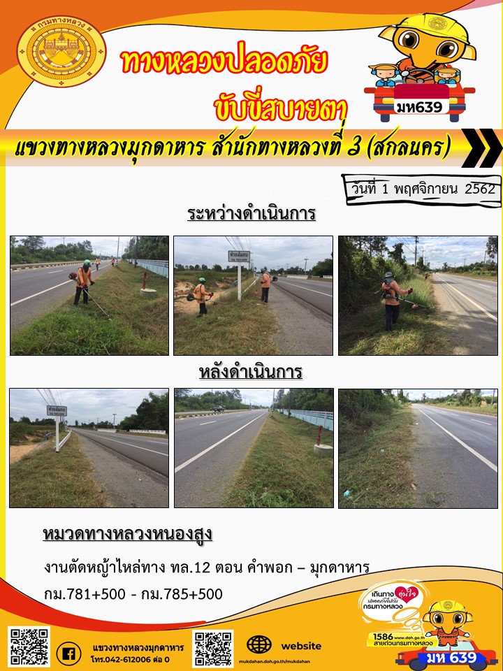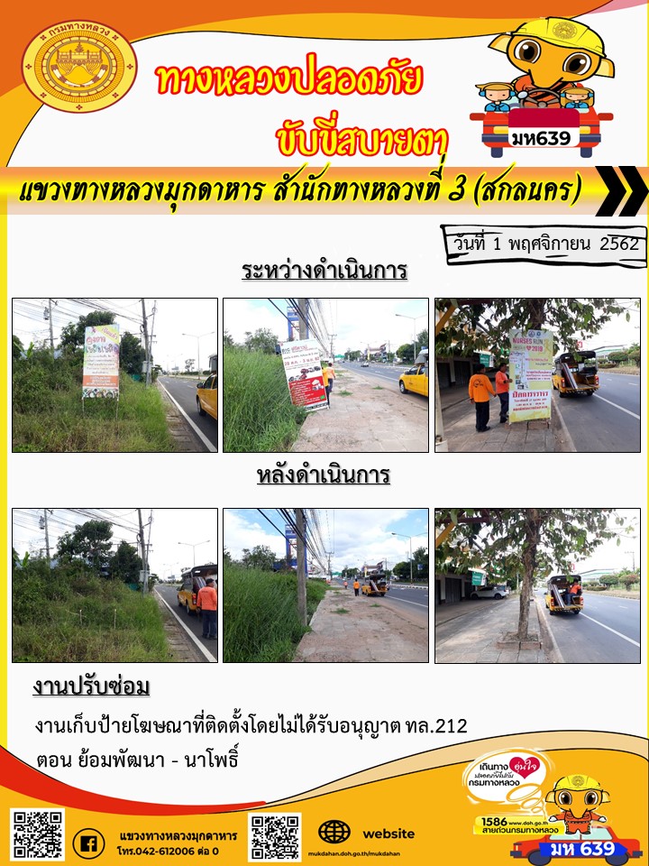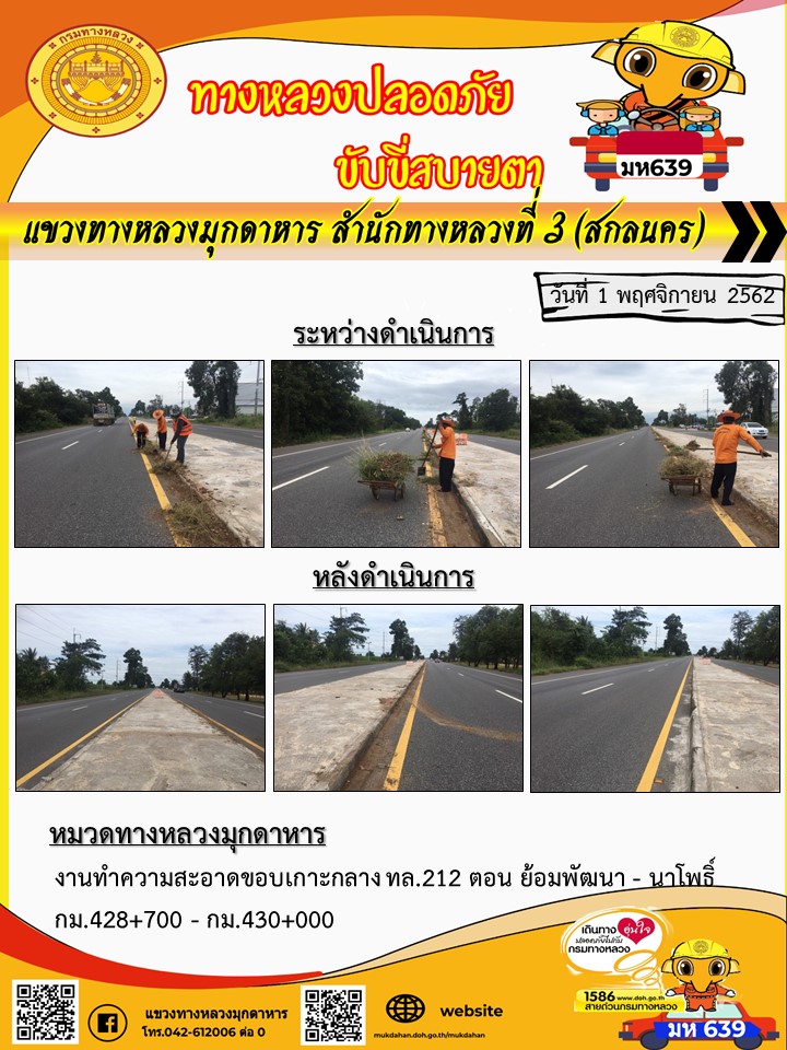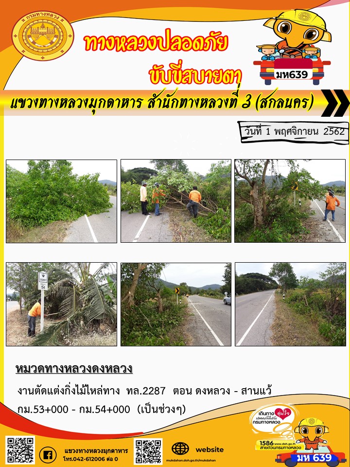 โครงการทางหลวงปลอดภัย ขับขี่สบายตา หน่วยงานในสังกัดแขวง 1 พ.ย. 62