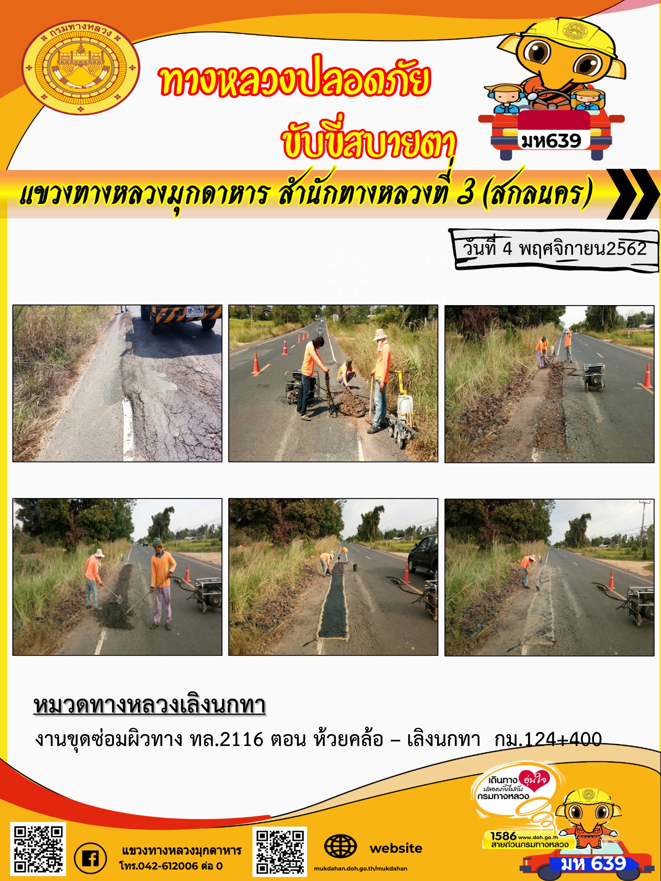 โครงการทางหลวงปลอดภัย ขับขี่สบายตา หน่วยงานในสังกัดแขวง 4 พ.ย. 62