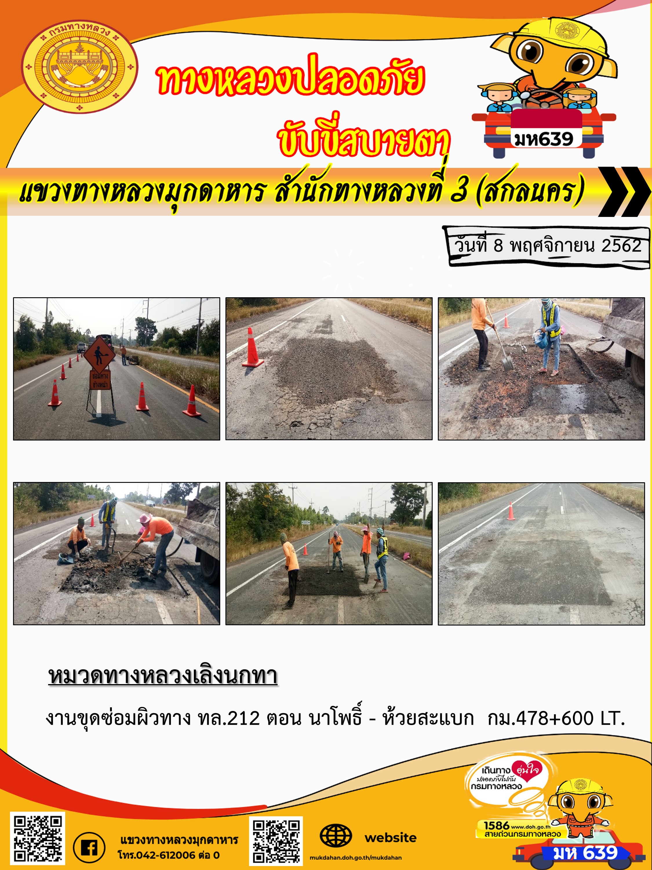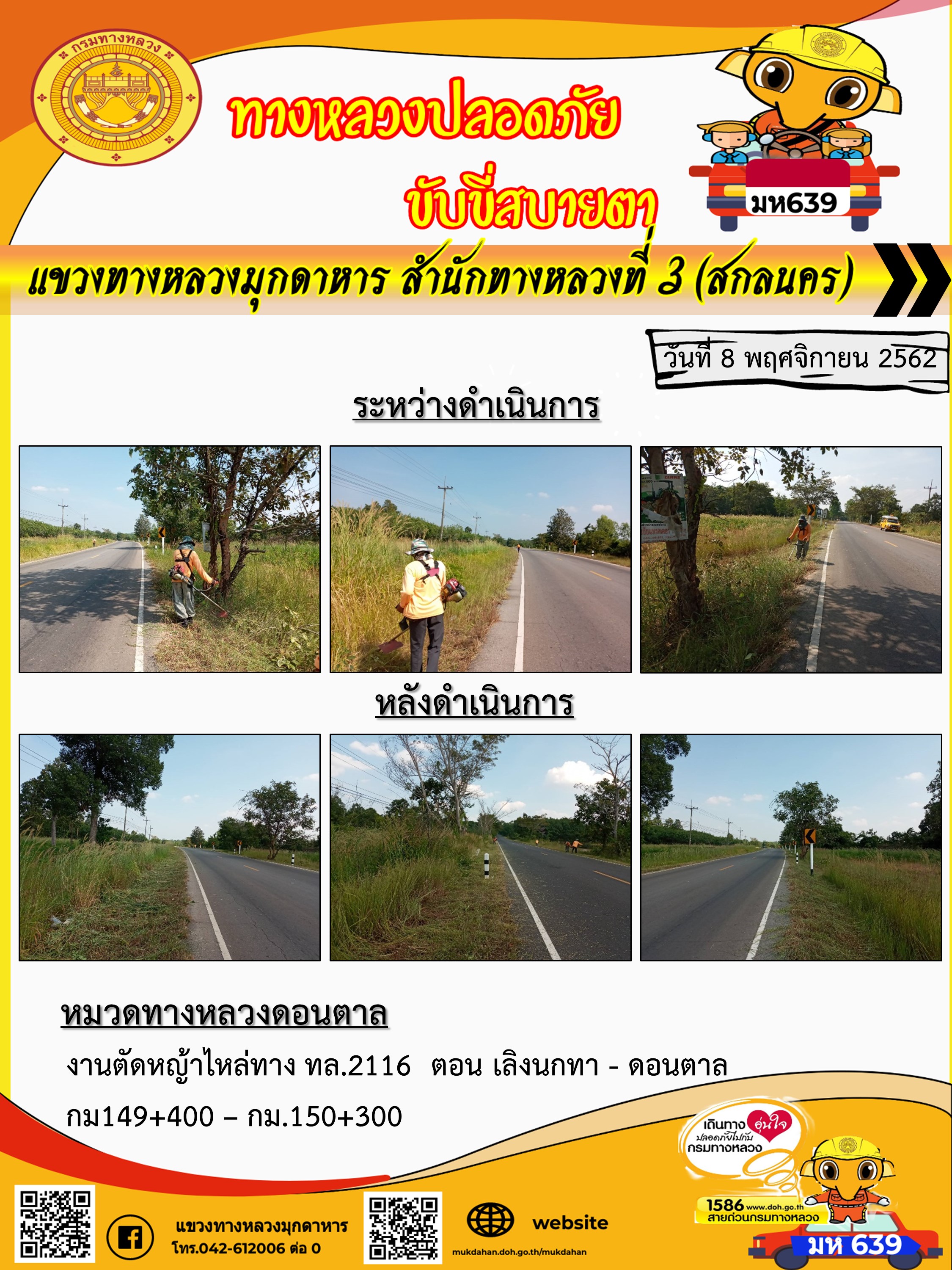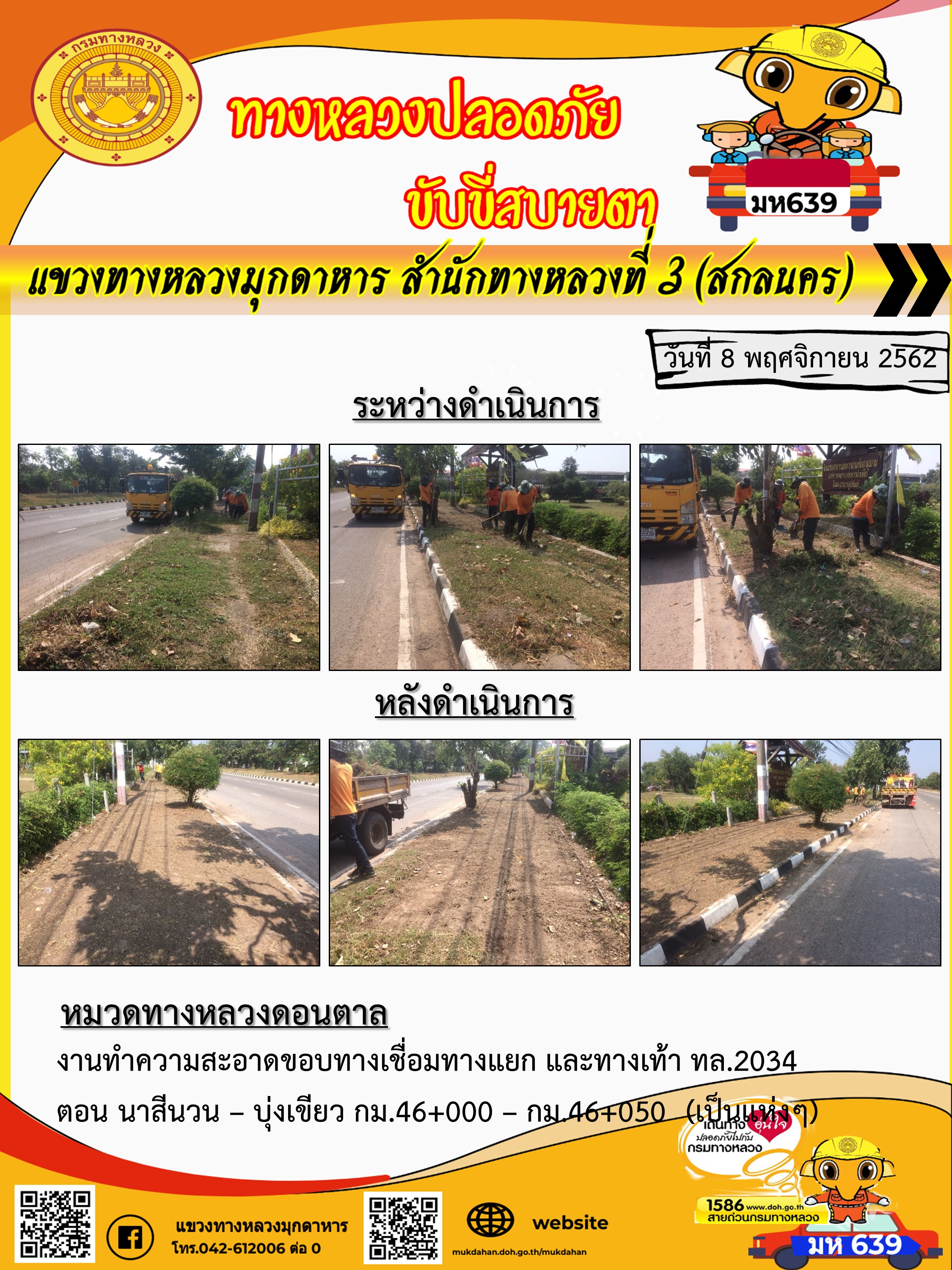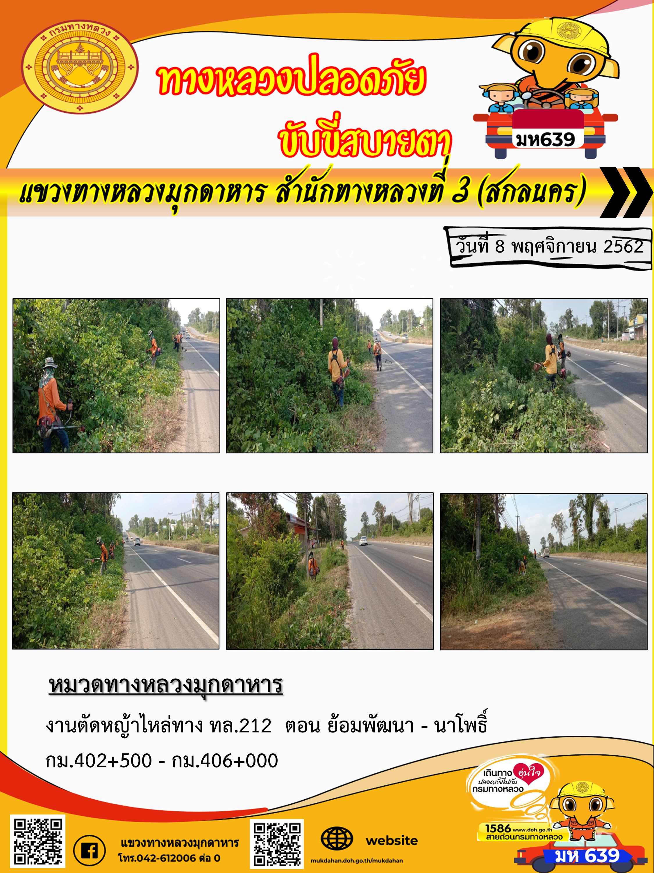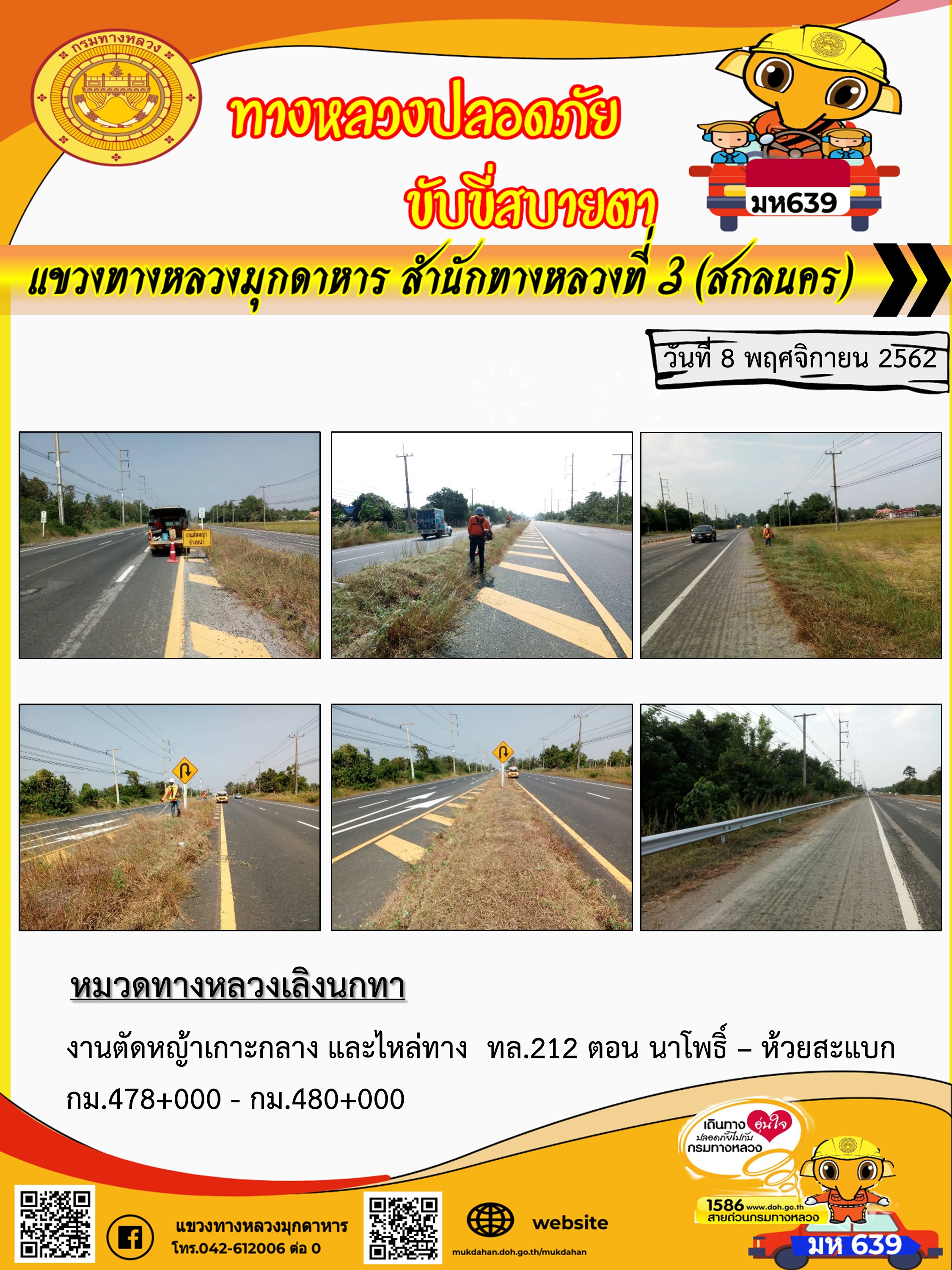 โครงการทางหลวงปลอดภัย ขับขี่สบายตา หน่วยงานในสังกัดแขวง 8 พ.ย. 62