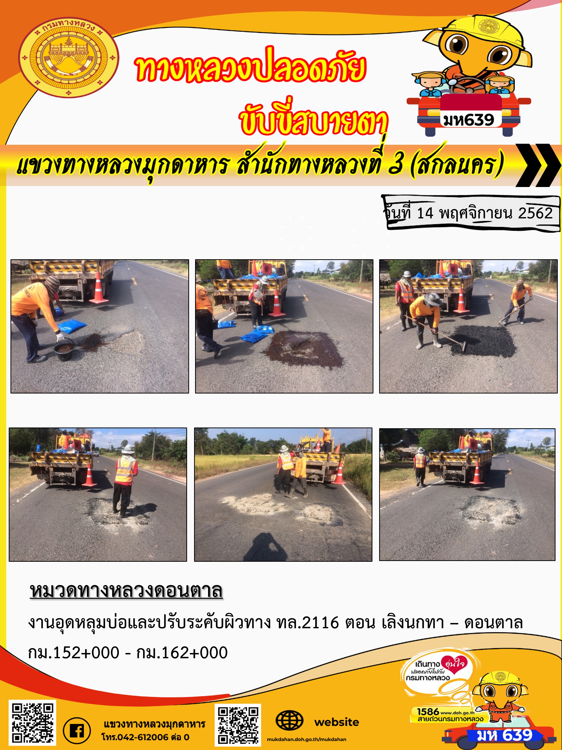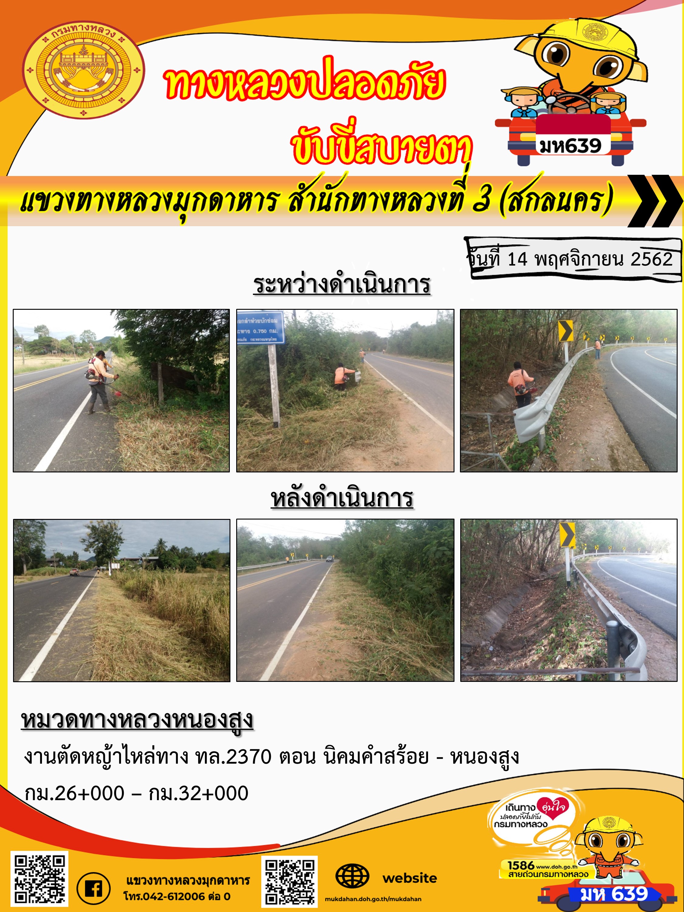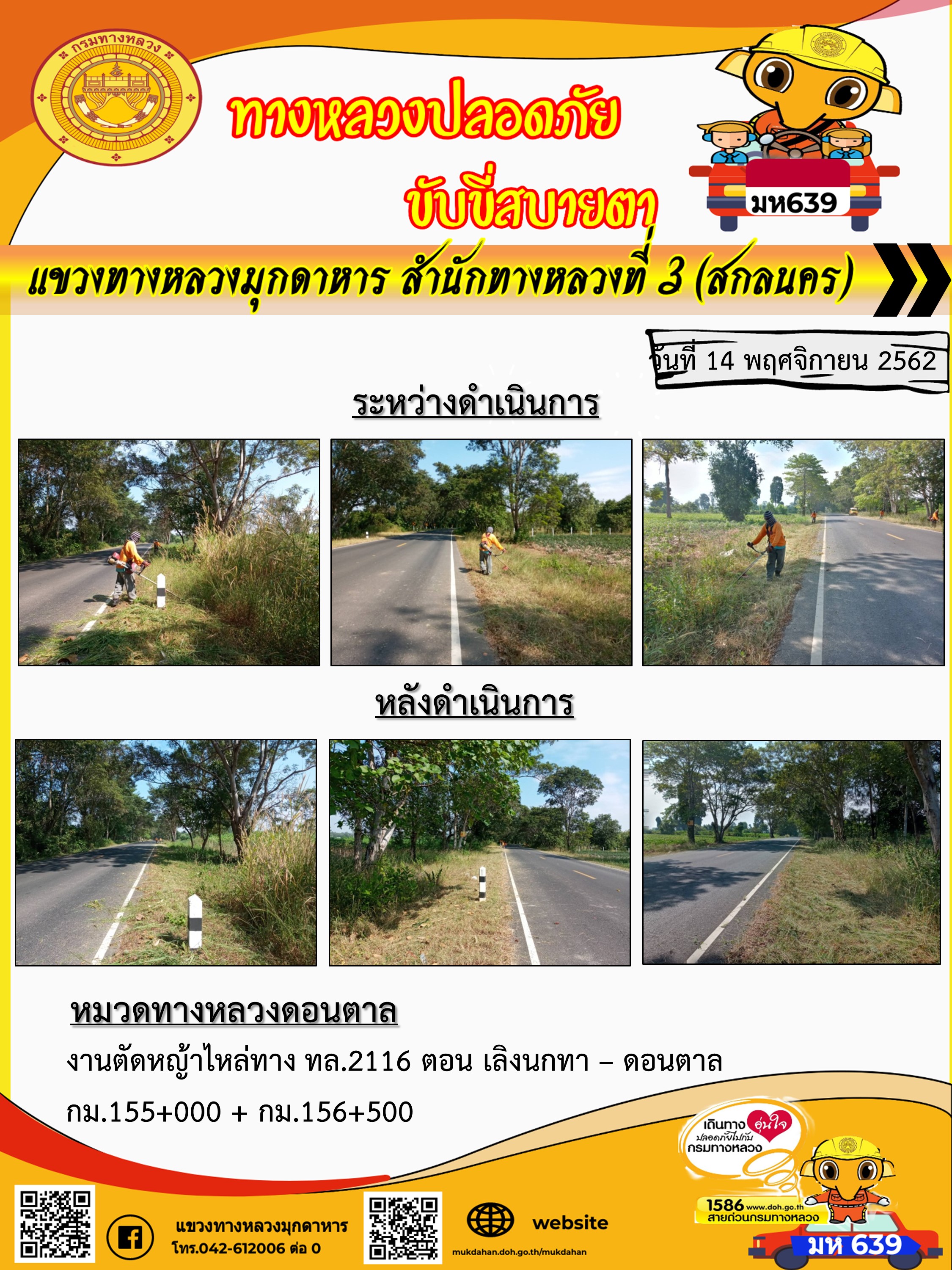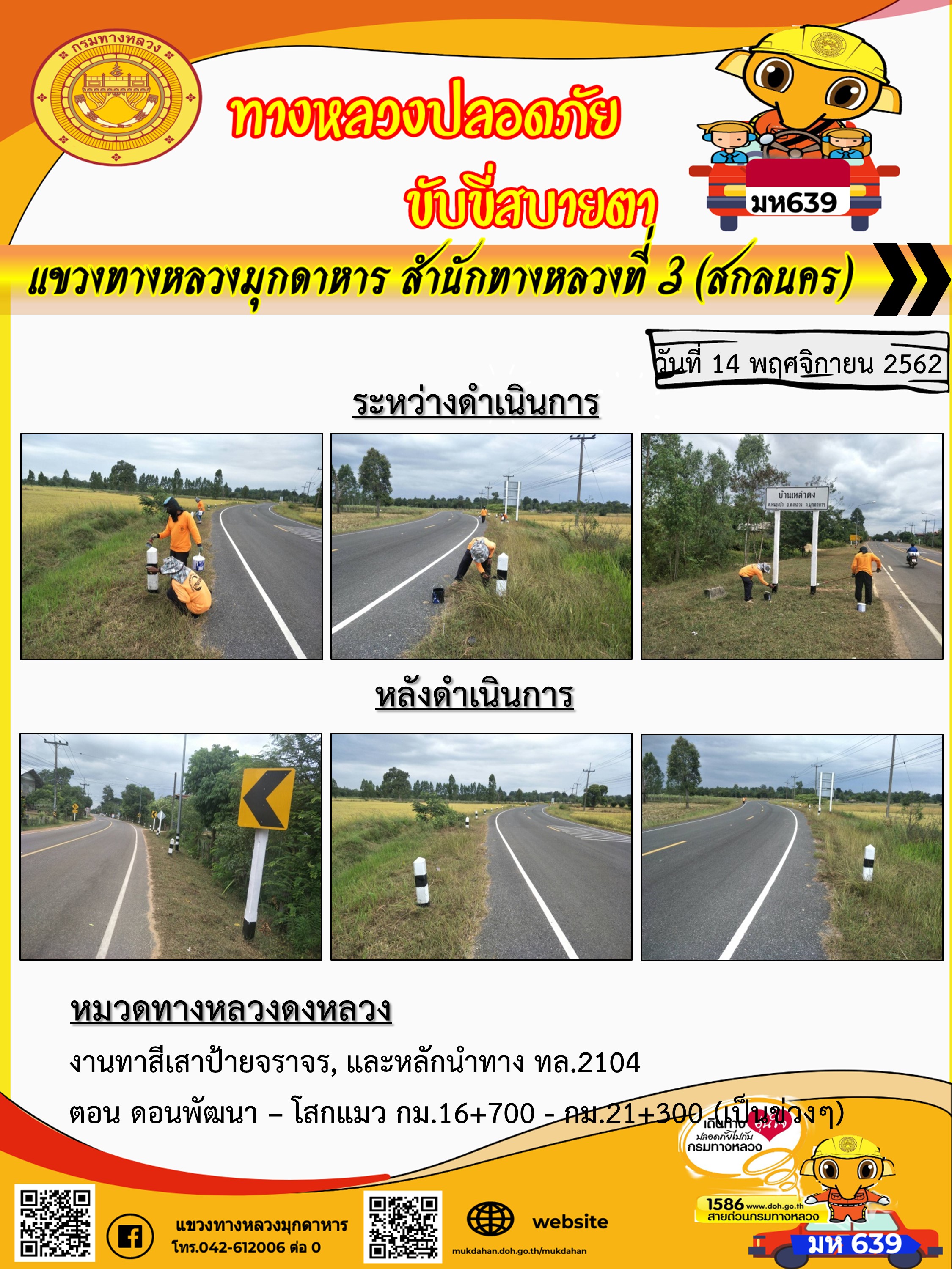 โครงการทางหลวงปลอดภัย ขับขี่สบายตา หน่วยงานในสังกัดแขวง 14 พ.ย. 62