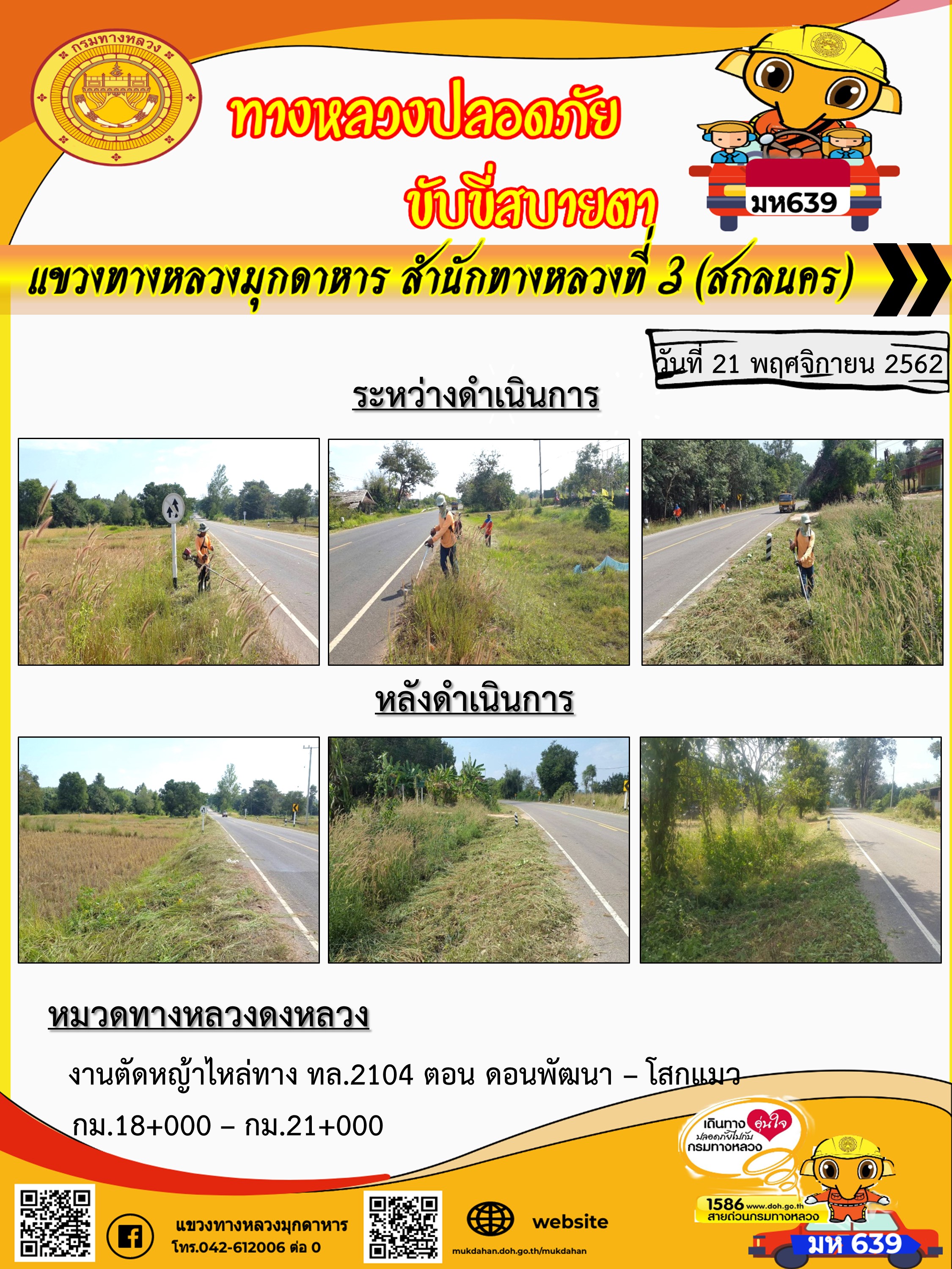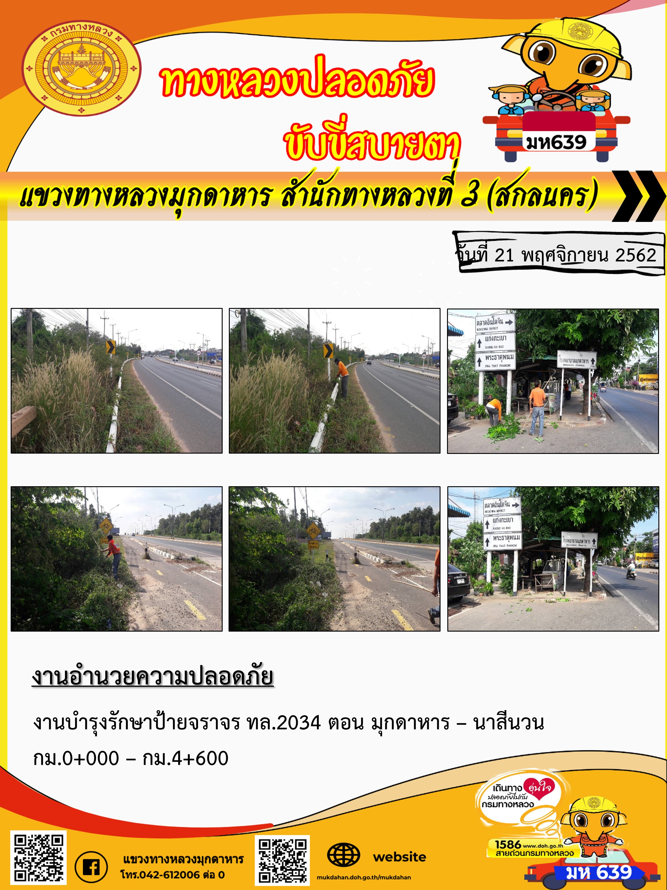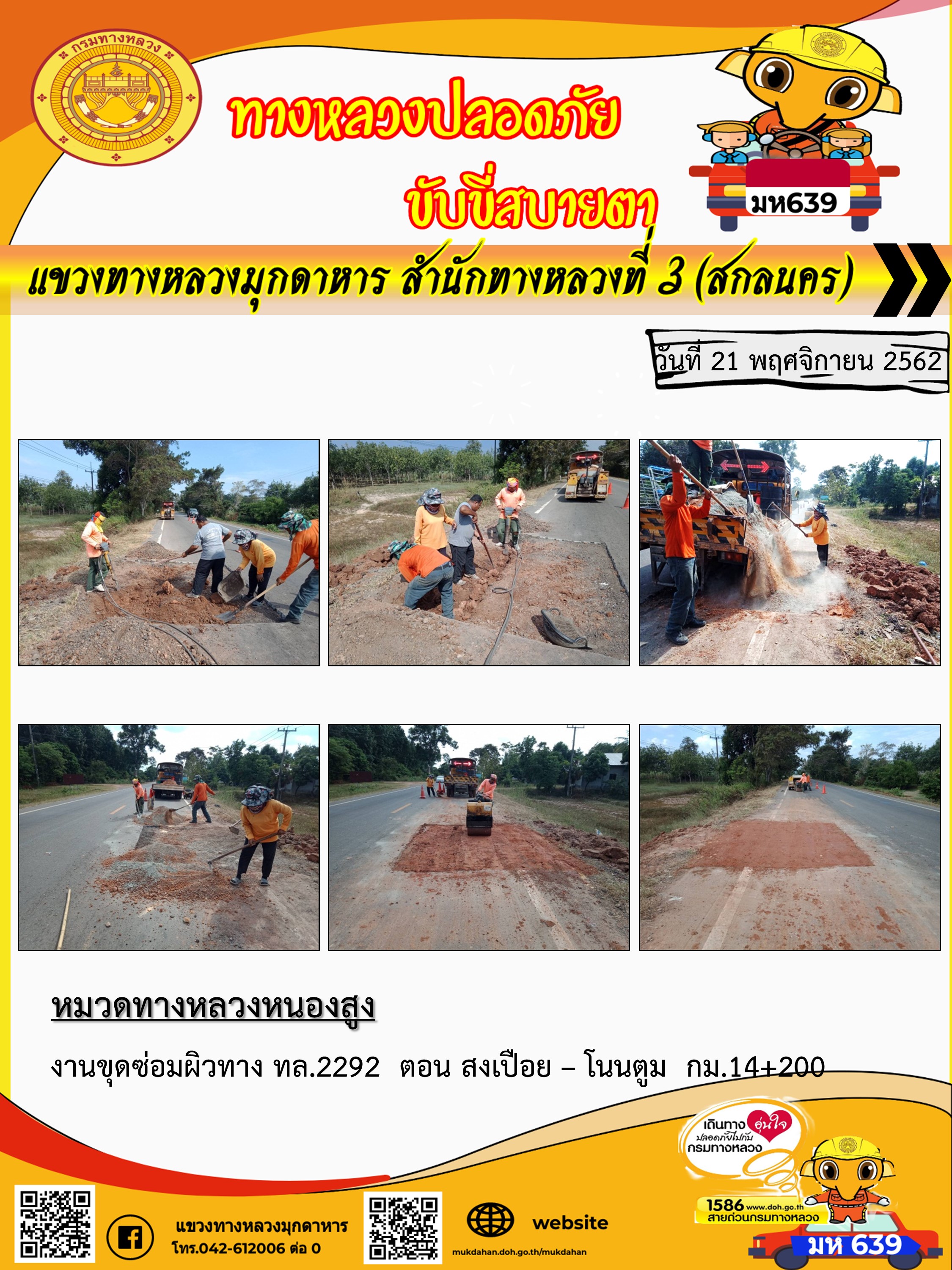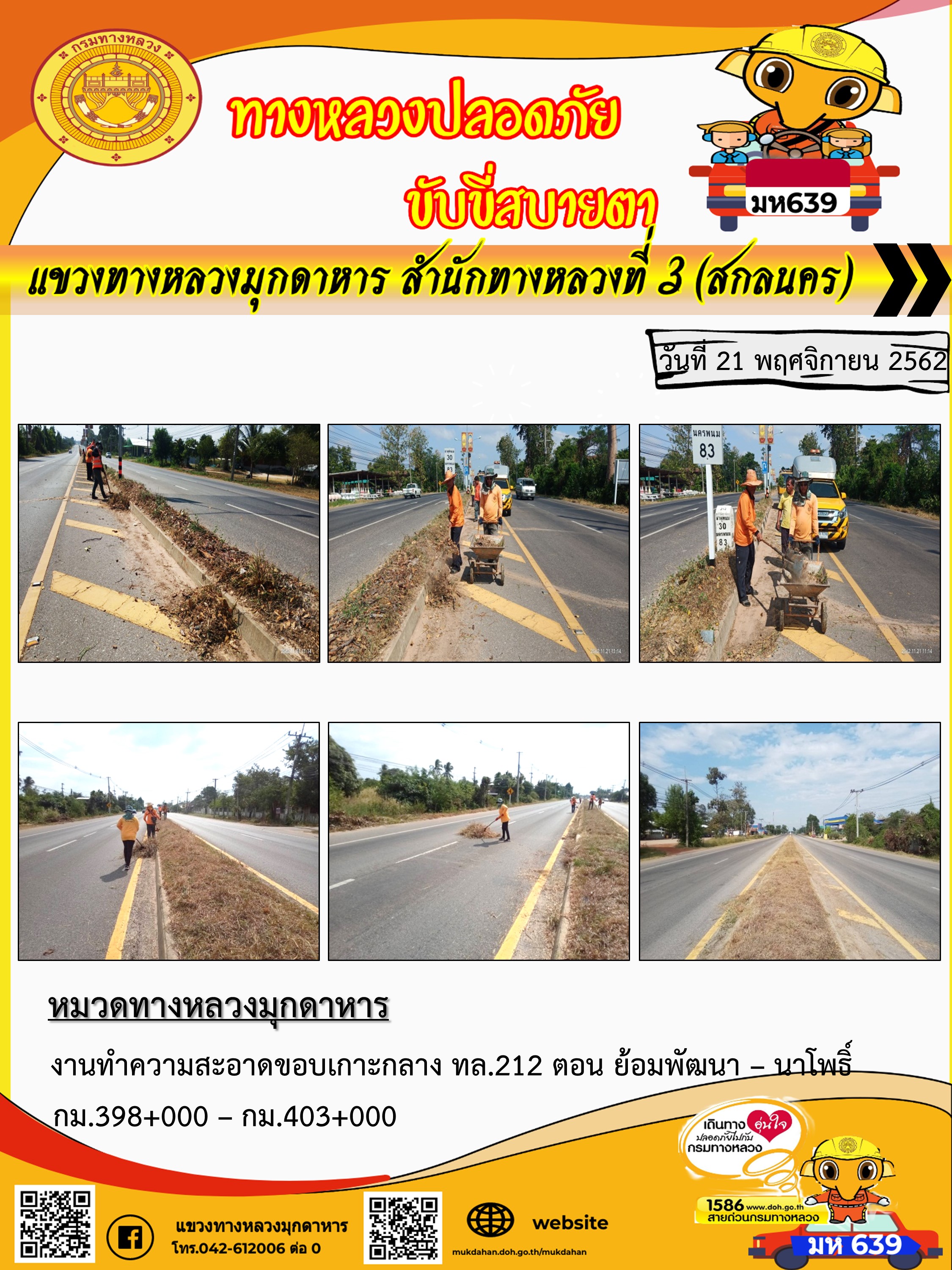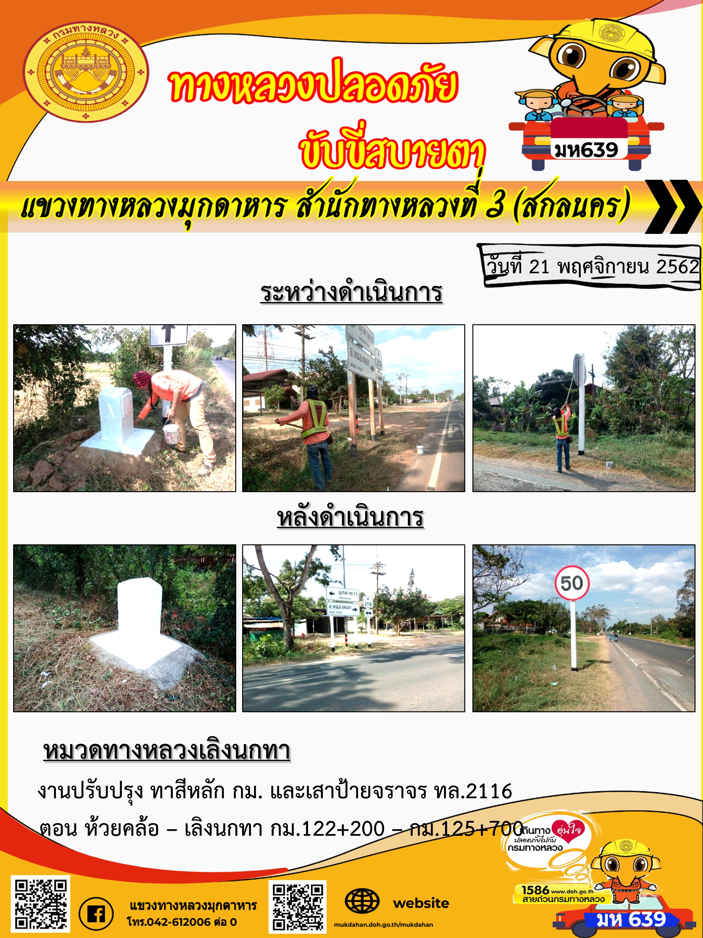 โครงการทางหลวงปลอดภัย ขับขี่สบายตา หน่วยงานในสังกัดแขวง 21 พ.ย. 62