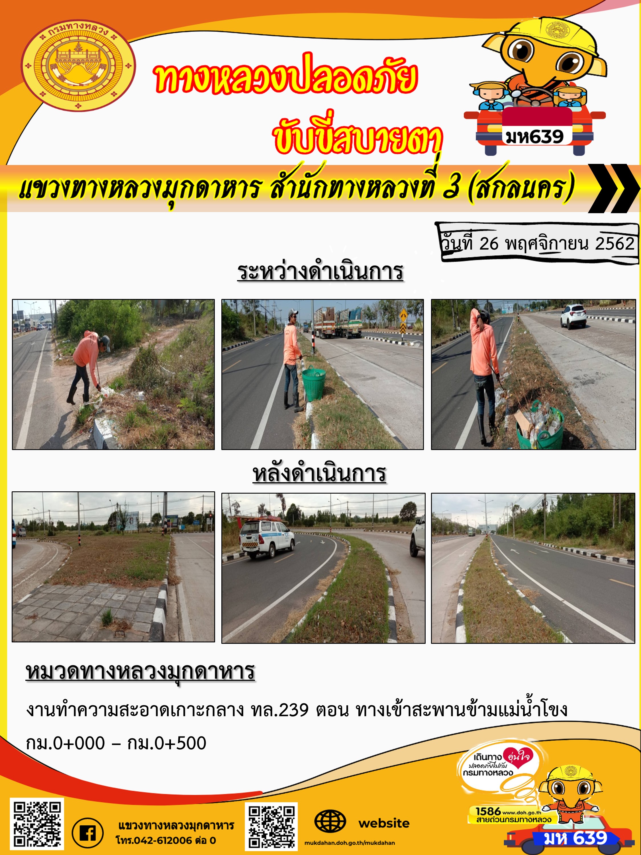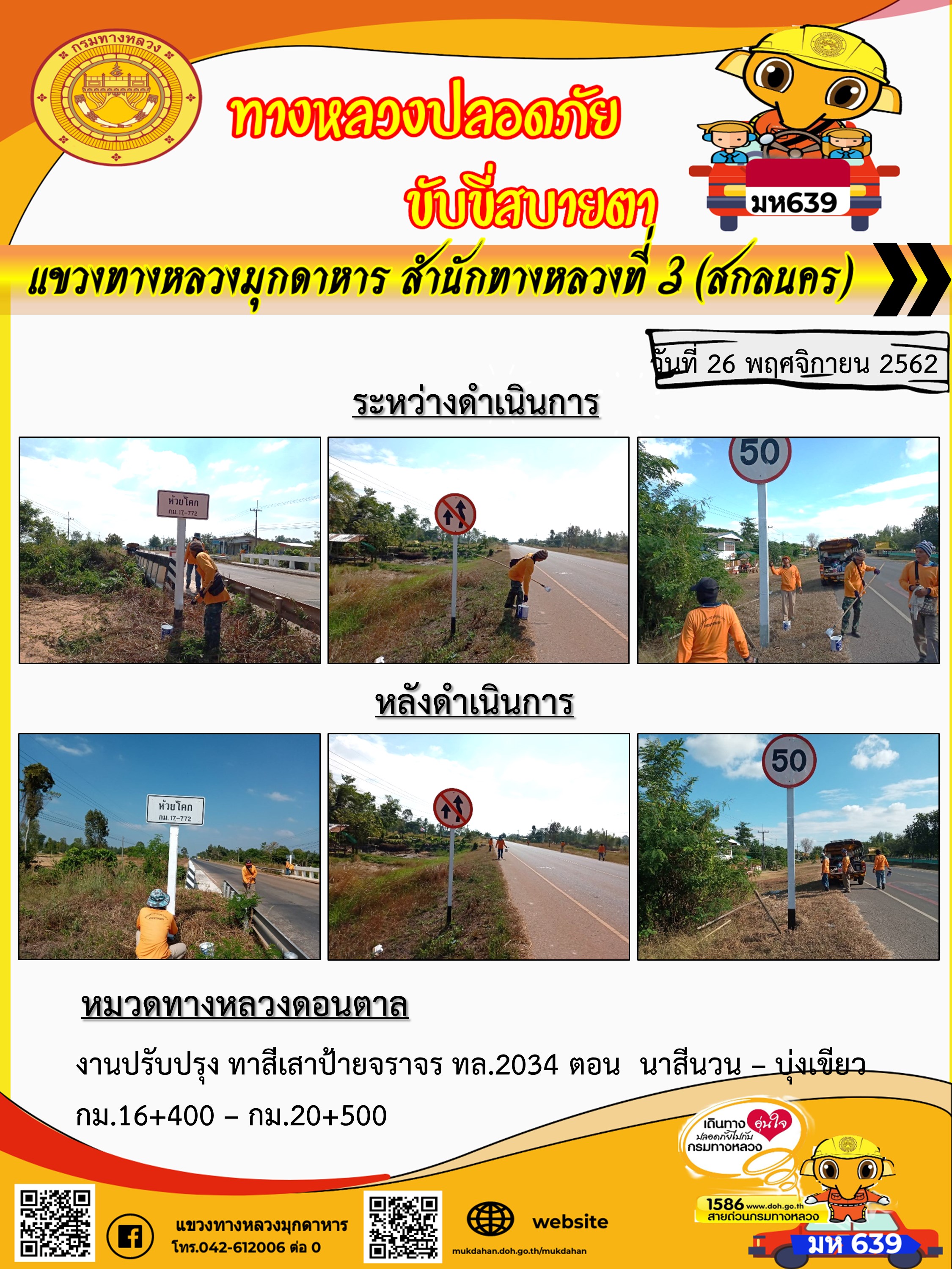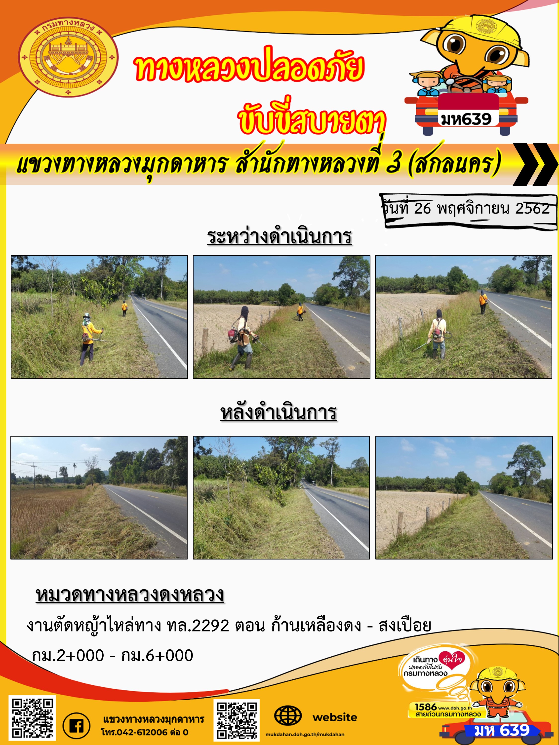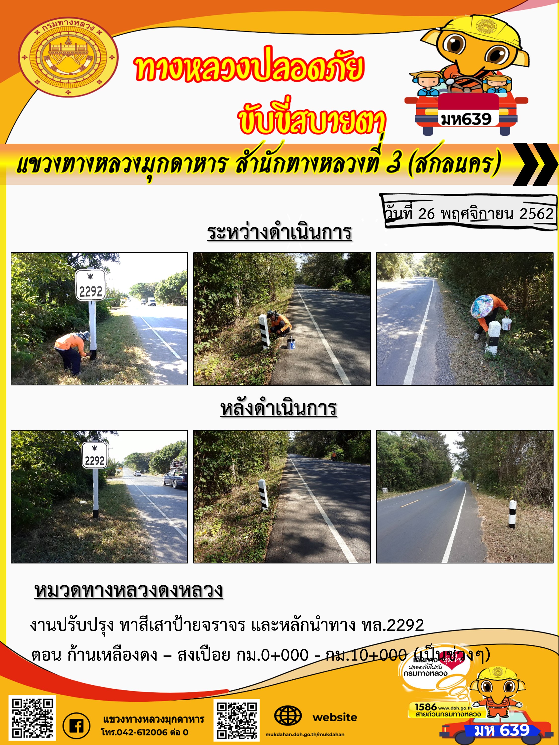 โครงการทางหลวงปลอดภัย ขับขี่สบายตา หน่วยงานในสังกัดแขวง 26 พ.ย. 62