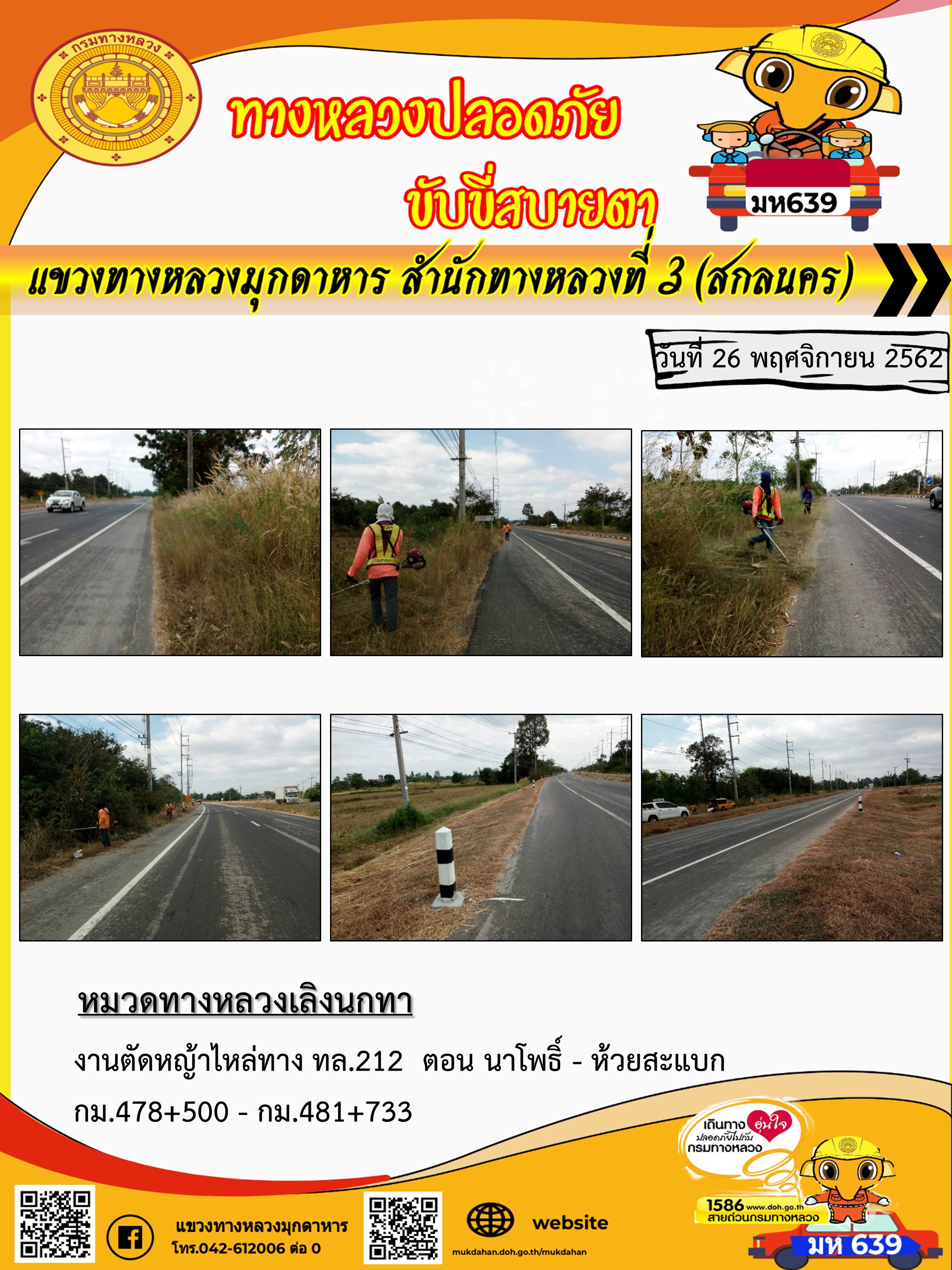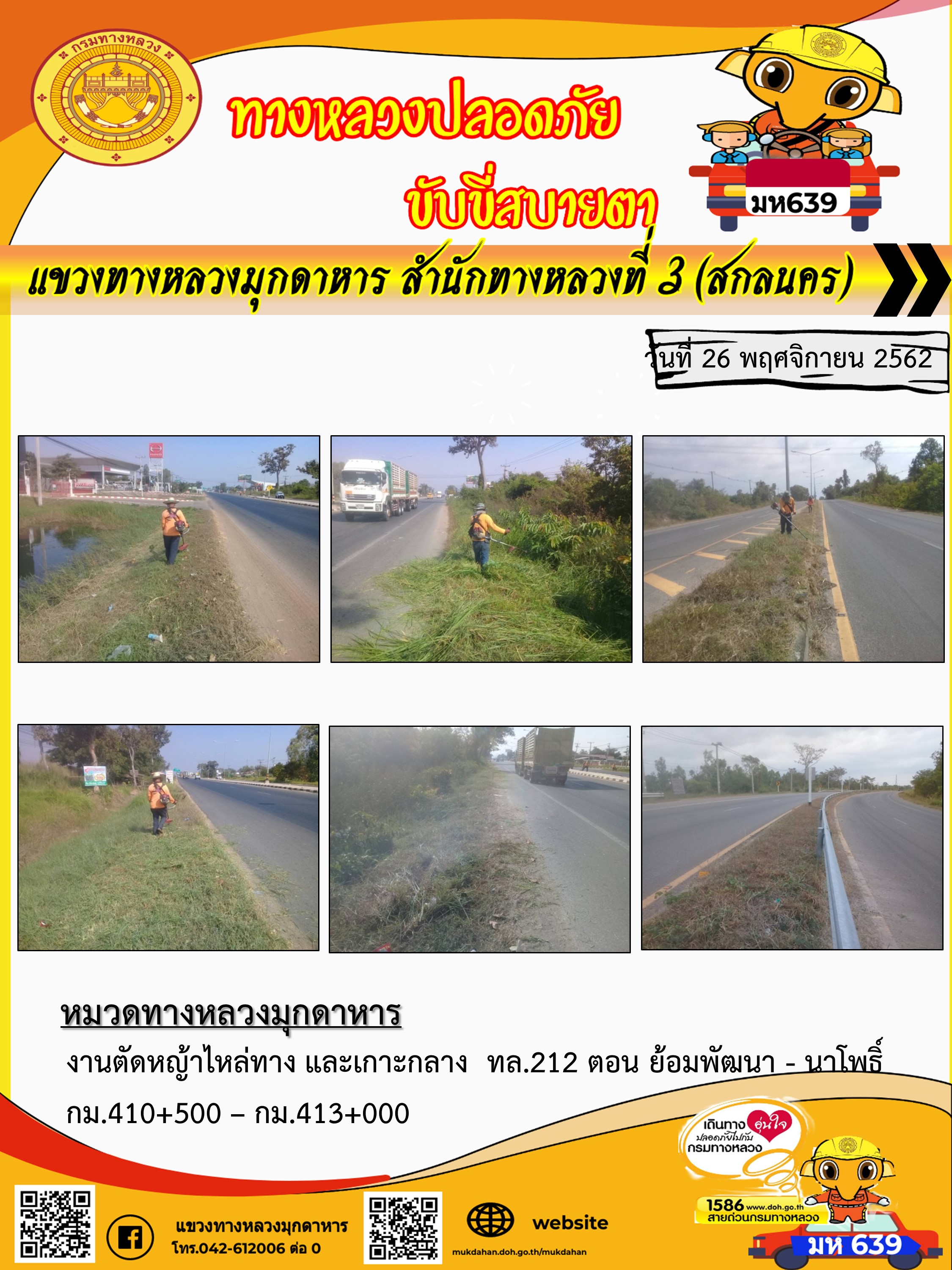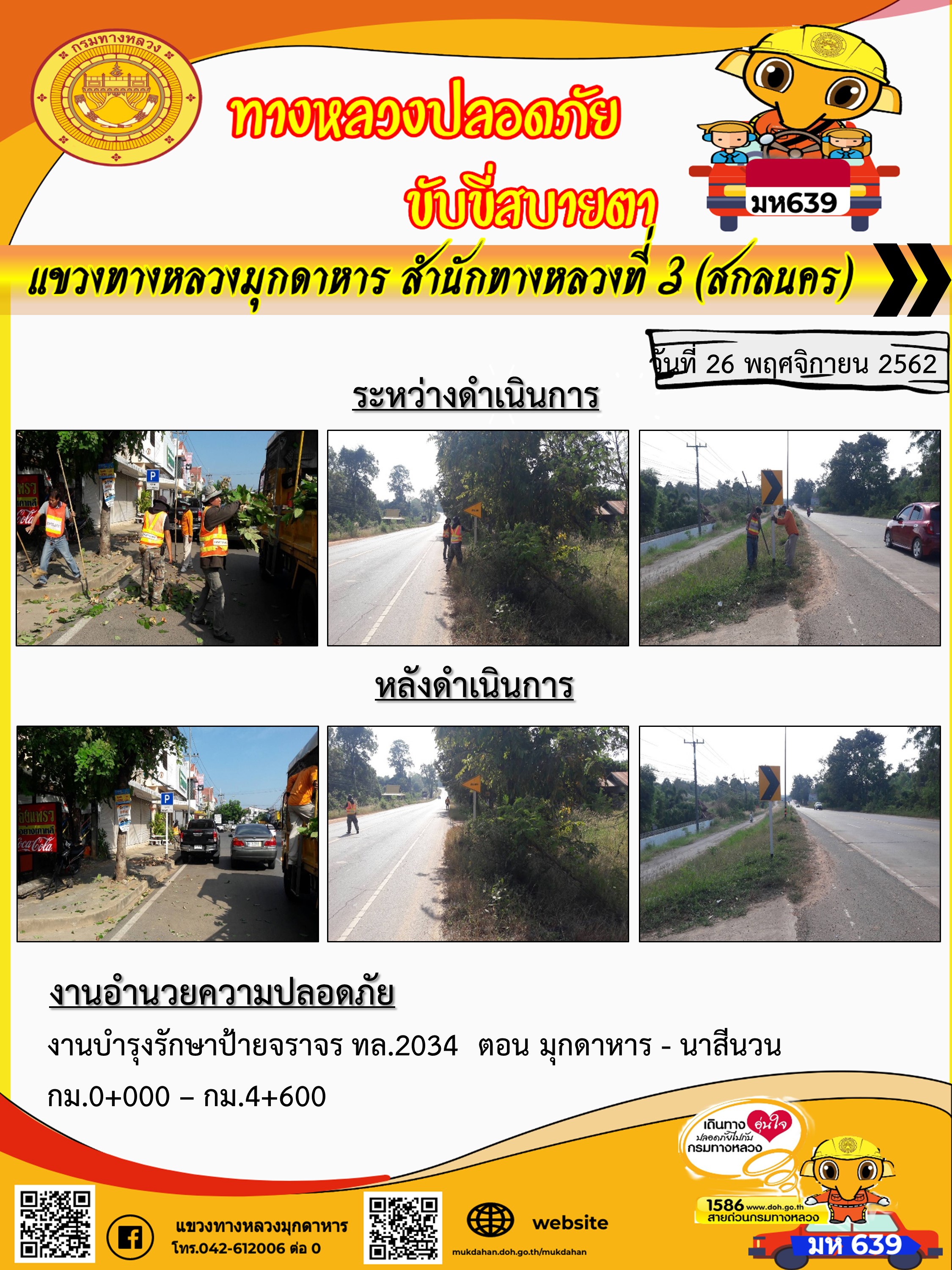 โครงการทางหลวงปลอดภัย ขับขี่สบายตา หน่วยงานในสังกัดแขวง 26 พ.ย. 62