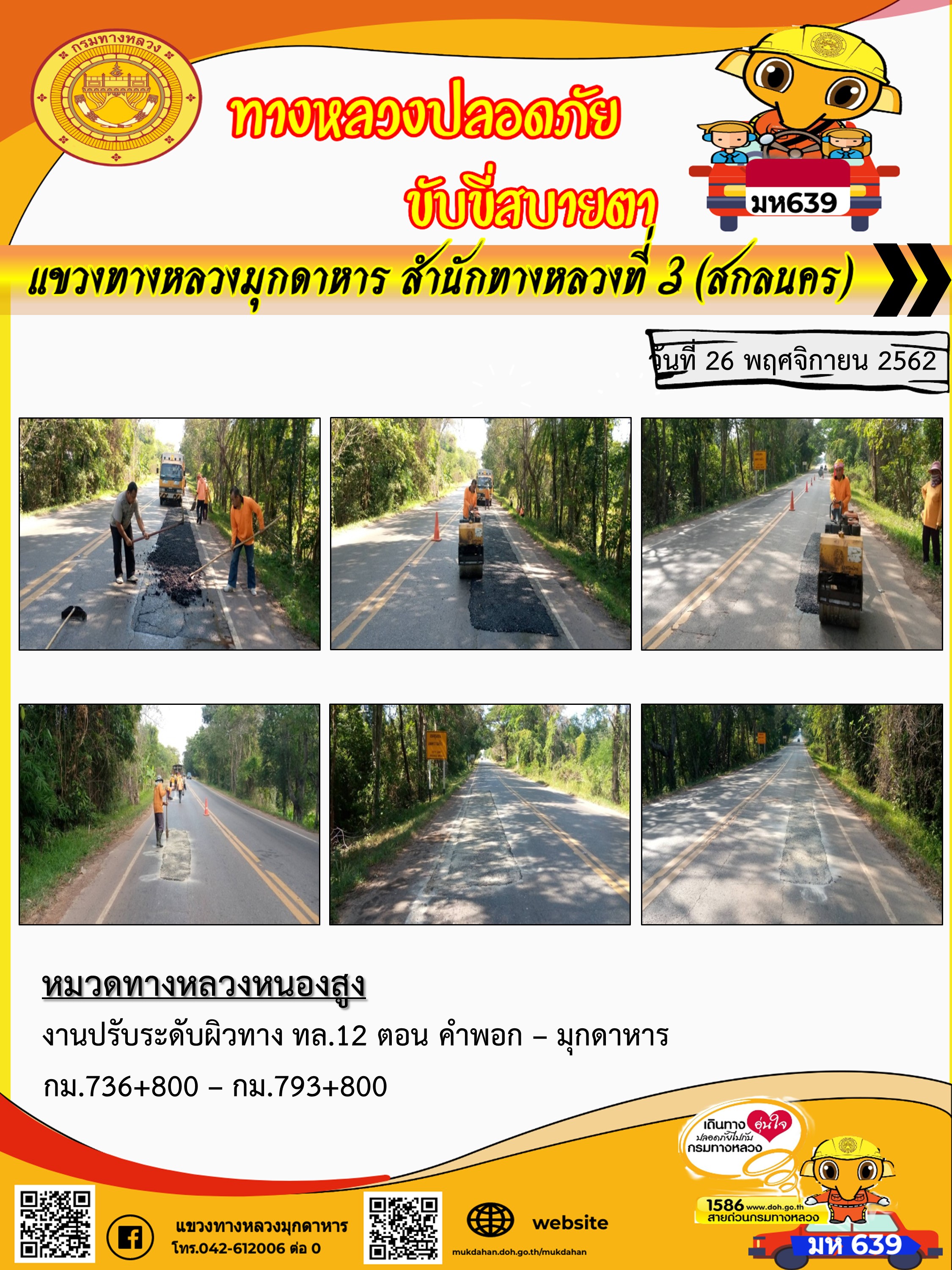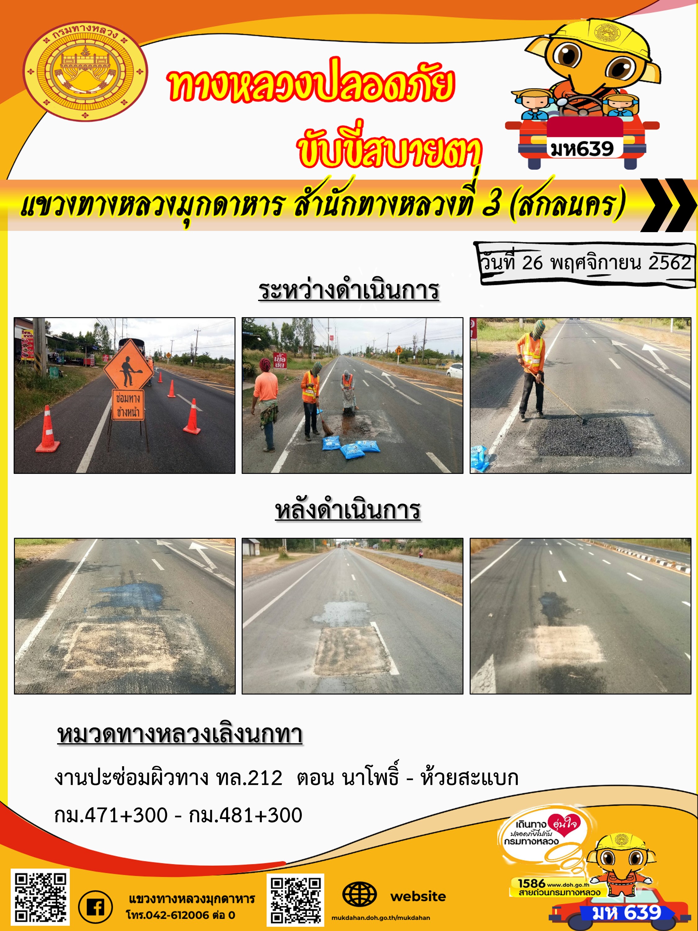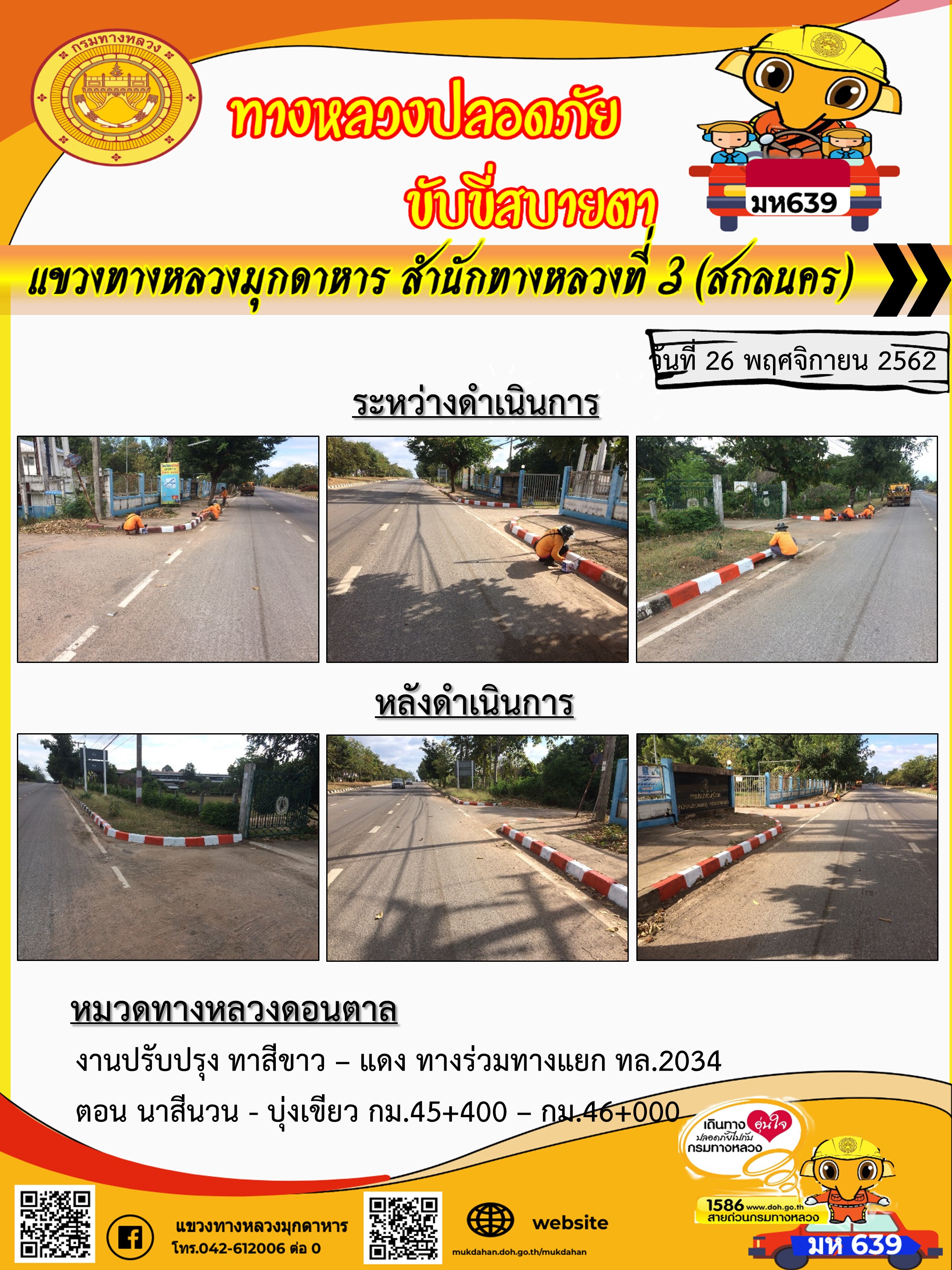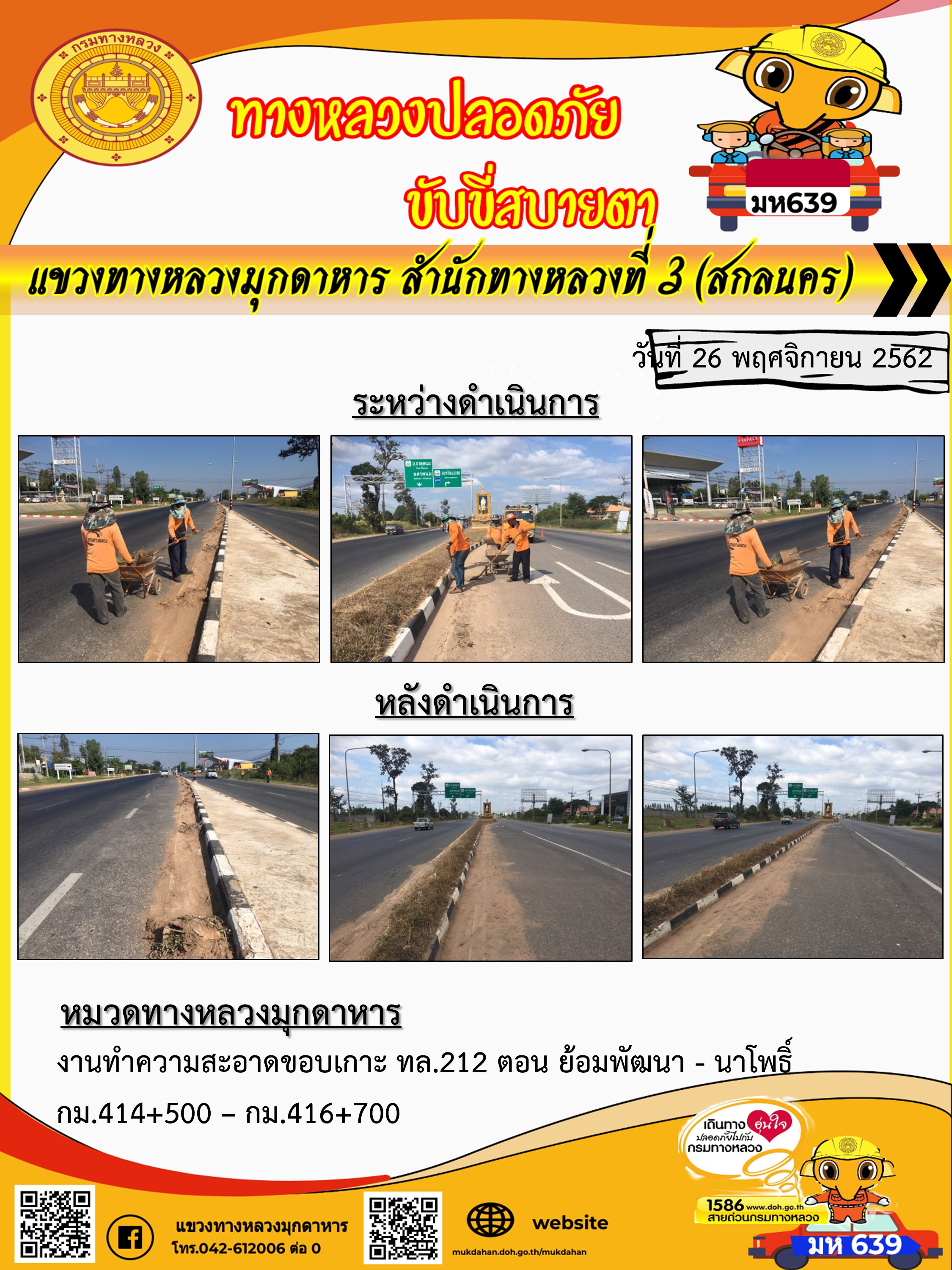 โครงการทางหลวงปลอดภัย ขับขี่สบายตา หน่วยงานในสังกัดแขวง 26 พ.ย. 62
