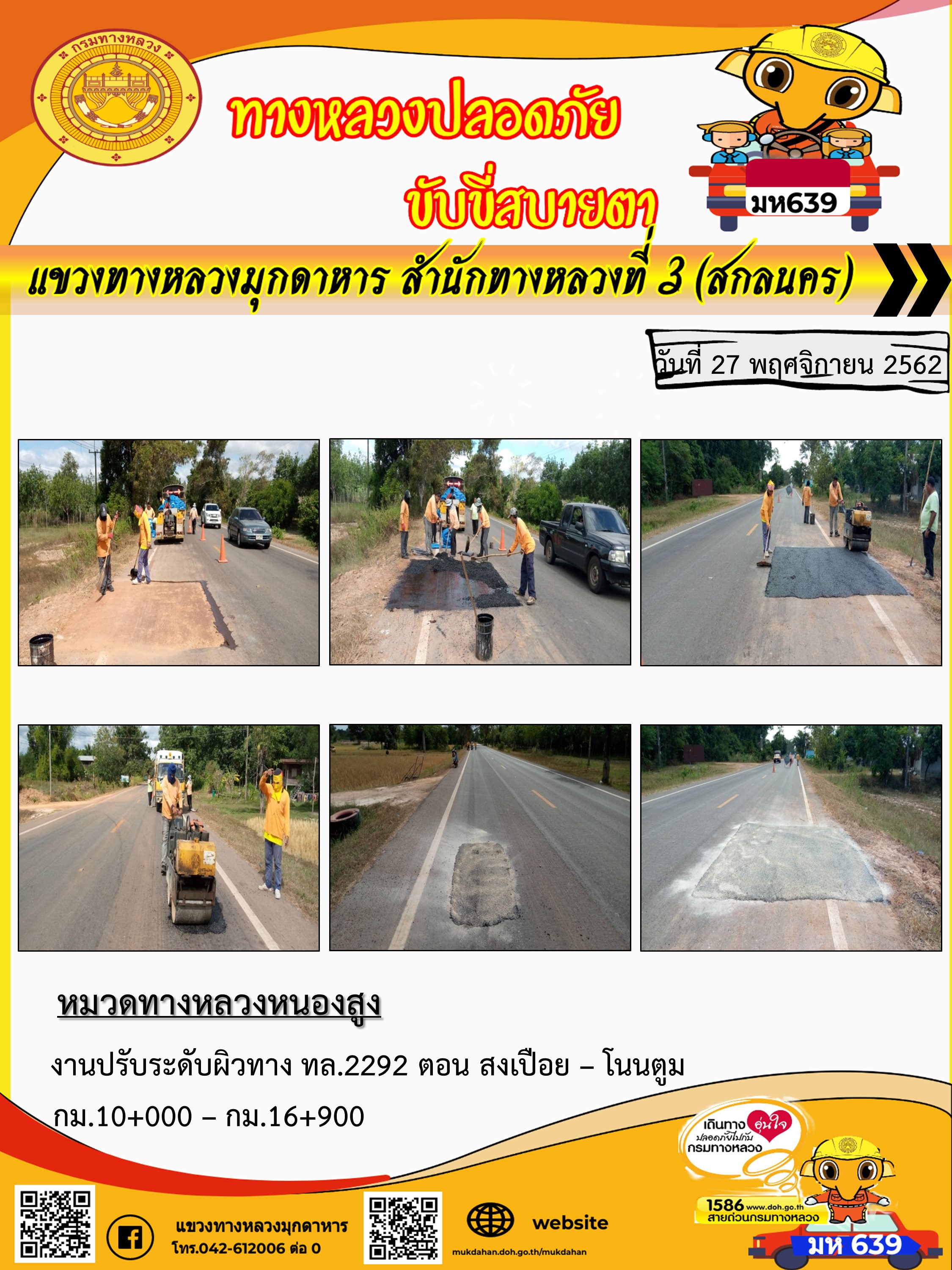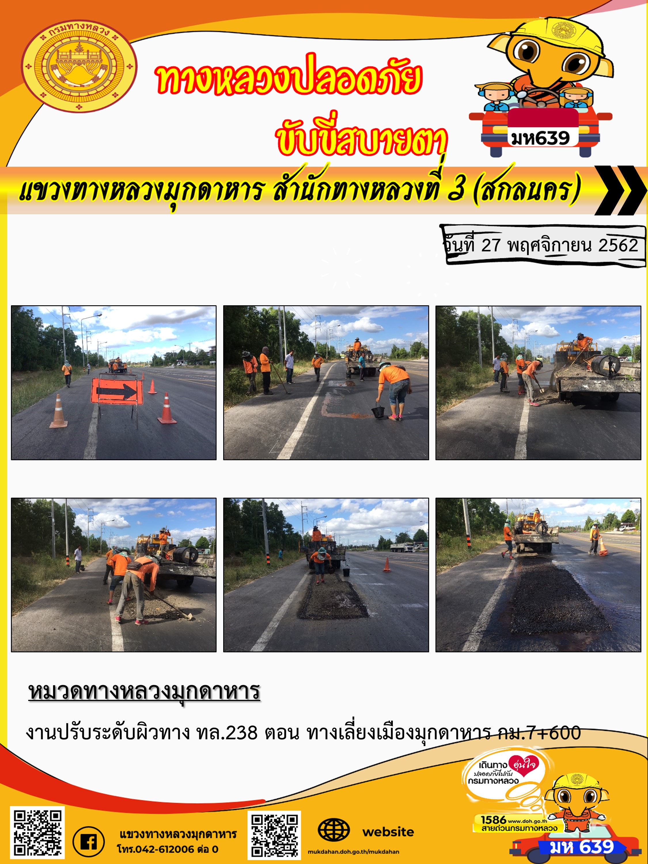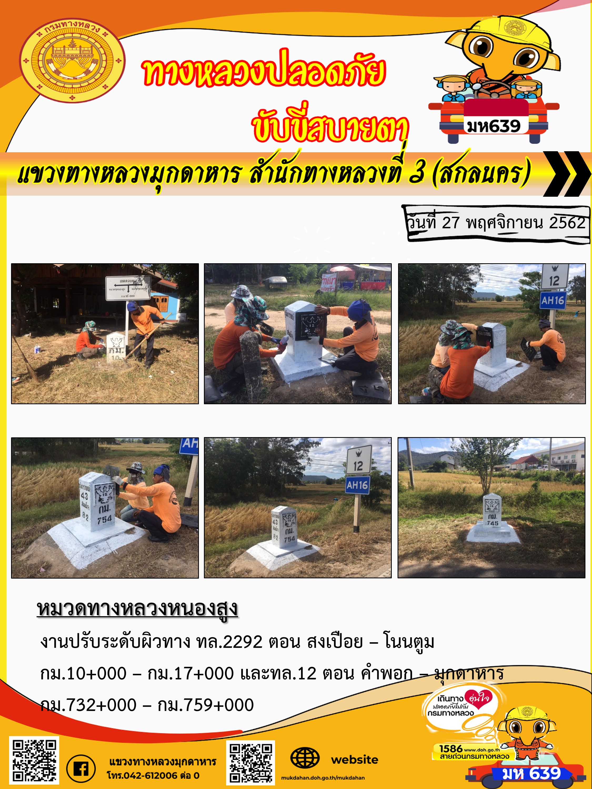 โครงการทางหลวงปลอดภัย ขับขี่สบายตา หน่วยงานในสังกัดแขวง 27 พ.ย. 62