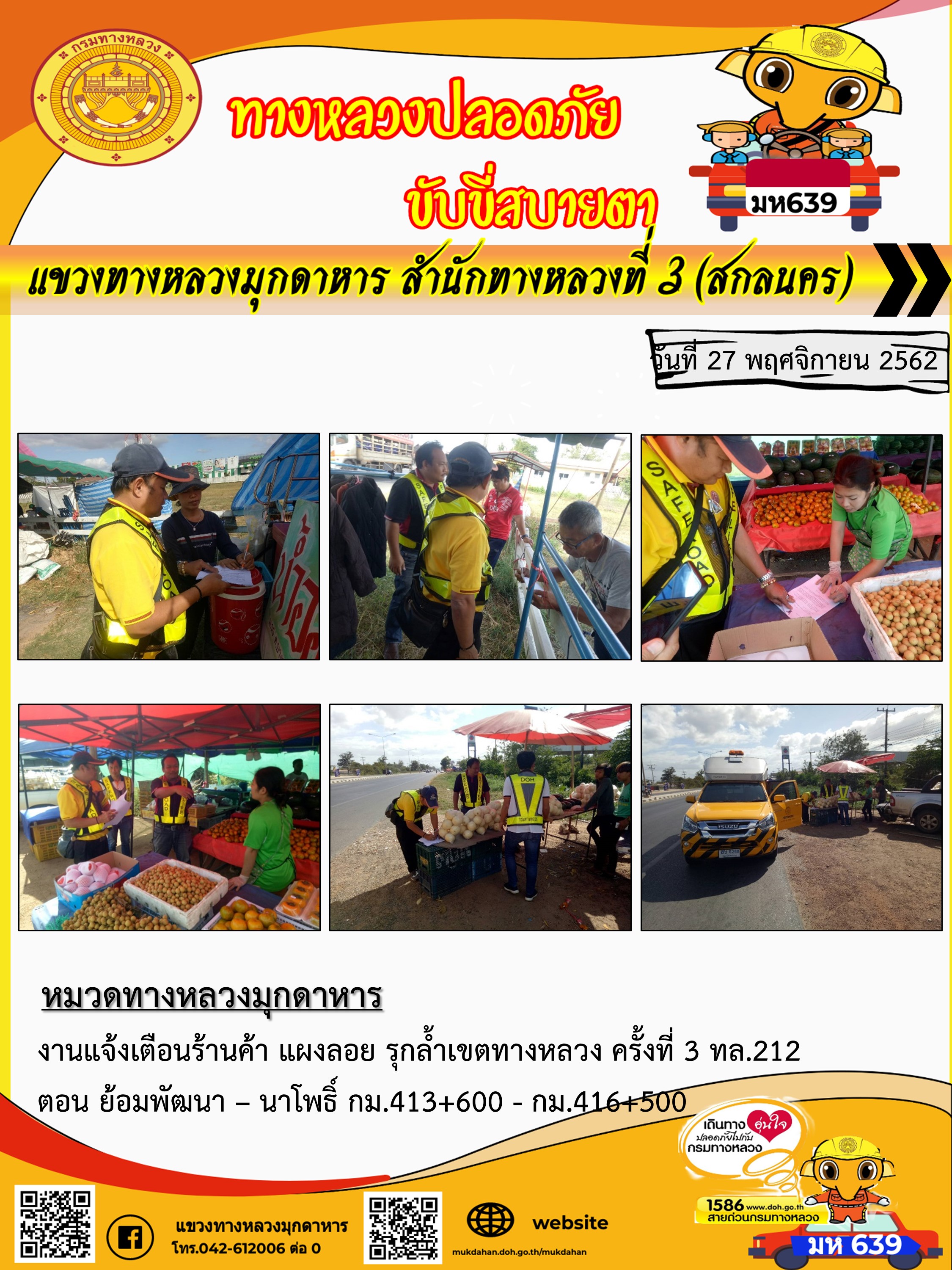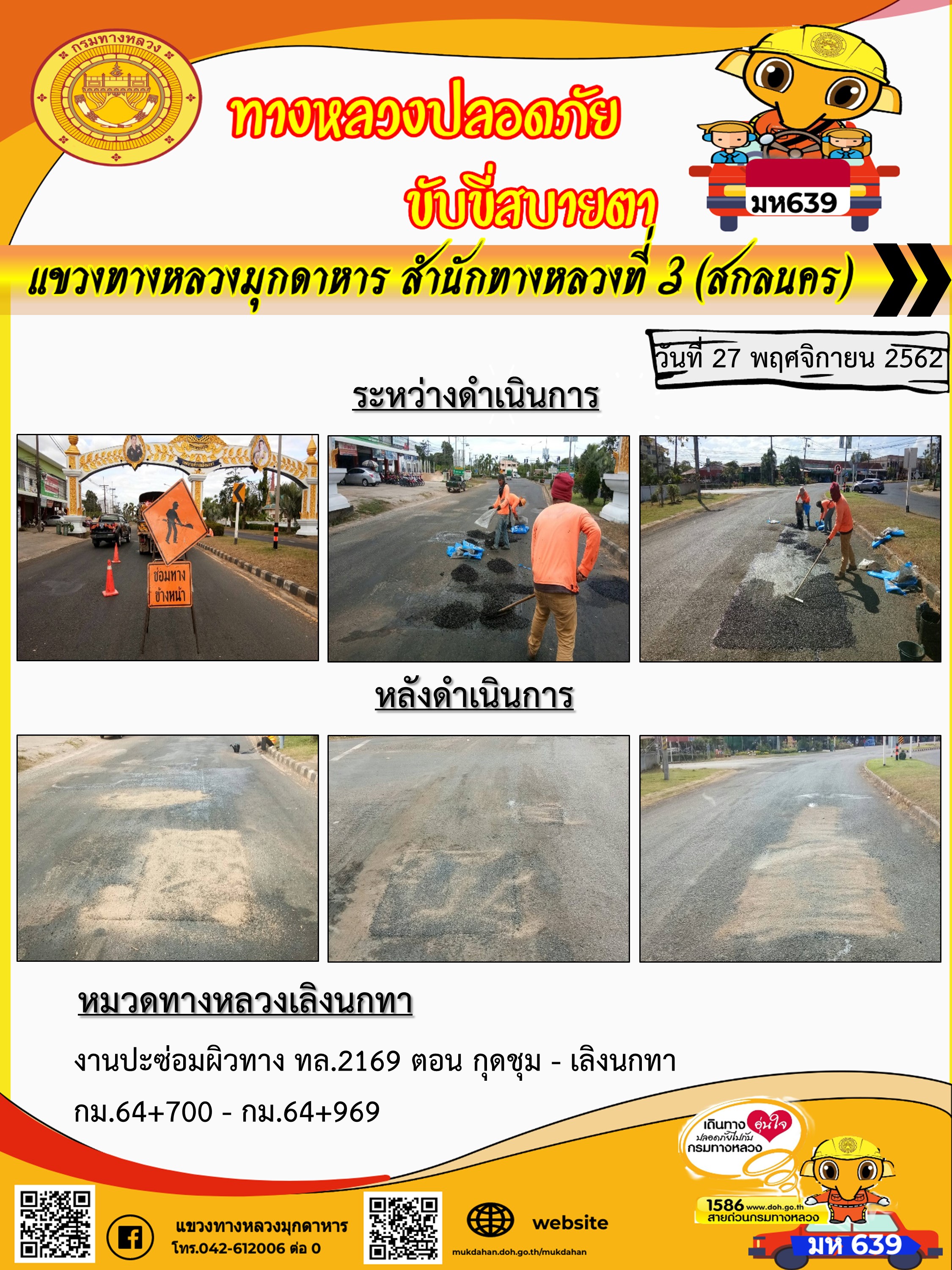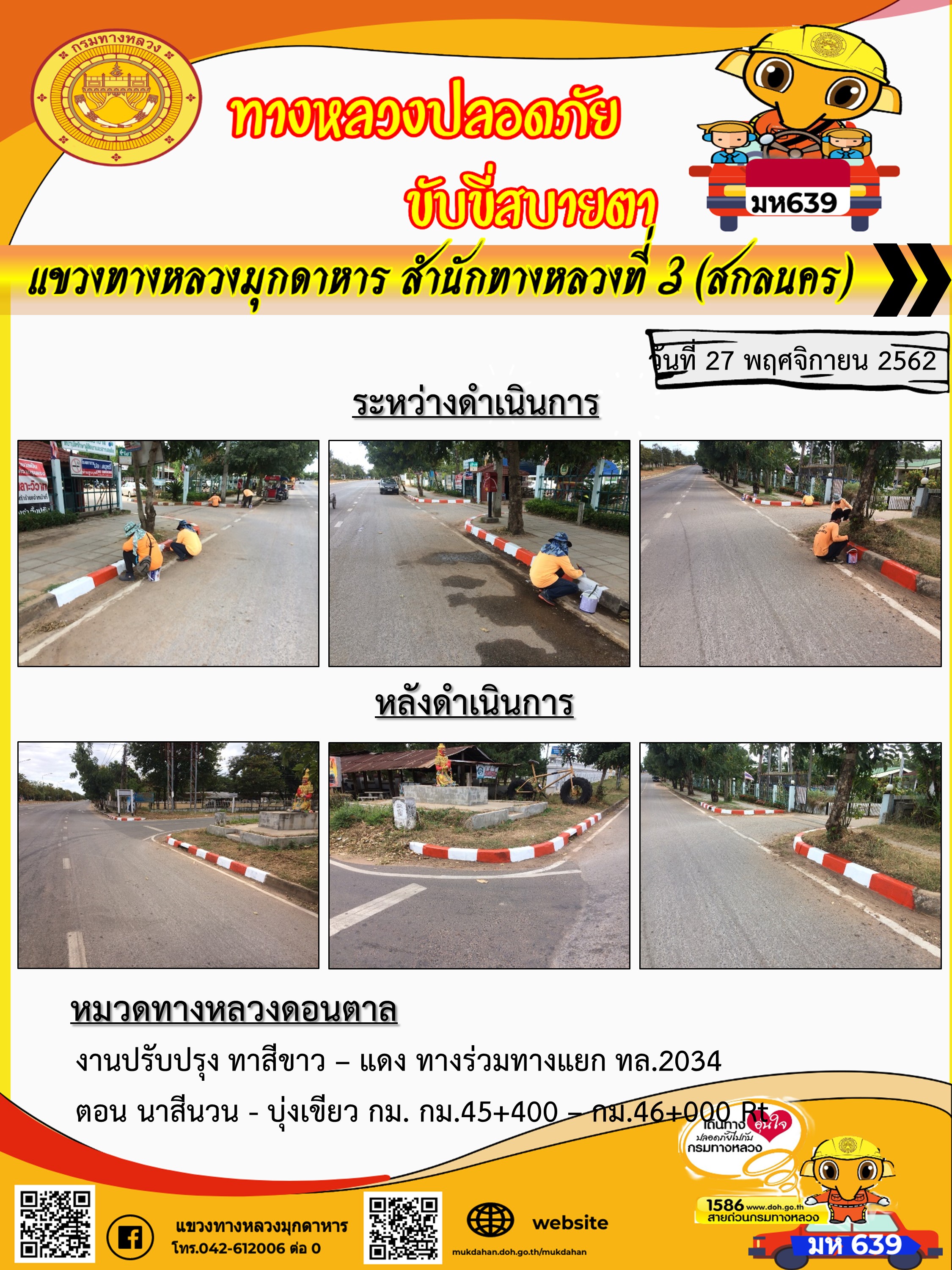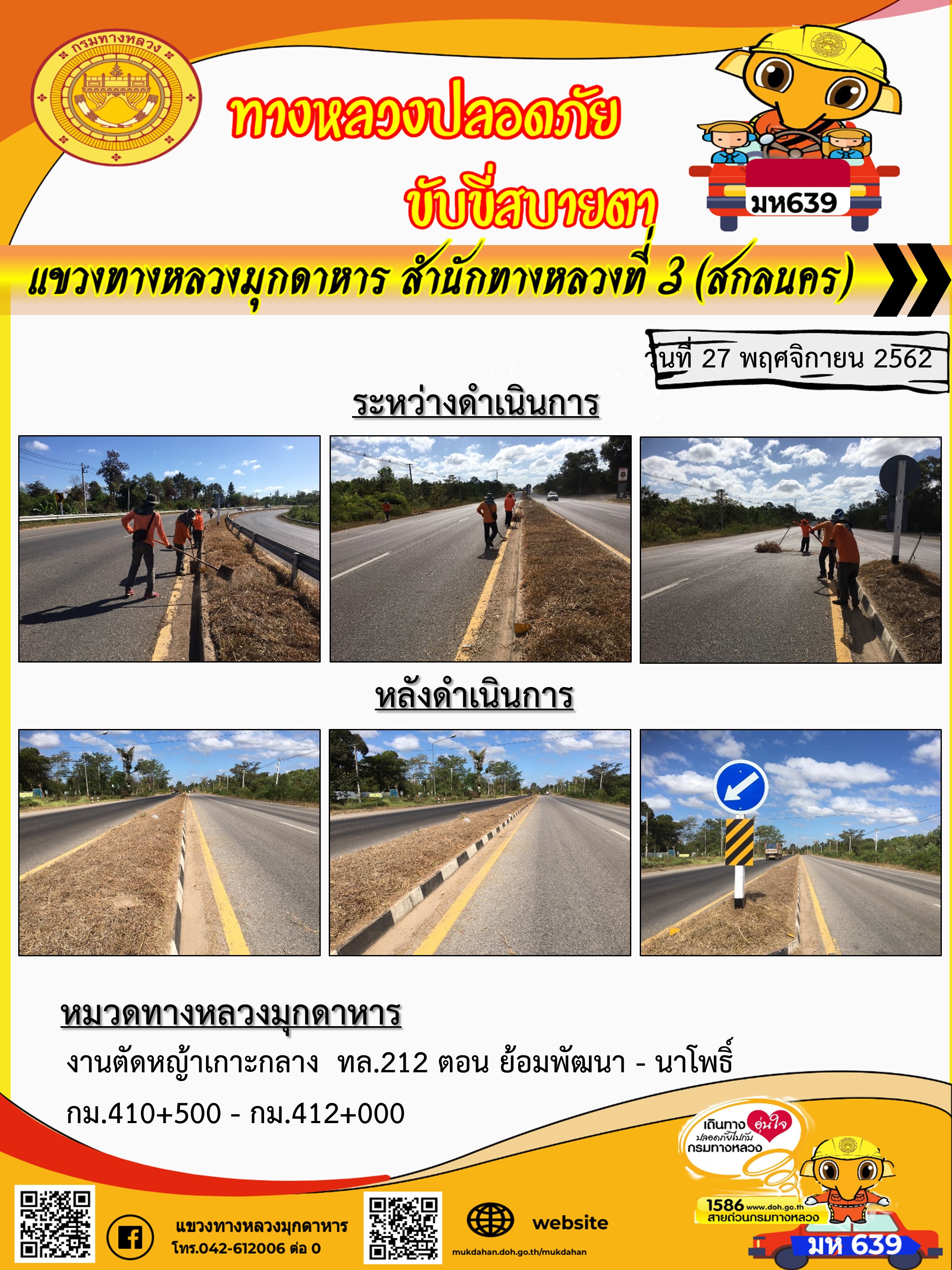 โครงการทางหลวงปลอดภัย ขับขี่สบายตา หน่วยงานในสังกัดแขวง 27 พ.ย. 62