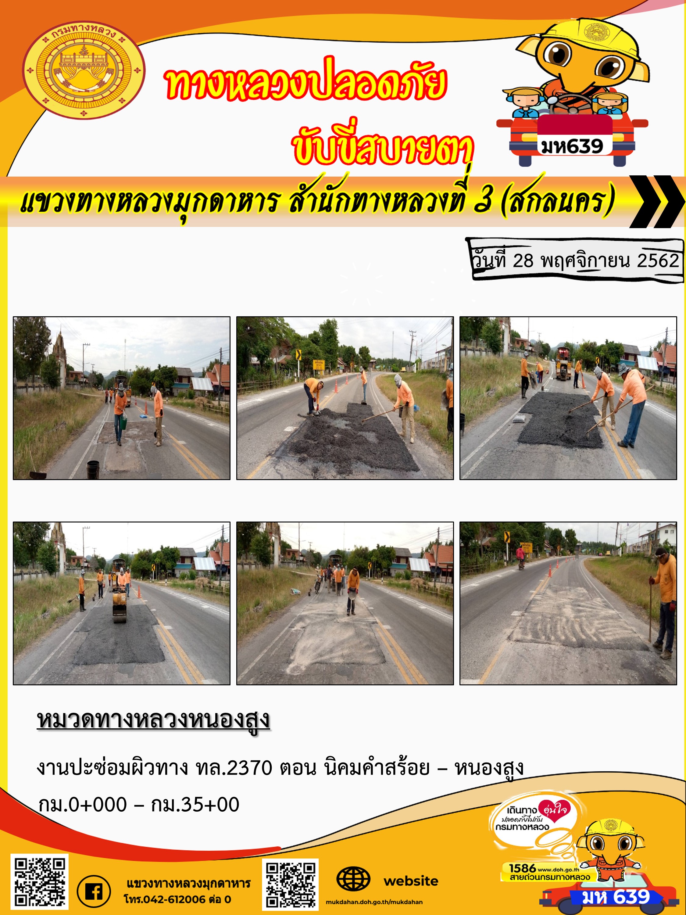 โครงการทางหลวงปลอดภัย ขับขี่สบายตา หน่วยงานในสังกัดแขวง 28 พ.ย. 62