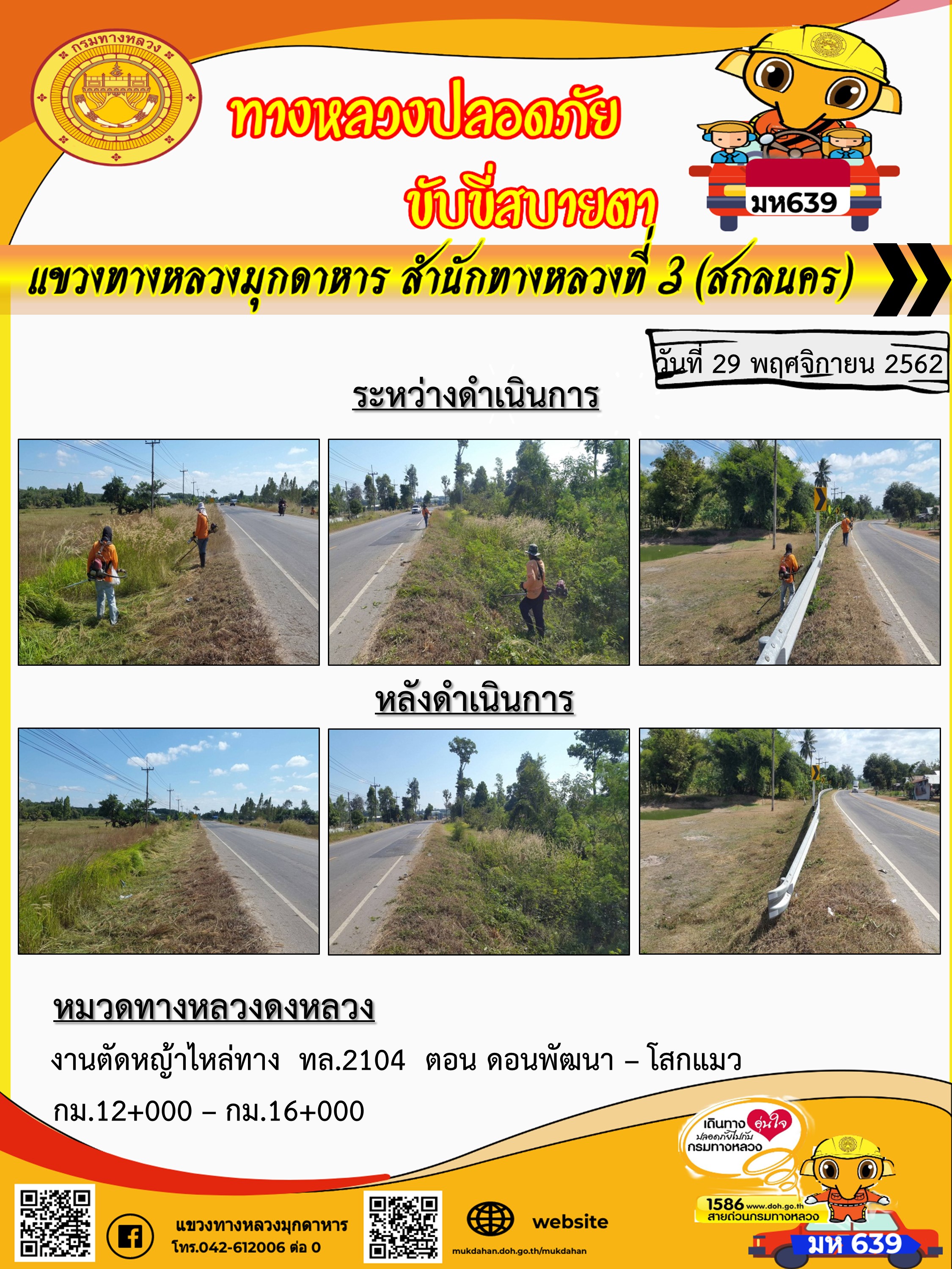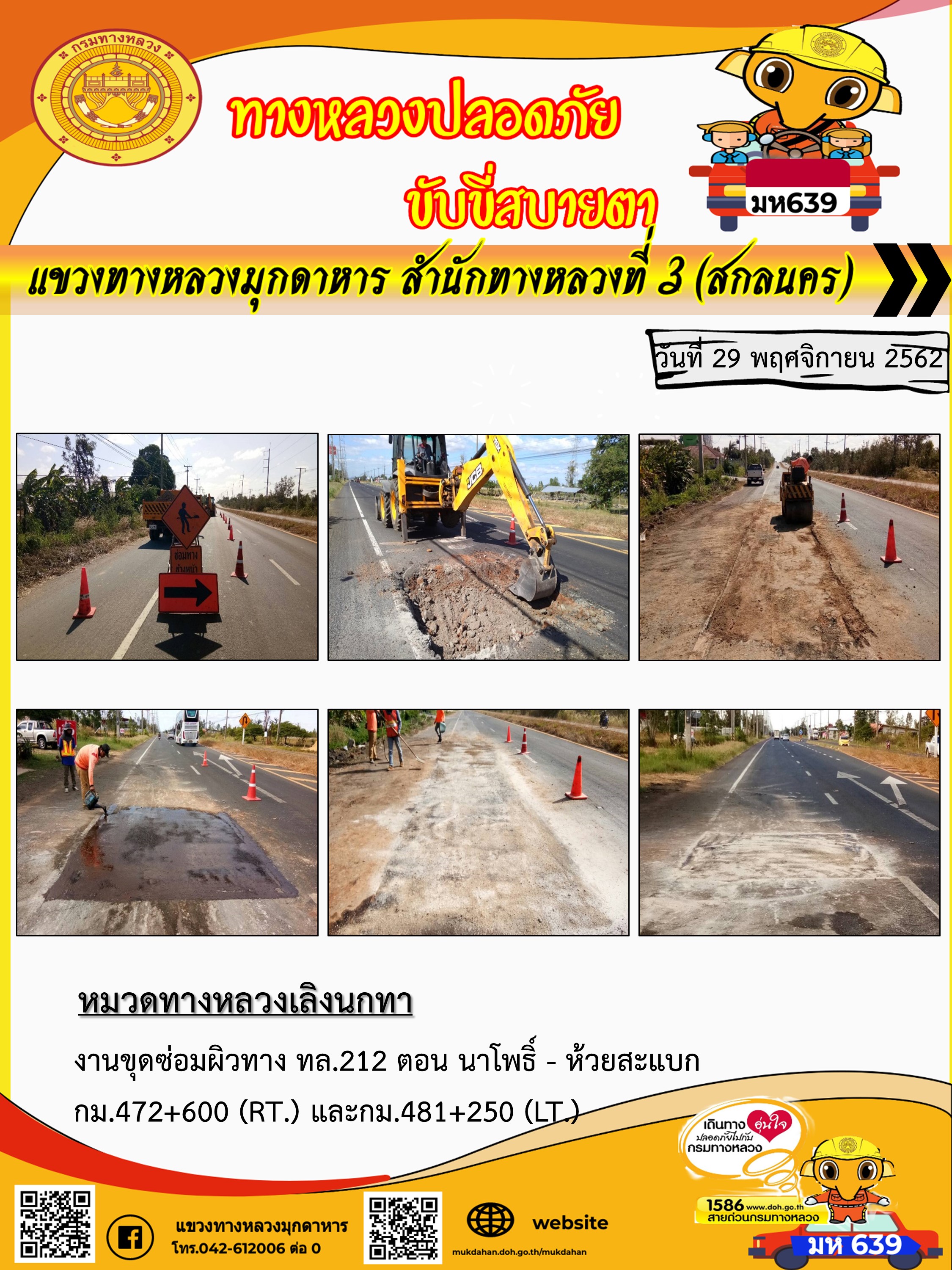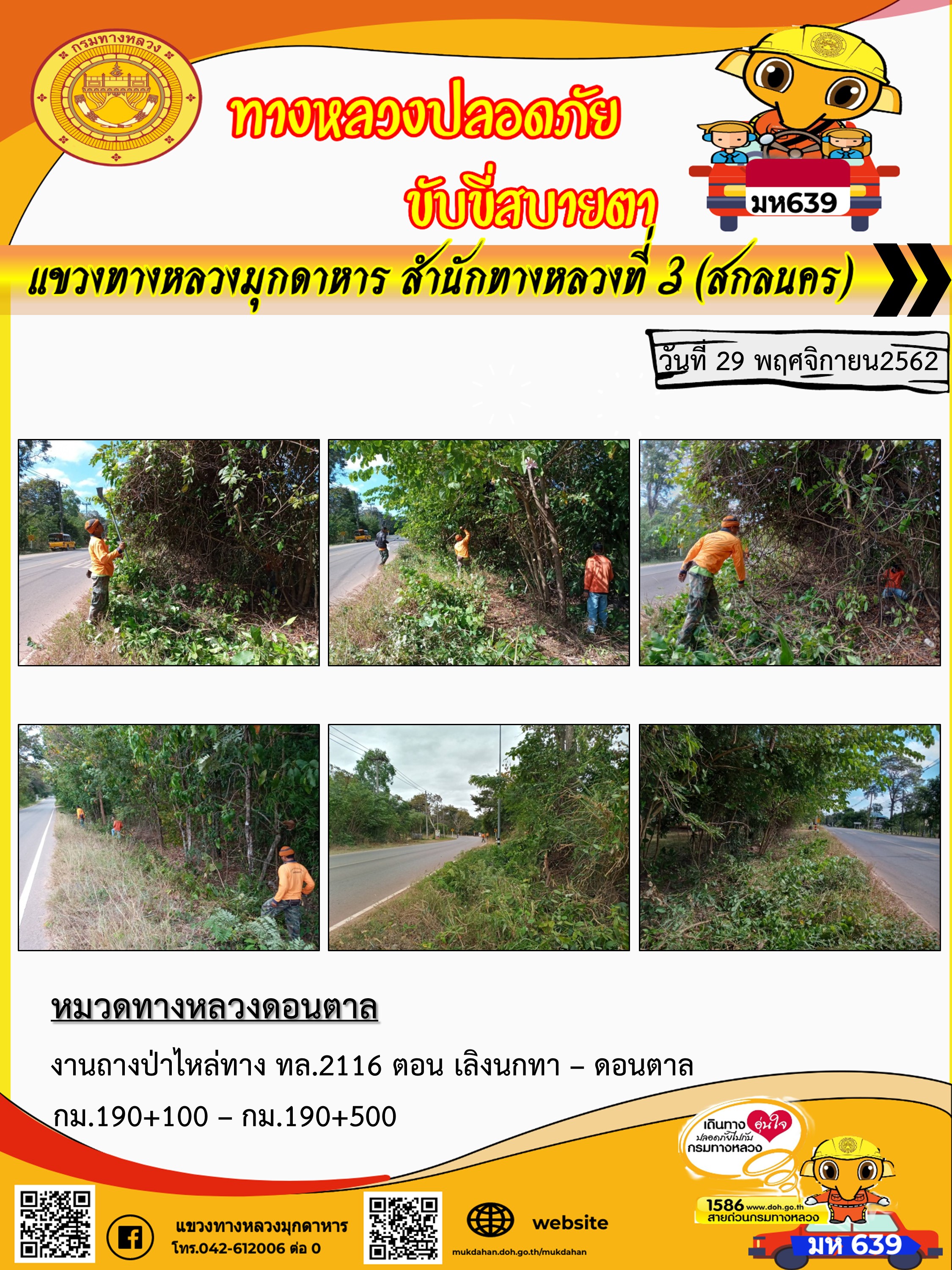 โครงการทางหลวงปลอดภัย ขับขี่สบายตา หน่วยงานในสังกัดแขวง 29 พ.ย. 62