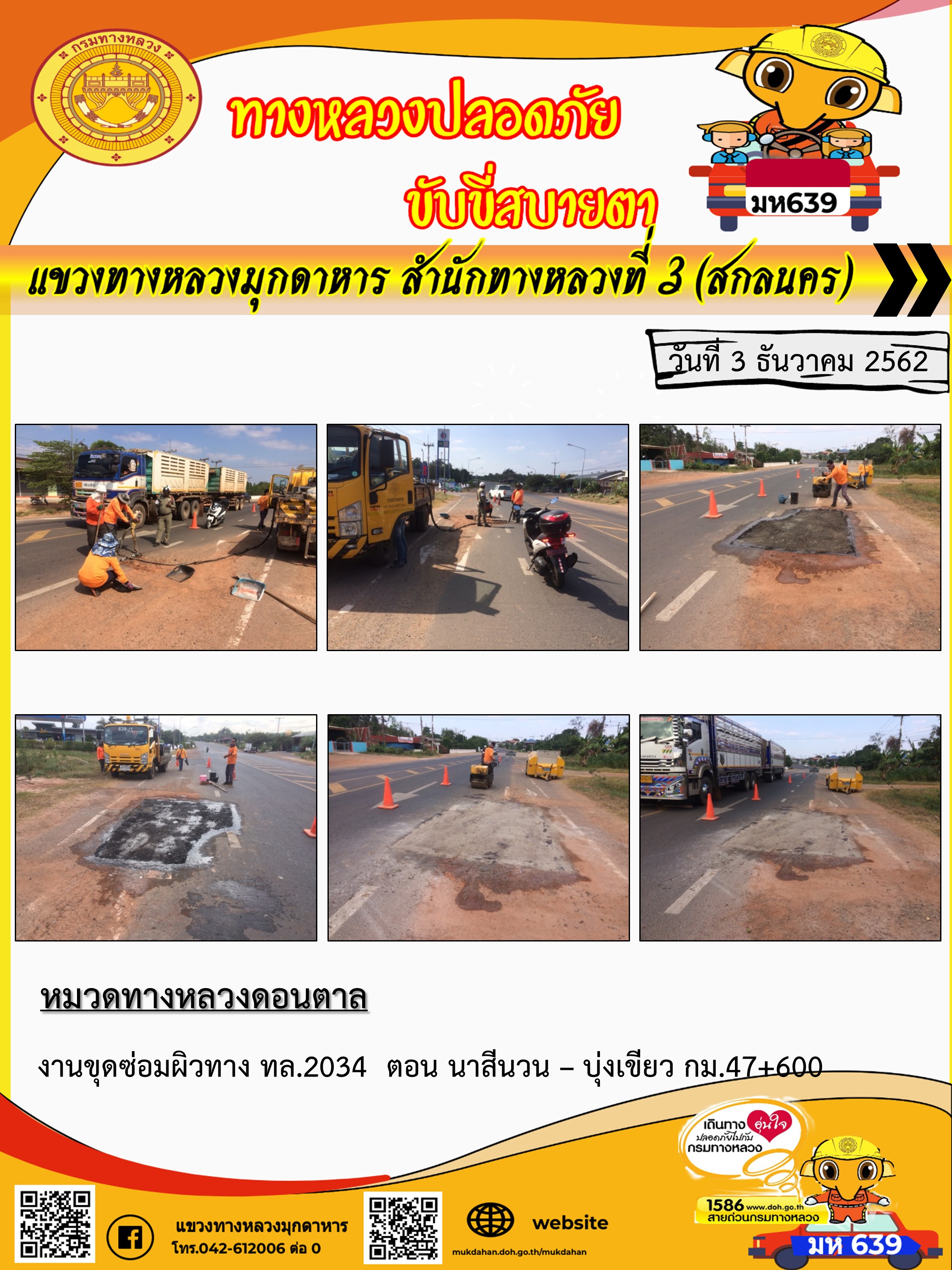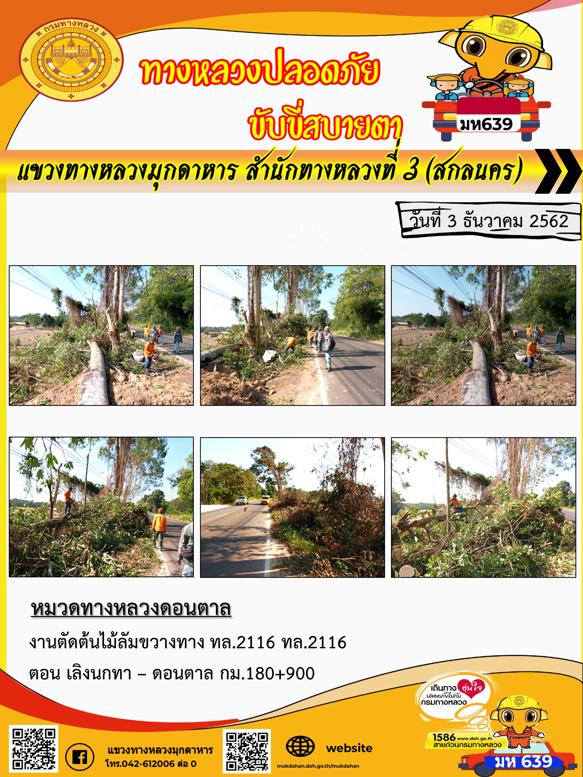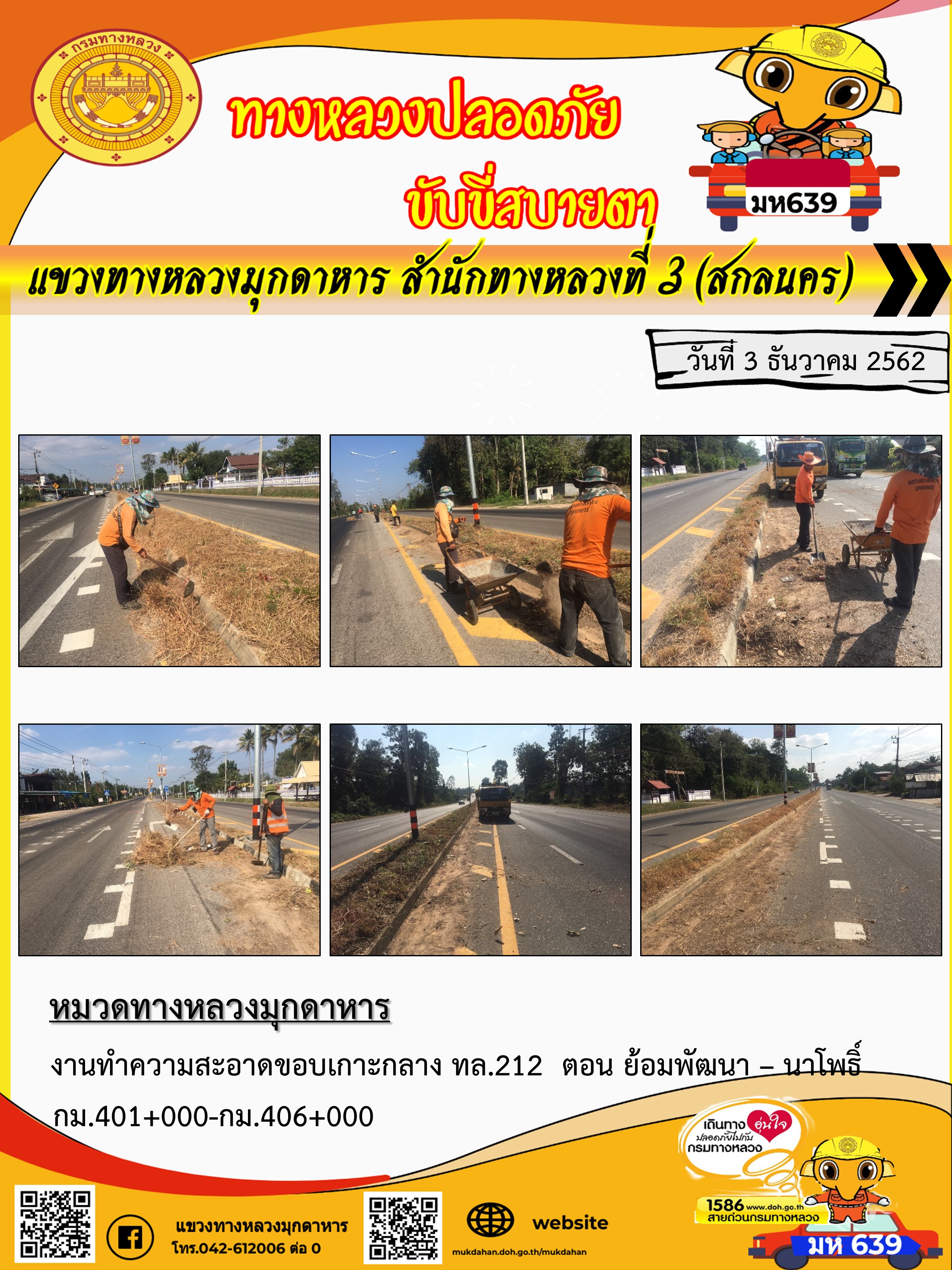 โครงการทางหลวงปลอดภัย ขับขี่สบายตา หน่วยงานในสังกัดแขวง 3 ธ.ค 62