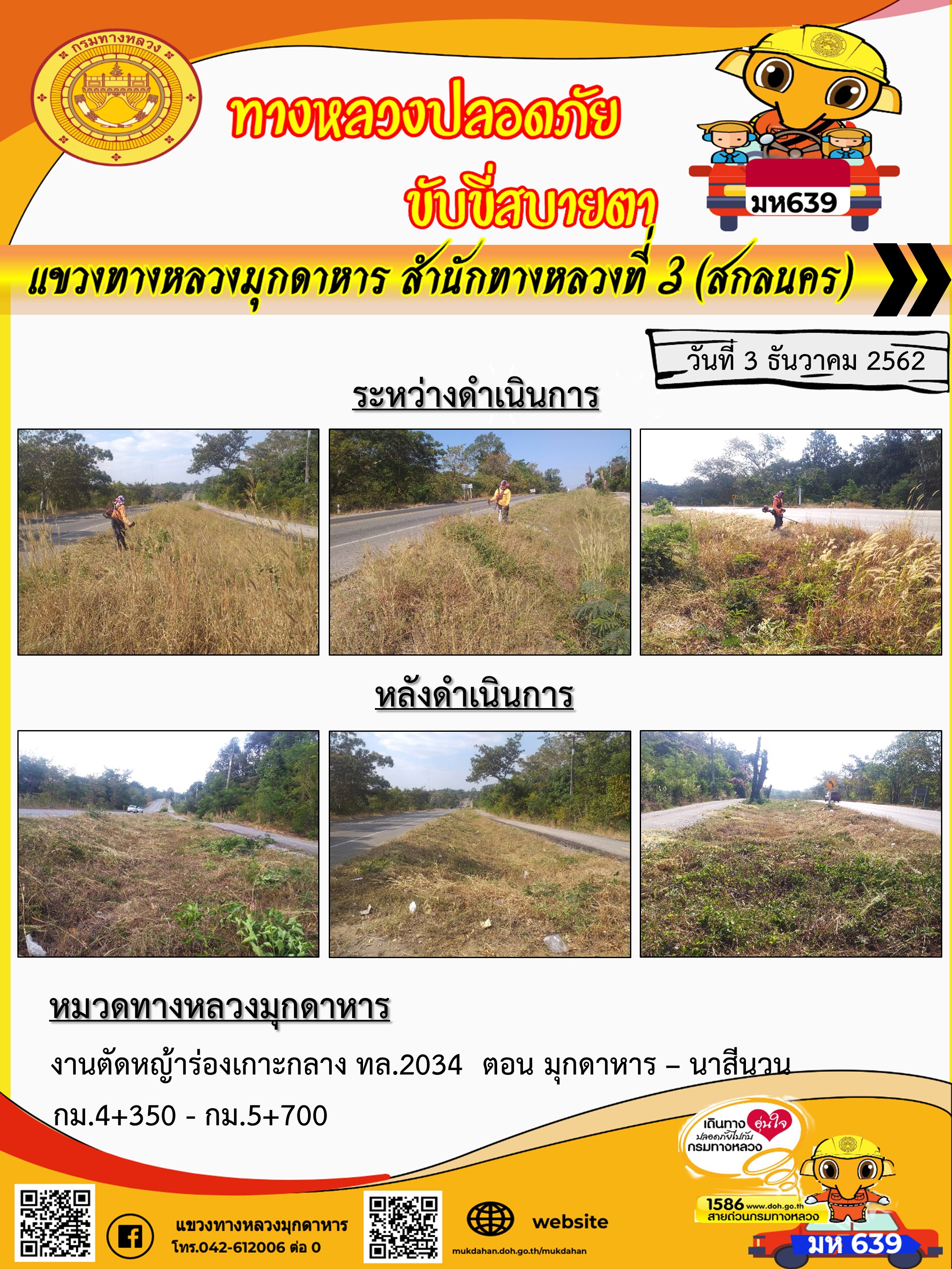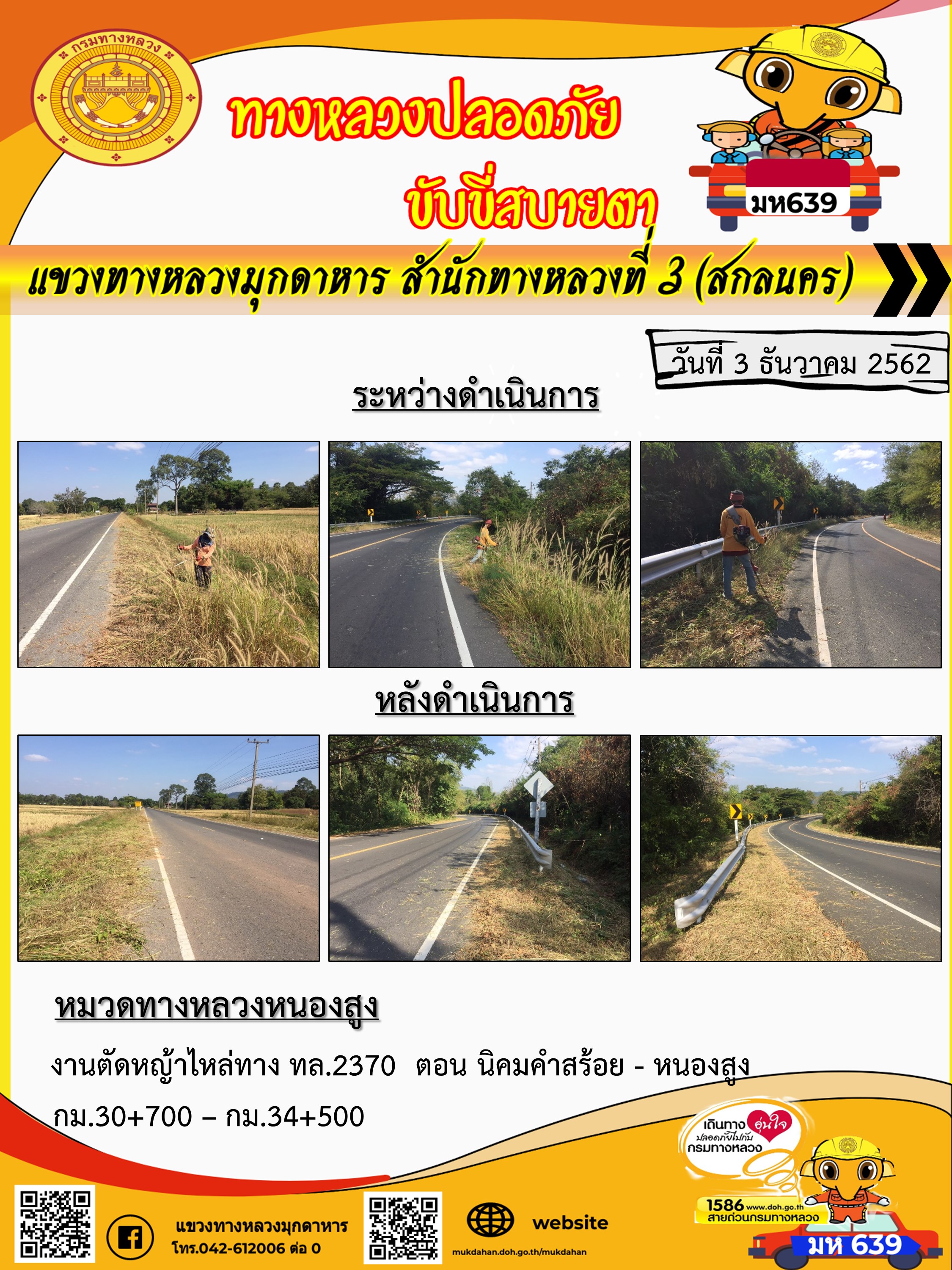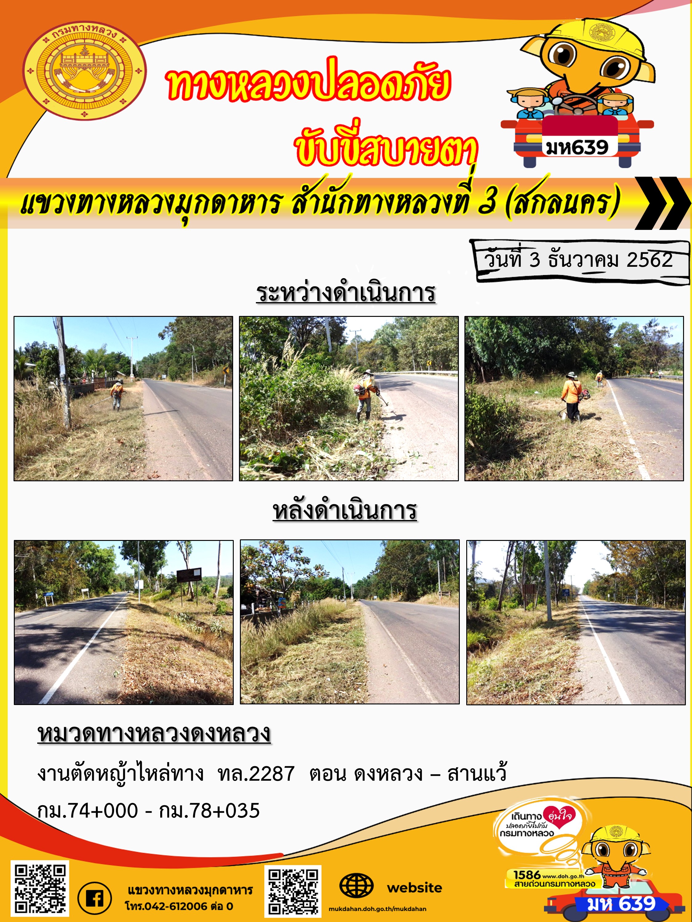 โครงการทางหลวงปลอดภัย ขับขี่สบายตา หน่วยงานในสังกัดแขวง 3 ธ.ค 62