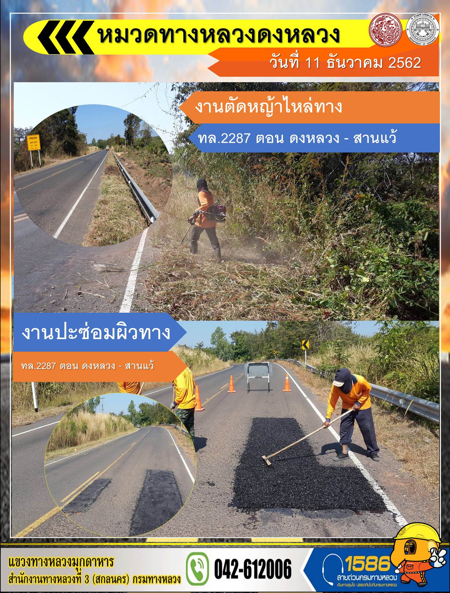โครงการทางหลวงปลอดภัย ขับขี่สบายตา หน่วยงานในสังกัดแขวง 11 ธ.ค. 62