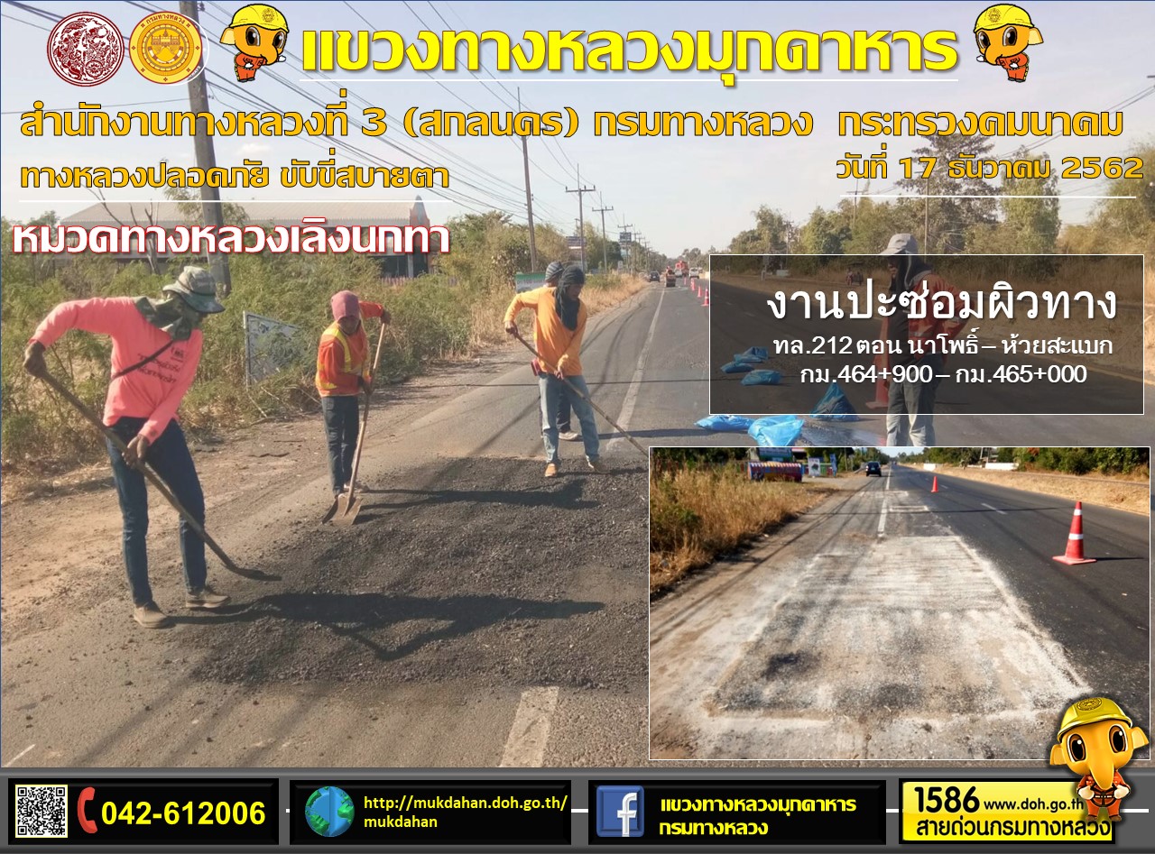 โครงการทางหลวงปลอดภัย ขับขี่สบายตา หน่วยงานในสังกัดแขวง 17 ธ.ค. 62