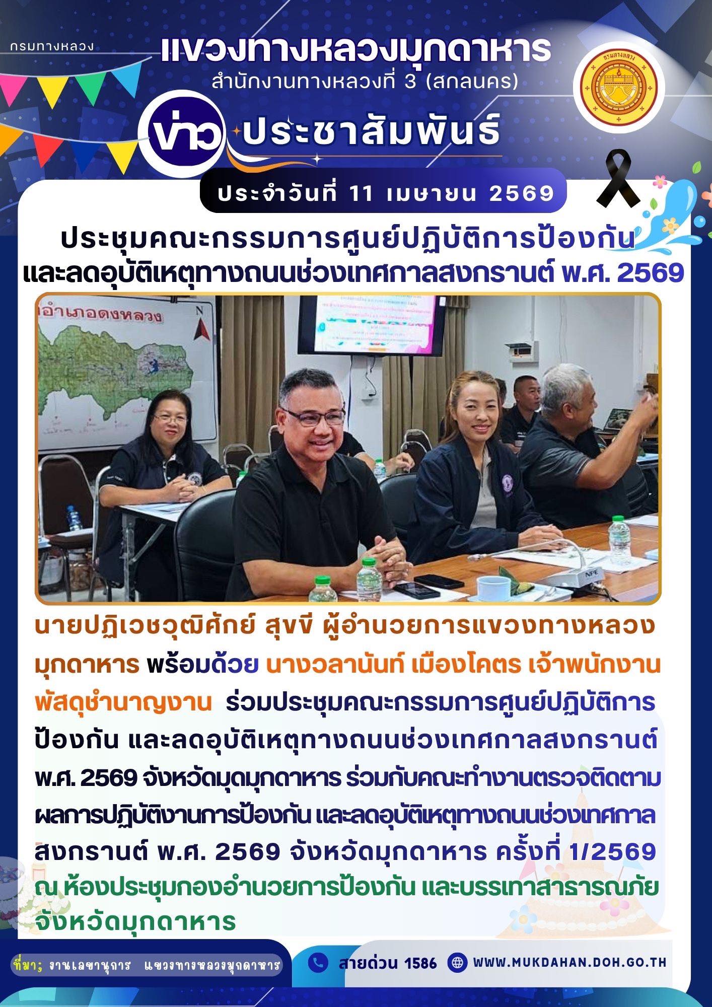 ข้อมูลข่าว : ร่วมประชุมคณะกรรมการศูนย์ปฏิบัติการป้องกัน และลดอุบัติเหตุทางถนนช่วงเทศกาลสงกรานต์ พ.ศ. 2569 จังหวัดมุกมุกดาหาร