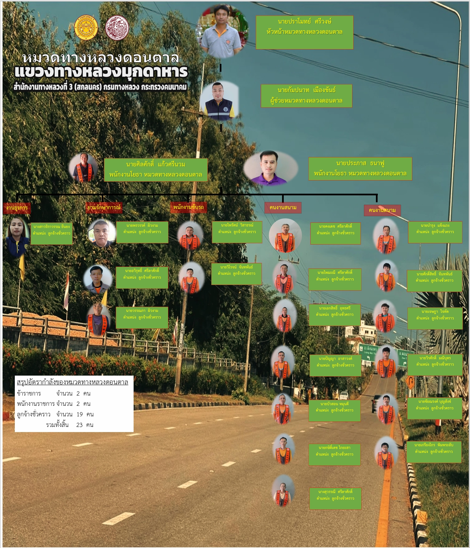 นายปรายโมทย์ ศรีวงษ์ นายช่างโยธาชำนาญงาน (หัวหน้าหมวดทางหลวงดอนตาล)