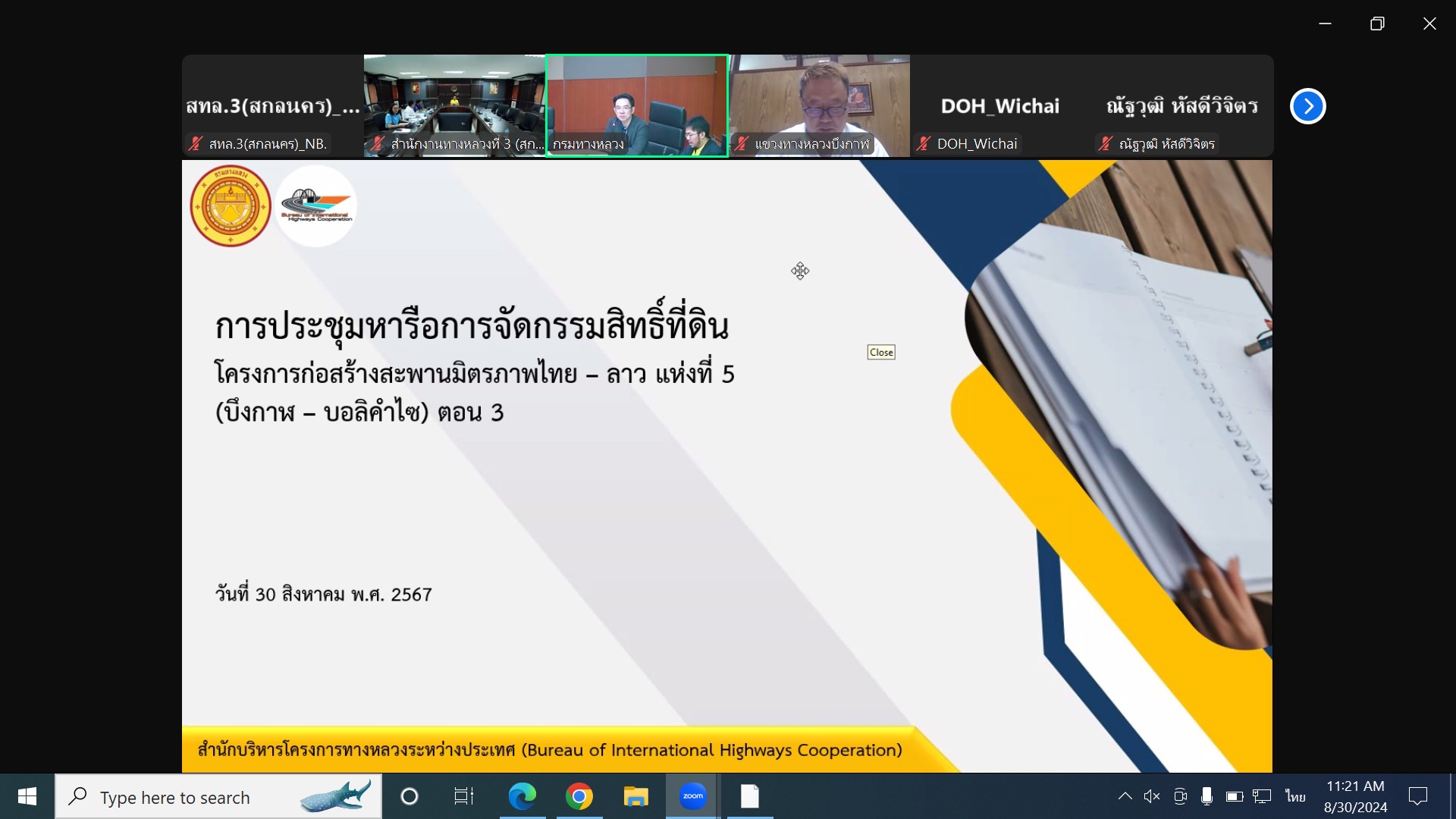 ประชุมหารือการจัดกรรมสิทธิ์ที่ดิน โครงการก่อสร้างสะพานมิตรภาพไทย - ลาว แห่งที่ 5 (บึงกาฬ - บอลิคำไซ) ตอน 3 ครั้งที่ 2/2567